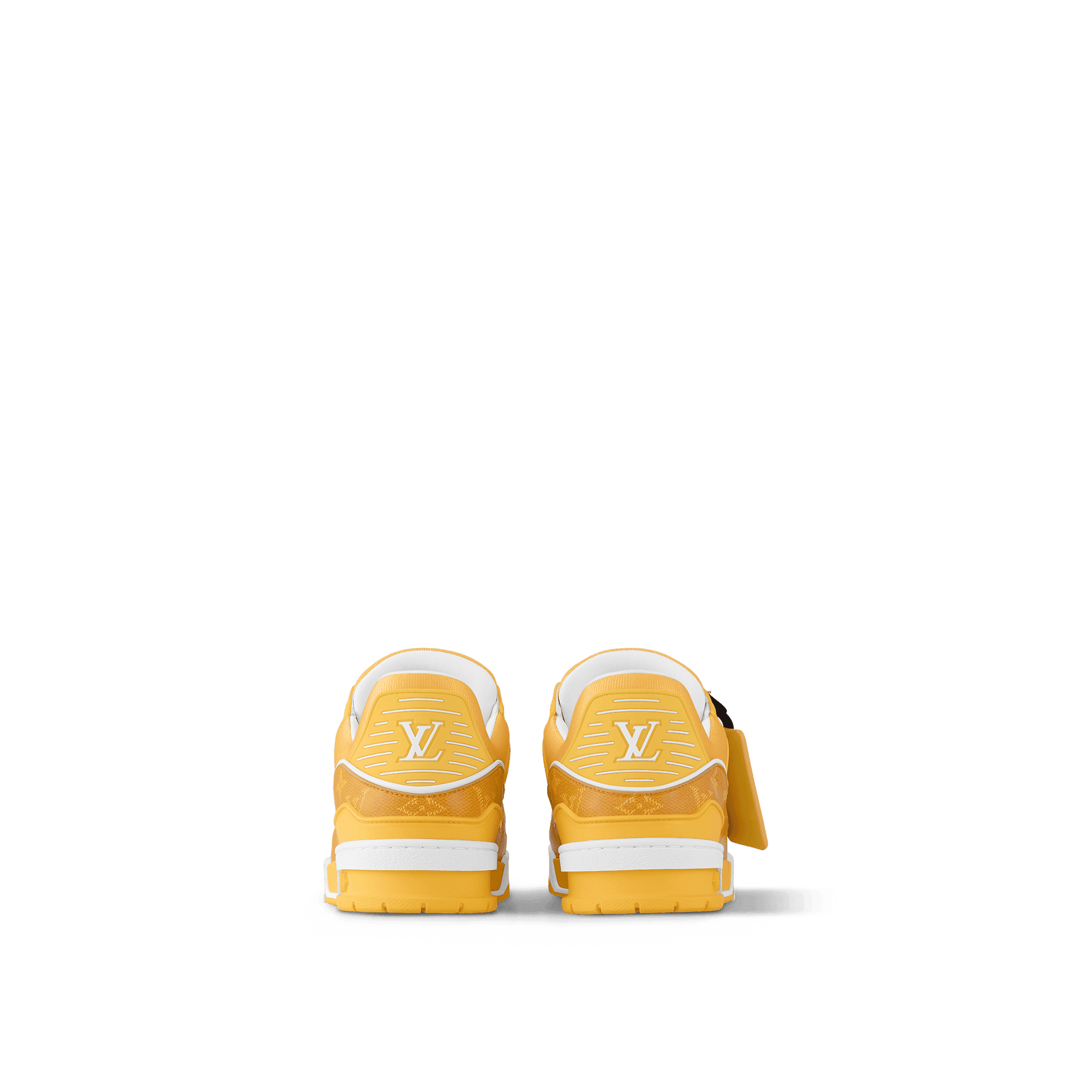 This edition of the LV Trainer Sneaker belongs to the 57th Street NYC Exclusive capsule. It is crafted from Monogram grained calf leather and features a yellow New York tag with the LV 1854 signature, referring to the date the House was founded. Inspired by vintage basketball sneakers, this iconic design is complemented by rubber details, including the LV Initials and Monogram Flowers.