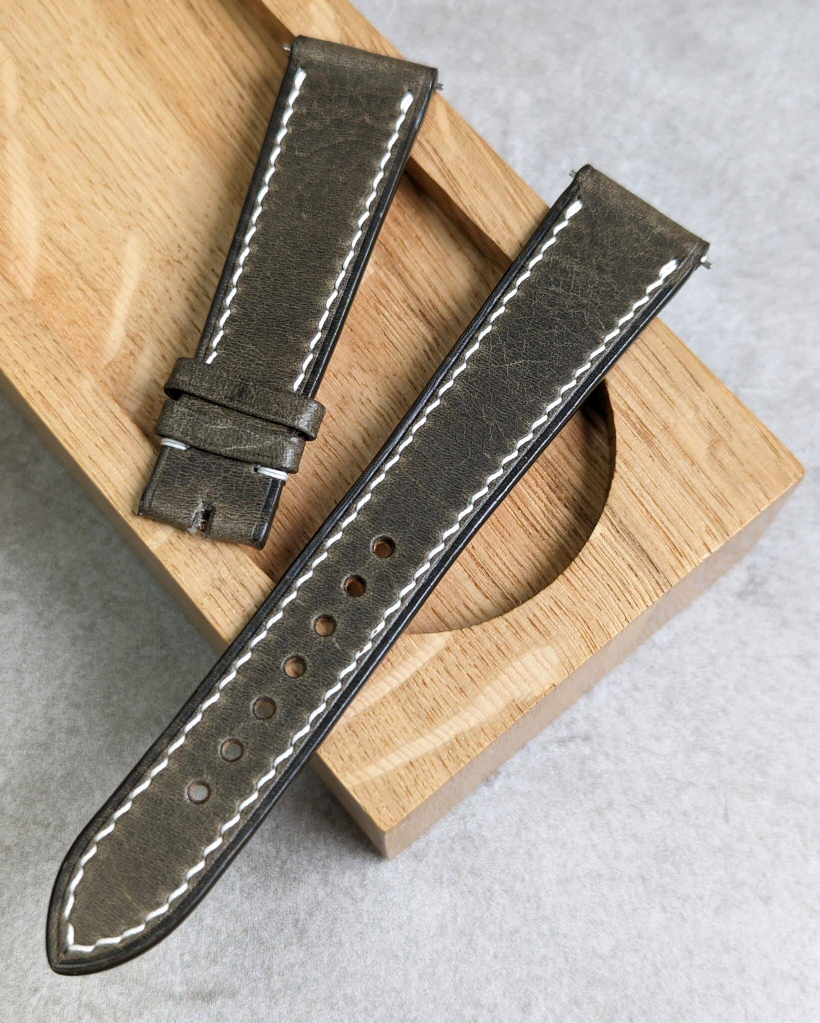 Badalassi Wax Strap - Grey Flat W/Cream stitching