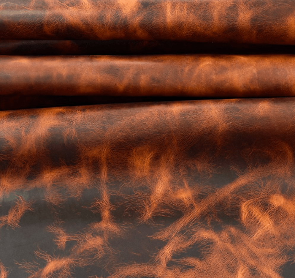 This leather is pure vegetable tanned leather produced from the shoulders which has been tanned in a wooden drum using oils and animal fats, then dyed. This tanning process is centuries old giving a distressed and rugged look bringing out the natural grain. Pull up leather with a waxy semi firm feel.