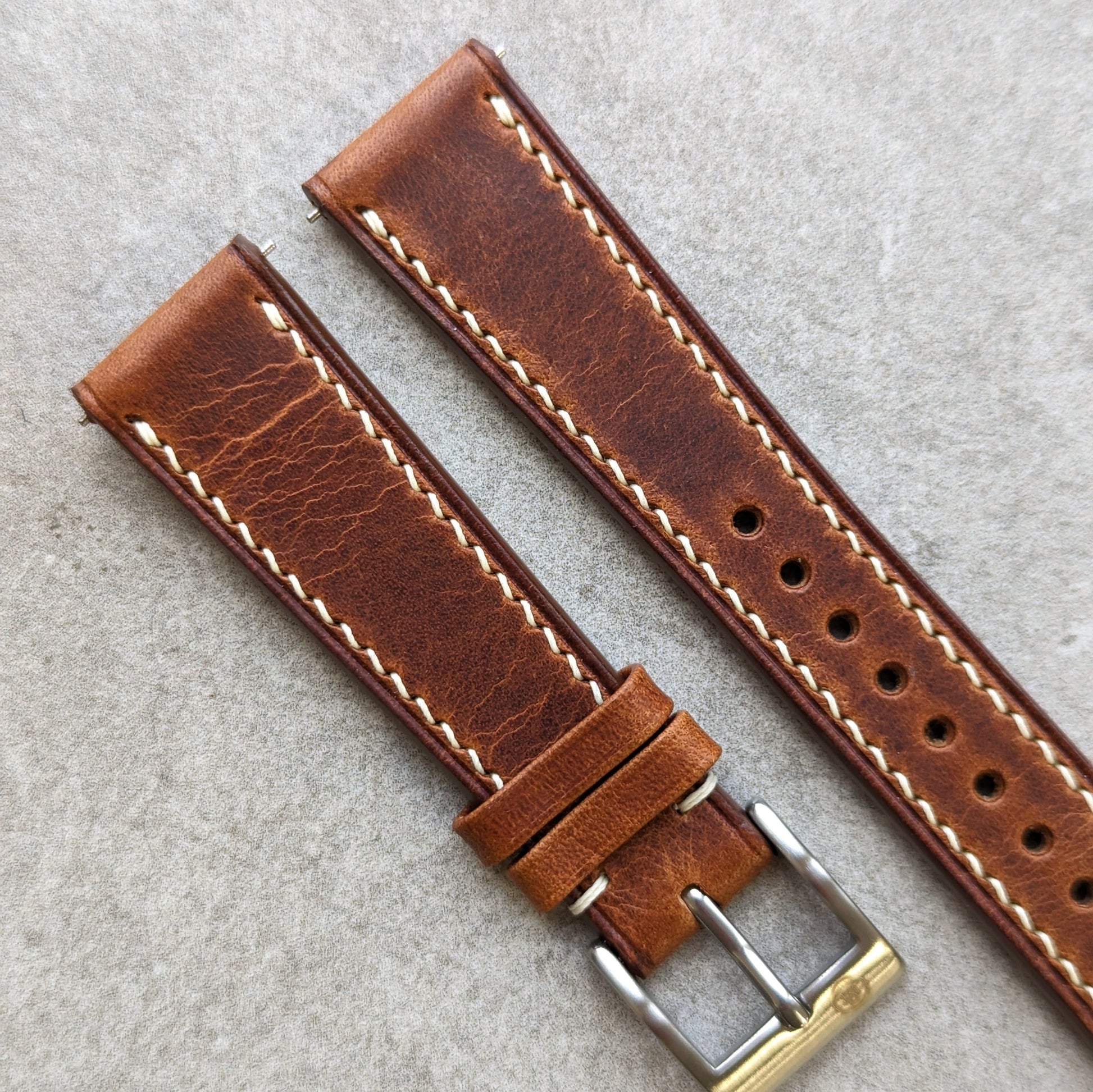 Badalassi Wax Watch Strap W/Cream stitching - Tan Brown - RTW