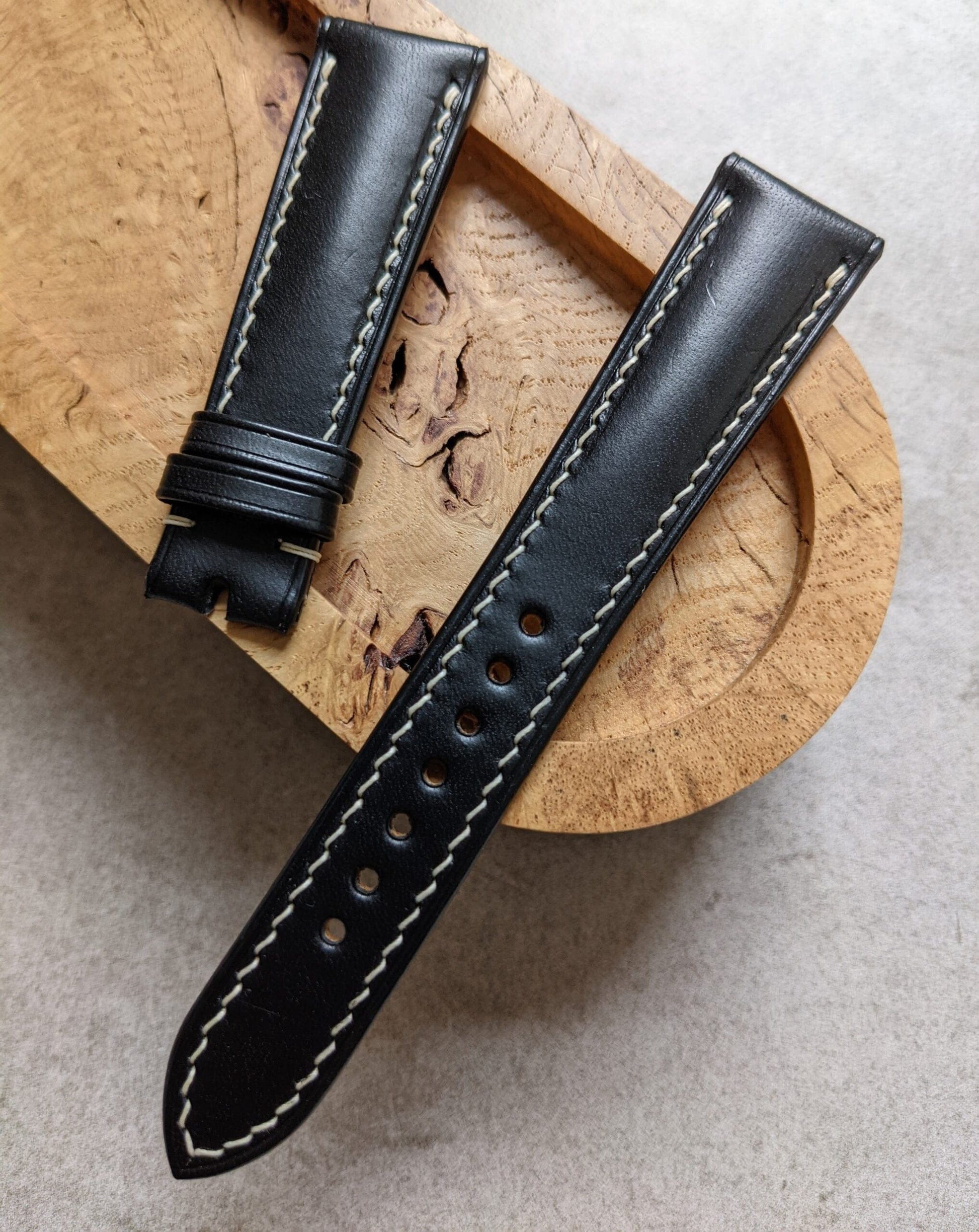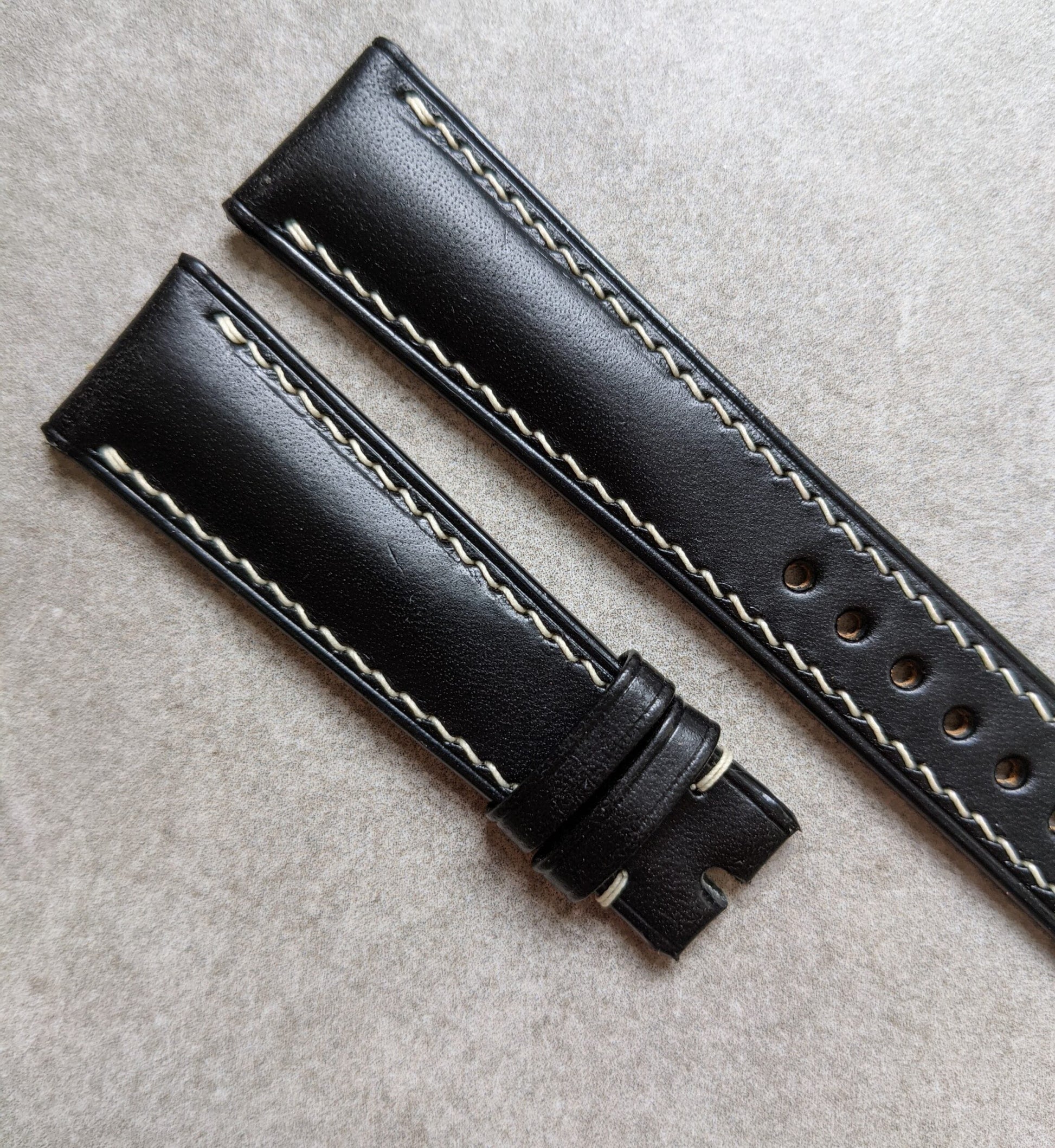 Buttero Classic Padded Calfskin Strap - Black W/Cream stitching