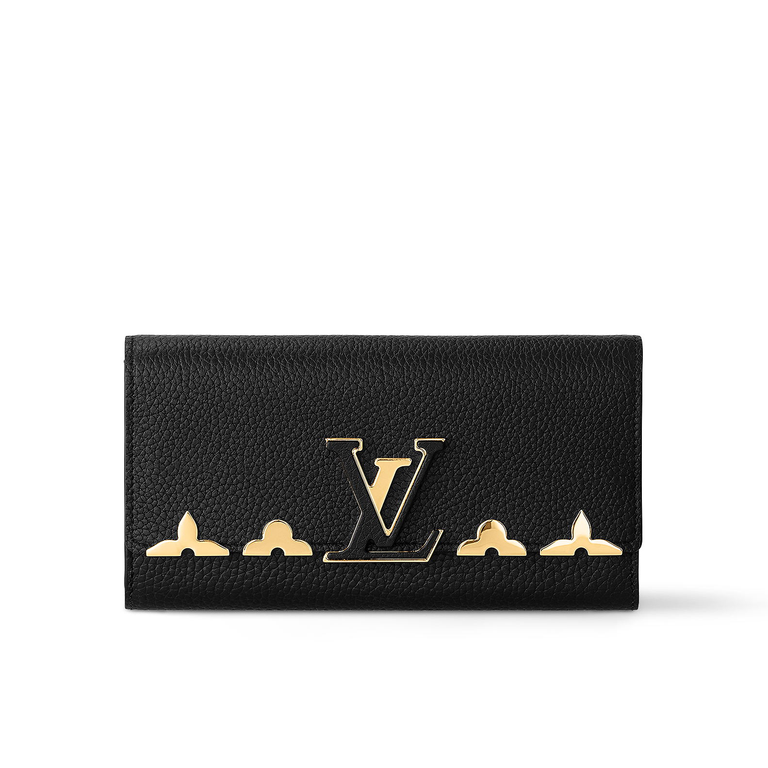 Matching the emblematic Capucines bag, this elegant wallet is given a refined, feminine touch by Monogram flower ornaments, which are fixed by hand to its flap, creating a crown-like effect. Its sleek design is large enough to hold all everyday essentials.