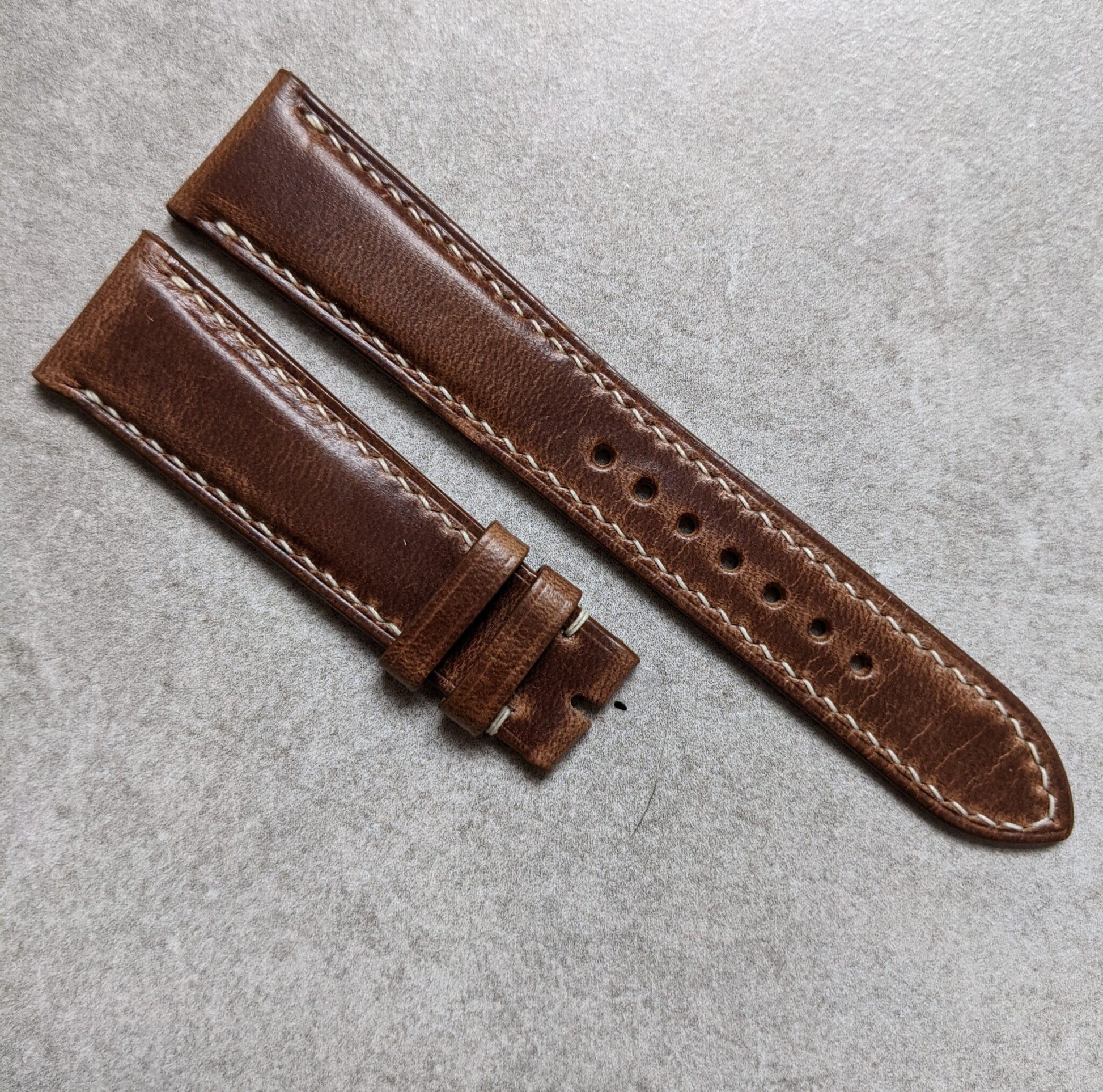 Smooth to the touch and very supple. Ages beautifully with a subtle patina from new. The pull up effect give an immediate texture and aged look to the strap as you manipulate and bend it. A fantastic addition to any watch but particularly wonderful for vintage watches