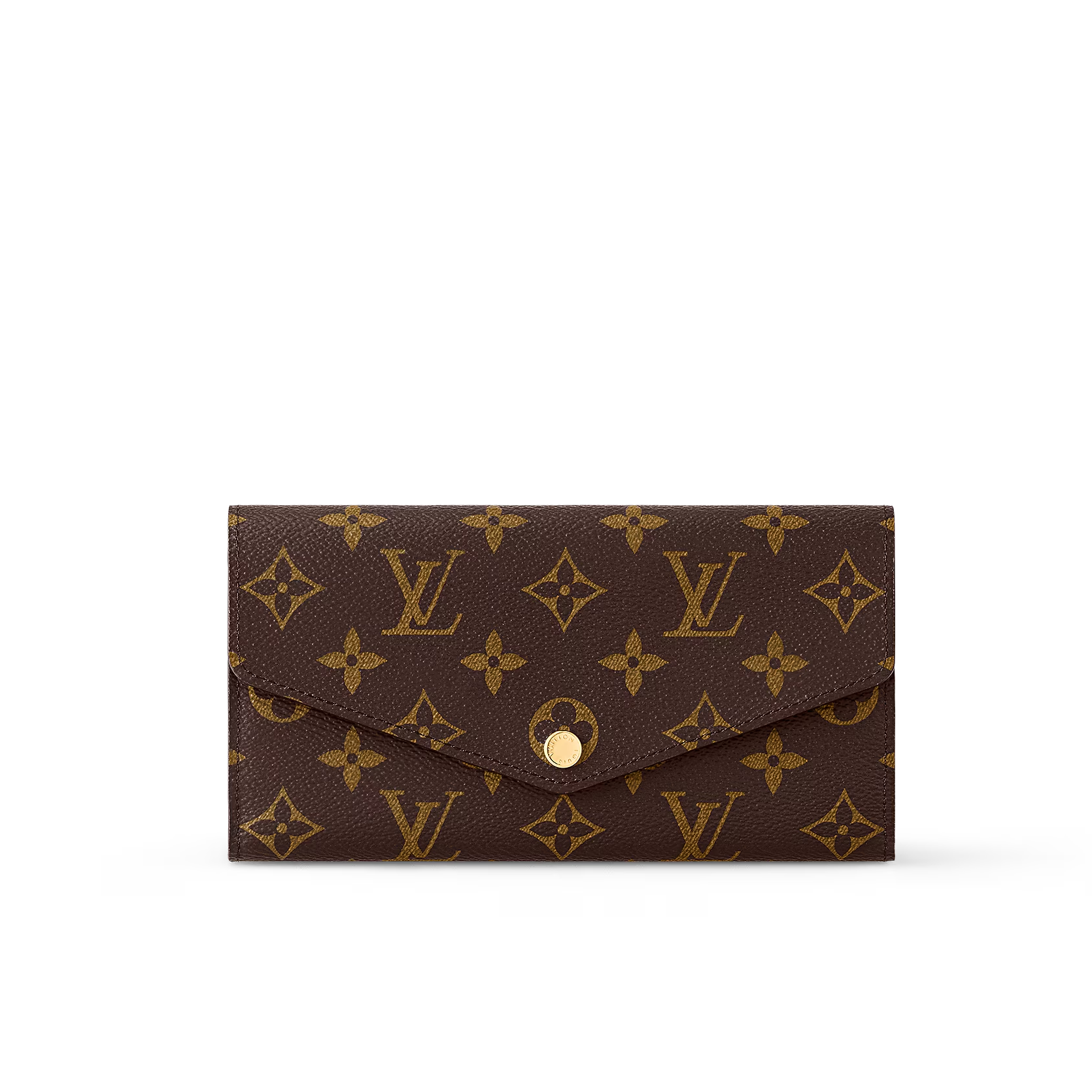 One of Louis Vuitton's classic models, the Sarah wallet combines Monogram canvas with a grained-leather lining. Its elegant envelope-style design conceals a spacious interior with two large compartments, a central zipped coin pocket and multiple card slots. The perfect choice to keep all essentials in one safe place.