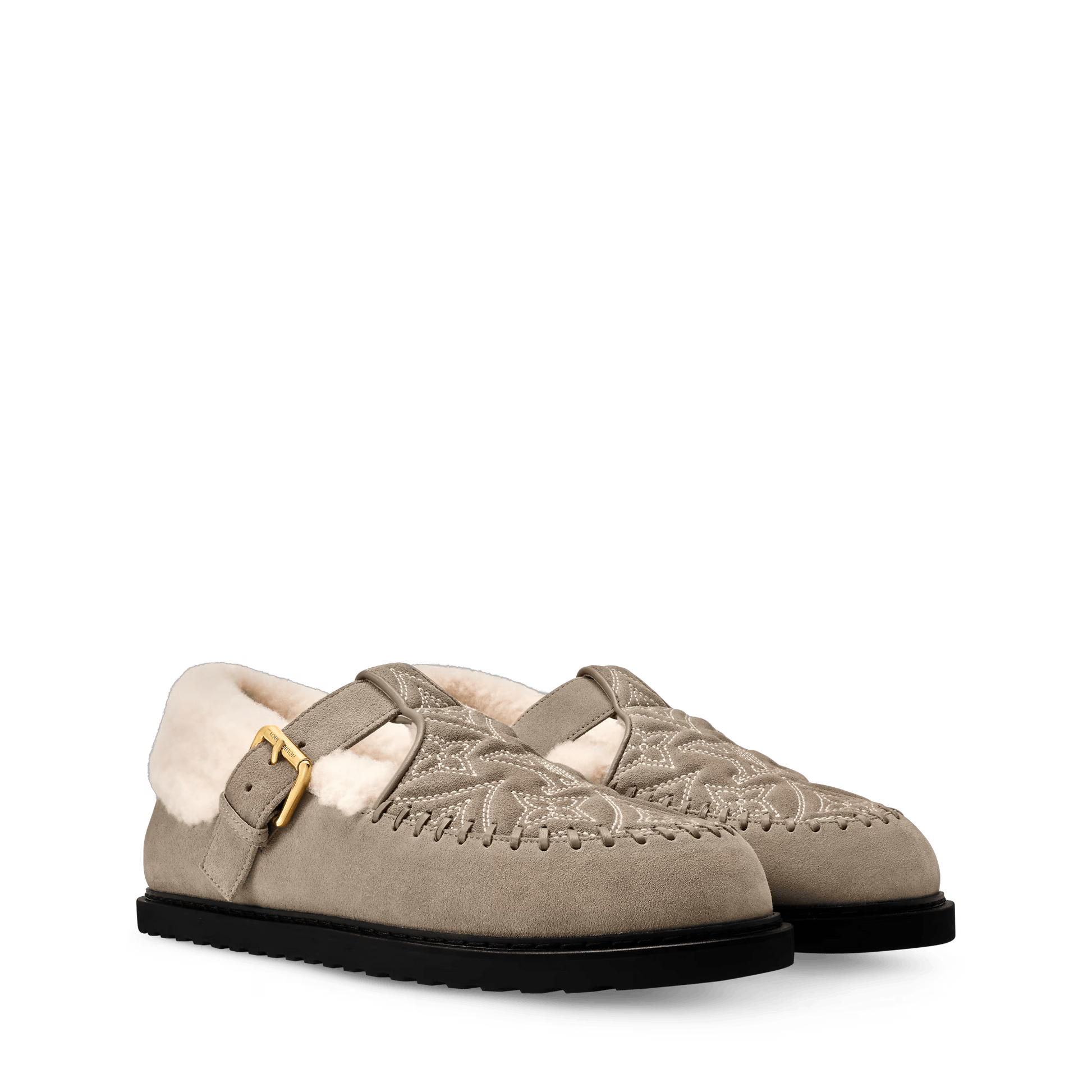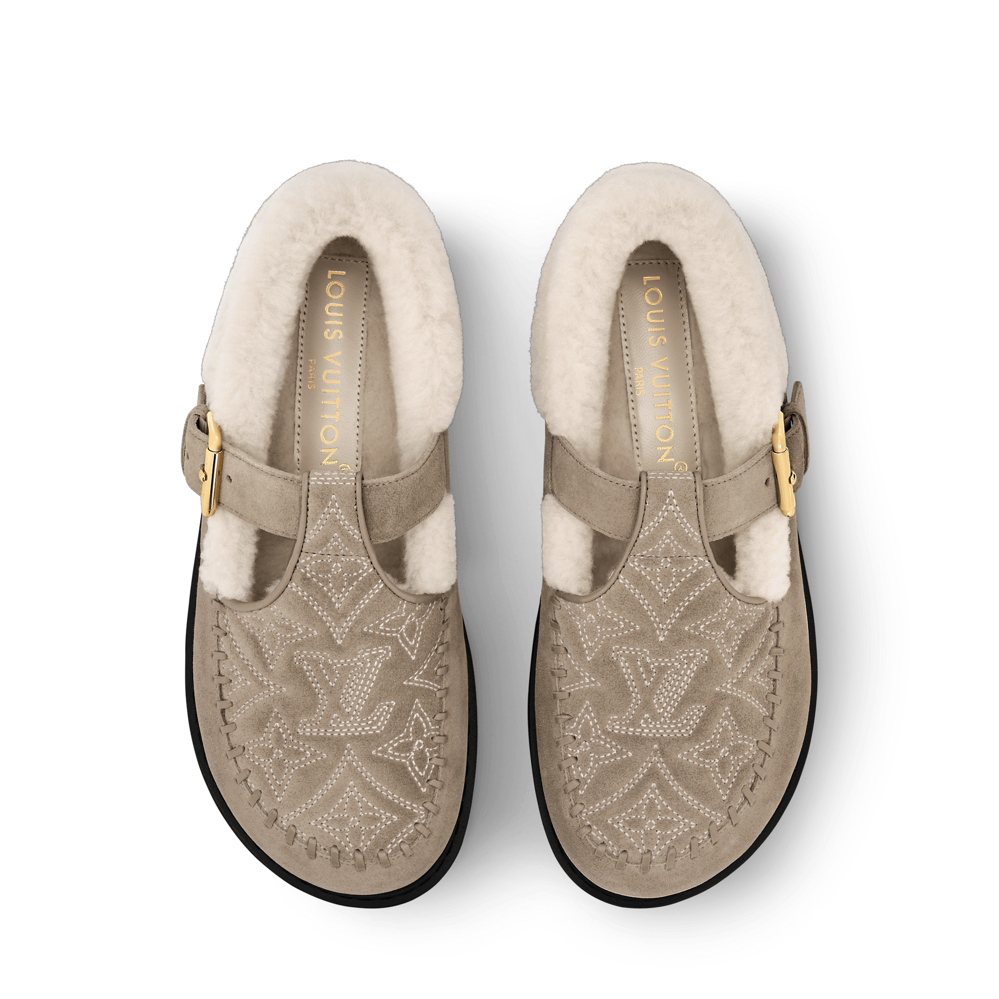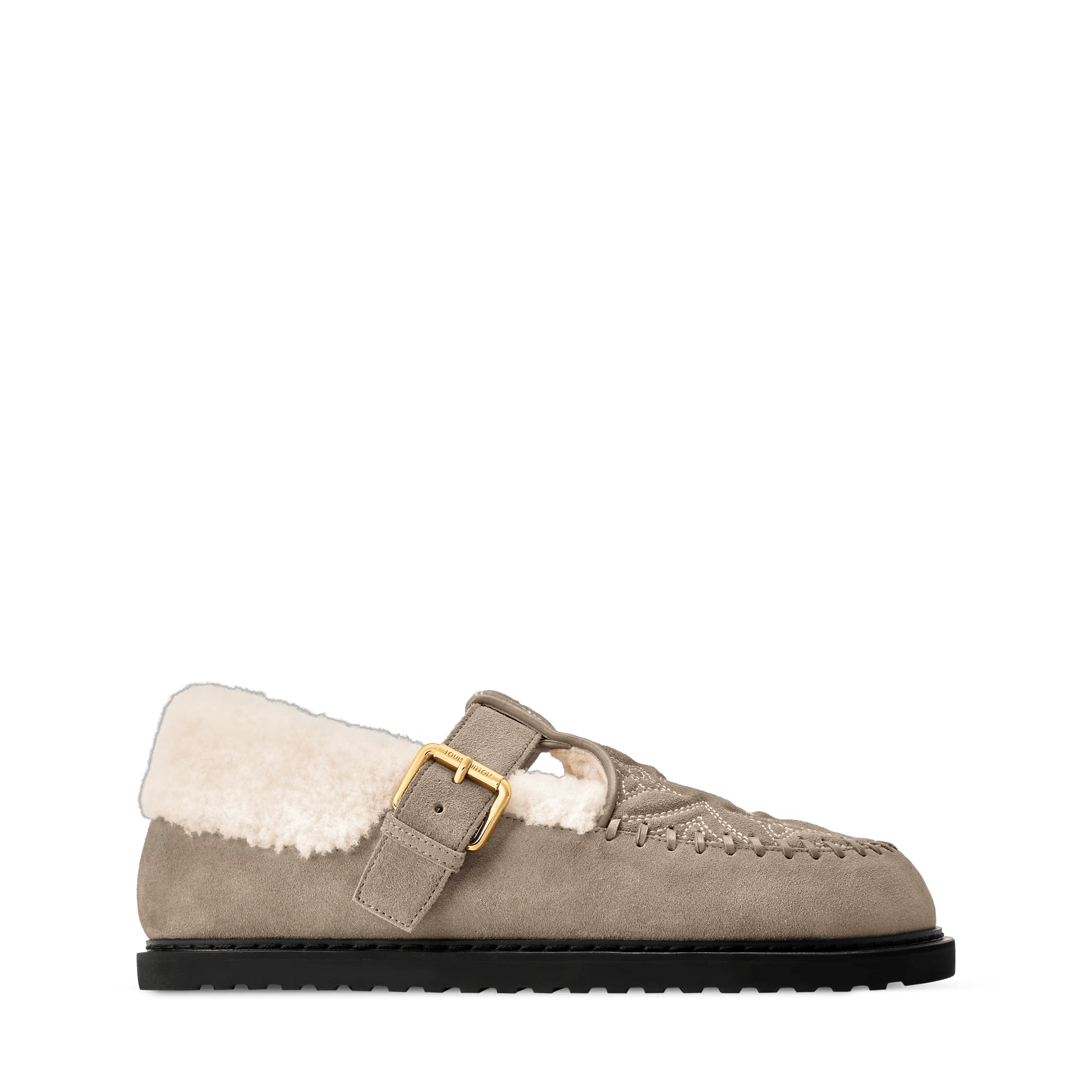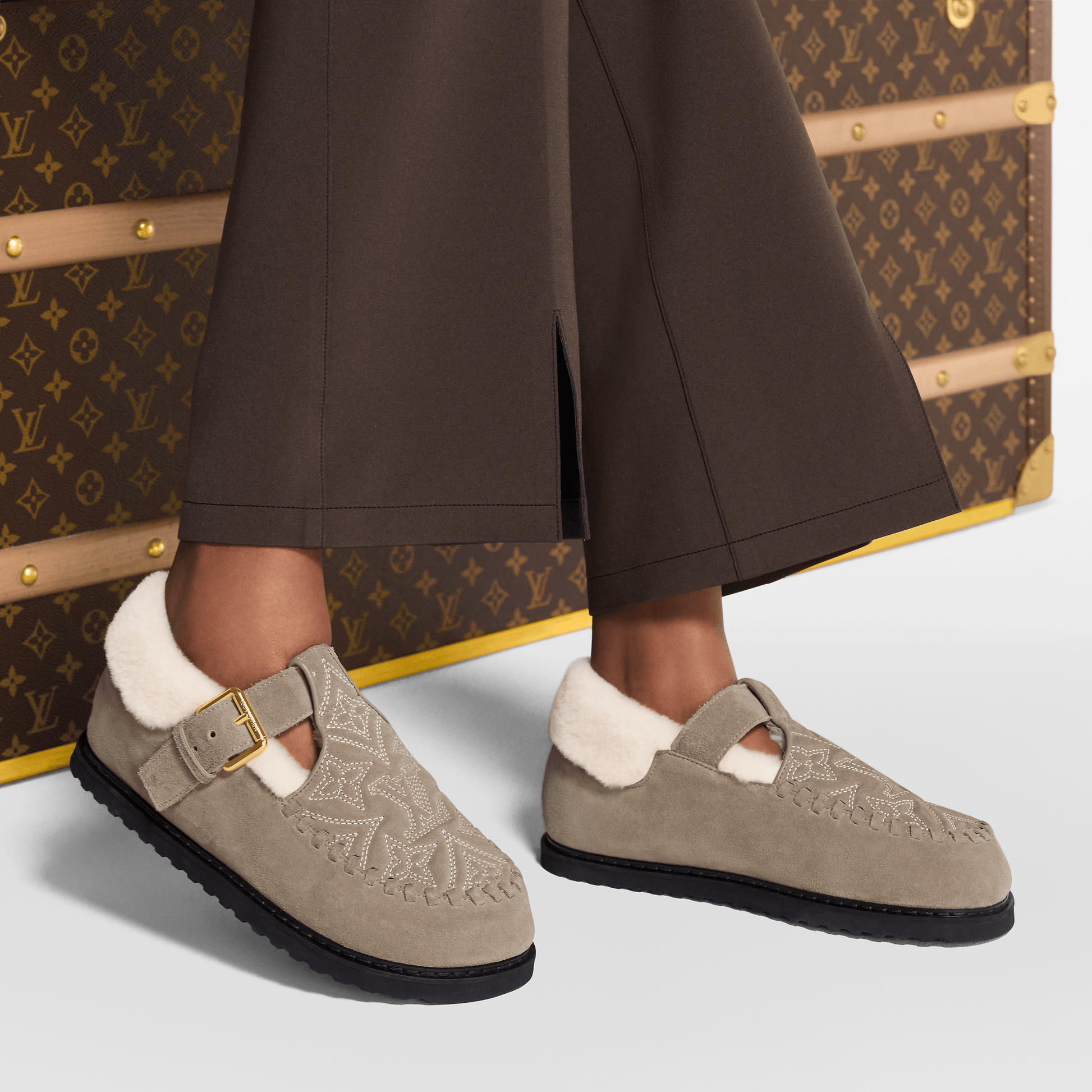 The Colorado comfort Mary Jane comes in velvety suede calf leather with a snug shearling lining. The vamp is embroidered with the Louis Vuitton Monogram pattern, while the strap is adjusted with an engraved, gold-toned buckle. Both on-trend and easy-to-wear, this style is finished with a lightweight micro outsole.