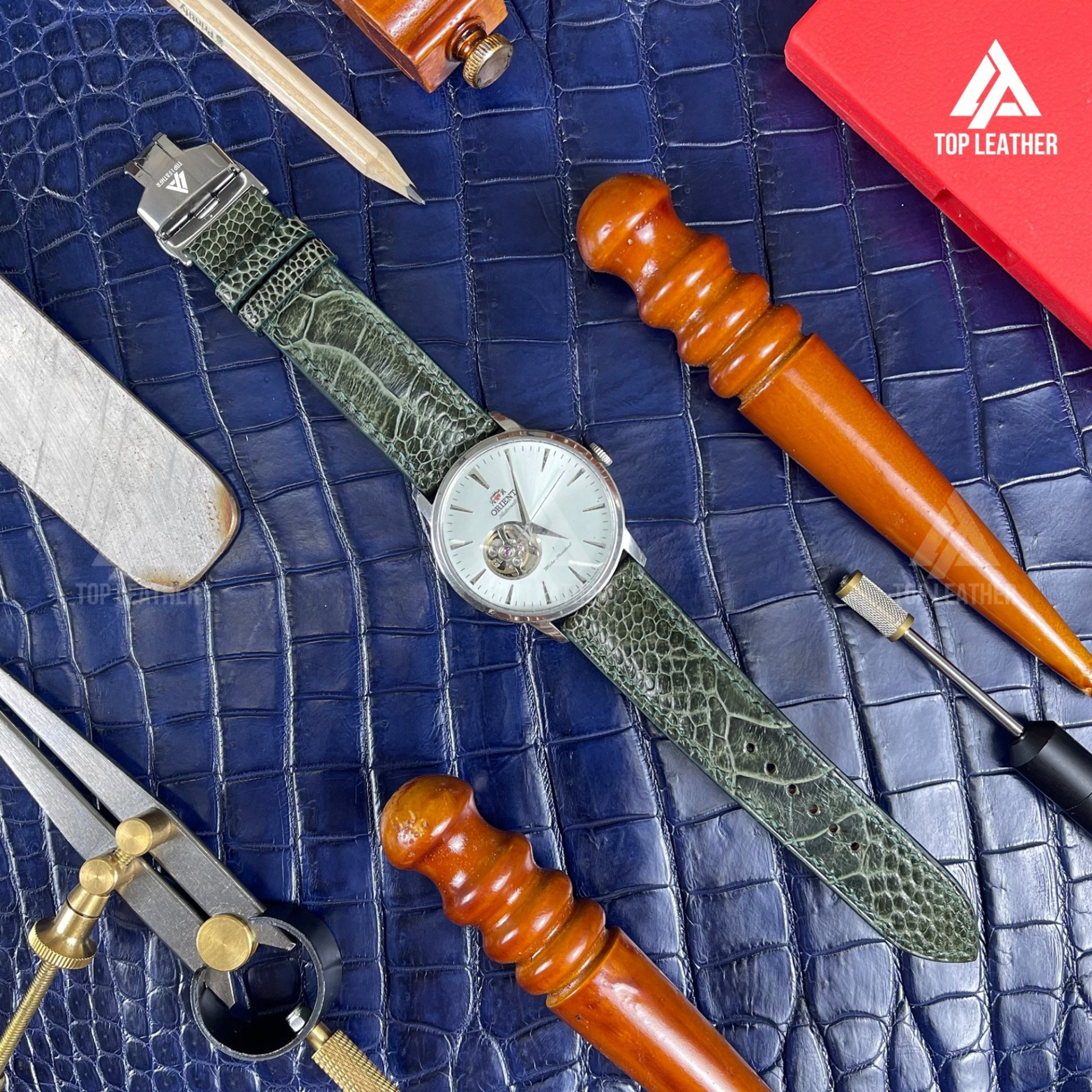 Genuine Ostrich Leather Watch Strap Band for Apple Watch, Samsung Galaxy Watch, Mechanical Watch - Green