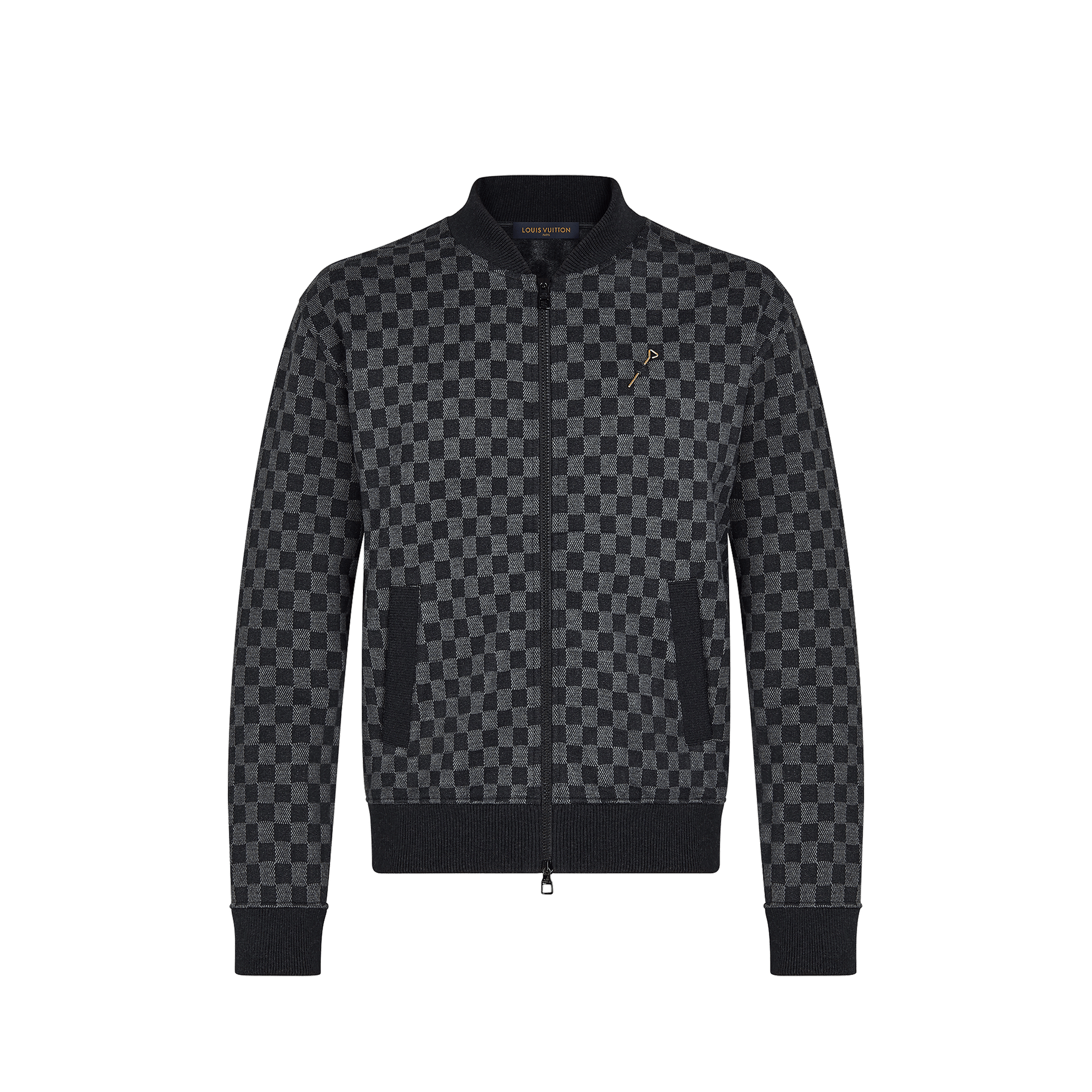 This sleek bomber is all about the House's iconic Damier motif. The pattern is played as an all-over jacquard weave on brushed-back cotton fabric, cut in a regular fit. A non-removable old gold pin on the chest adds an extra Louis Vuitton signature. Details include a knitted cotton collar, cuffs and waist, and a V-shaped construction detail on the shoulder.