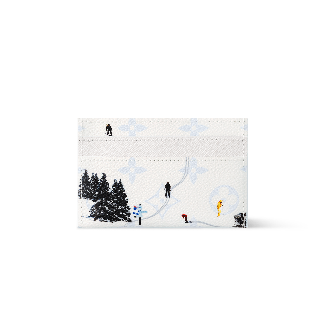 Double Card Holder is crafted from colored Monogram canvas, featuring a print of a miniature sports scene. The playful image adds a whimsical touch to this classic accessory. The interior is lined with cowhide leather and offers four card slots along with a central pocket for smaller essentials.