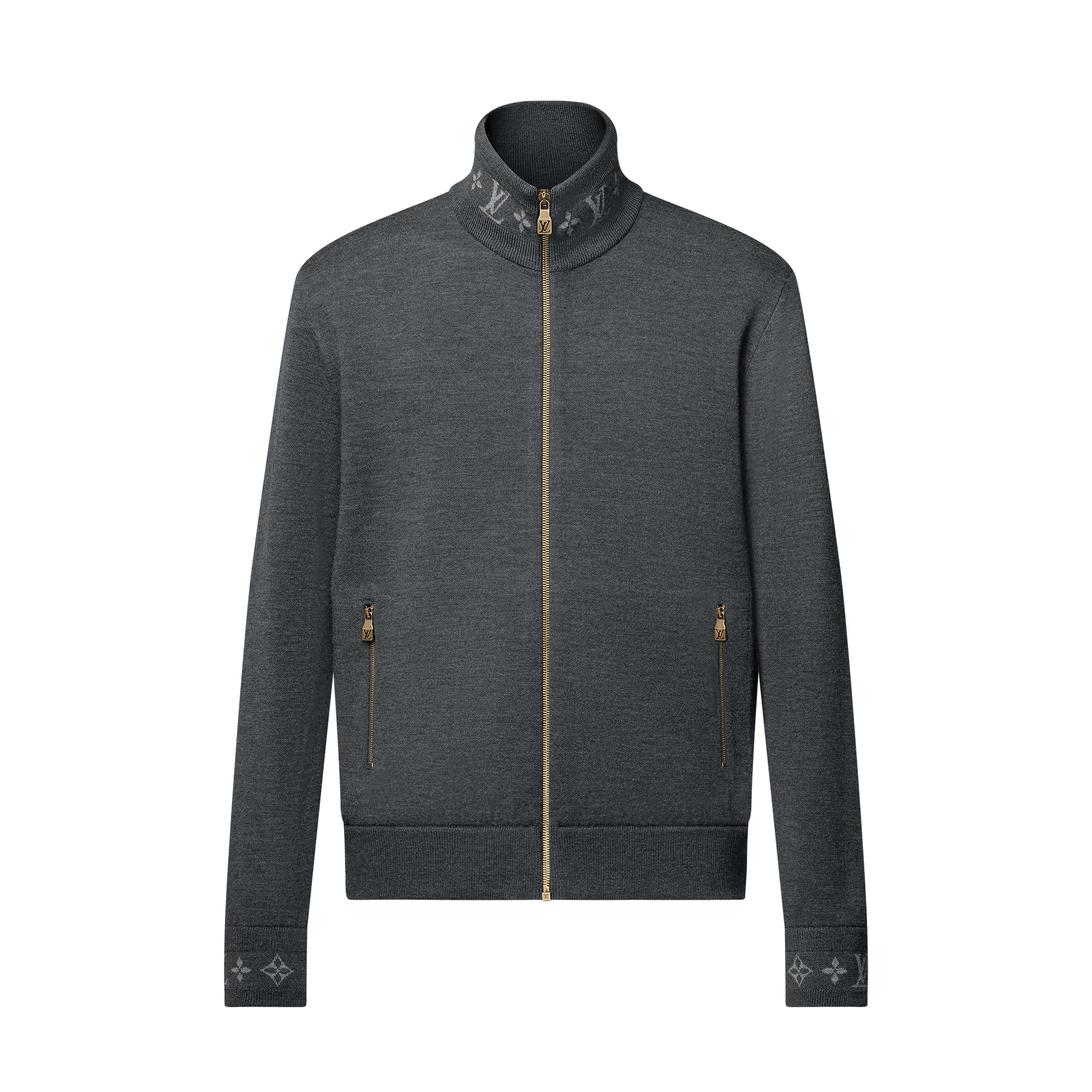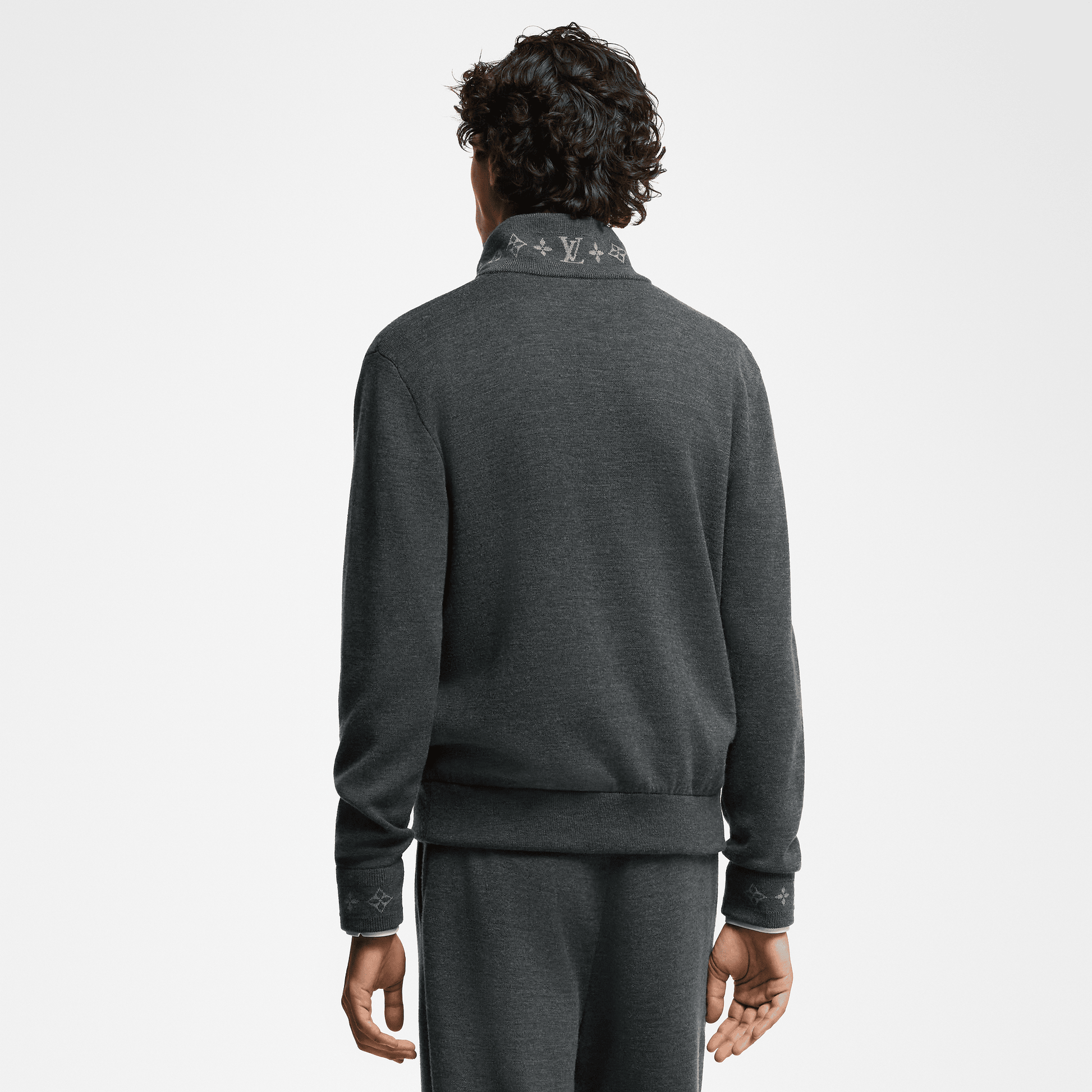Combining comfort with elegance, this dark grey organic wool blouson is crafted in a double-face knit with a soft cotton interior. The pared-down silhouette is accented with jacquard Monogram details on the collar and cuffs, which remain visible when layered under a coat or jacket. Matching pants make a smart travel set.