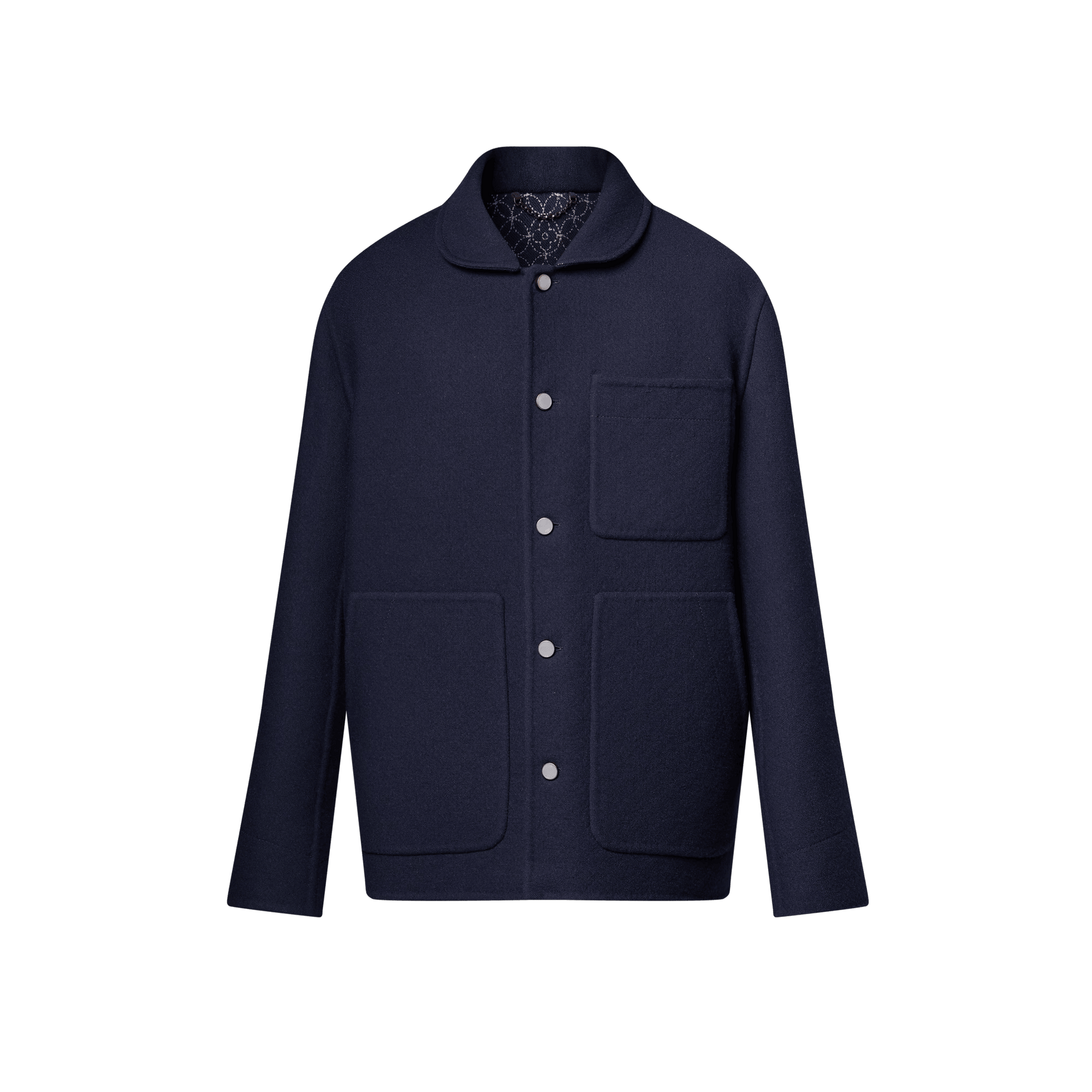 This timeless navy blue jacket from the Fall-Winter 2025 show has a softly structured workwear silhouette crafted from double-face wool. A contrasting jacquard featuring this collection’s Dandy Monogram adorns the interior while a rounded collar and pearl-effect buttons add chic accents. This light and effortlessly elegant piece complements a wide range of everyday looks.