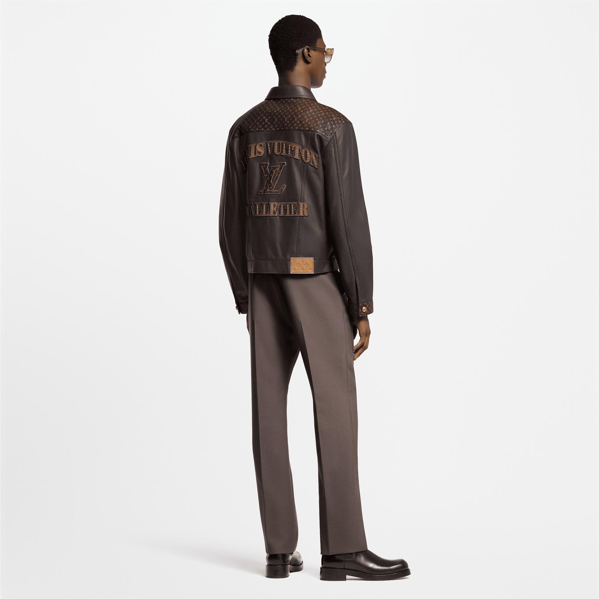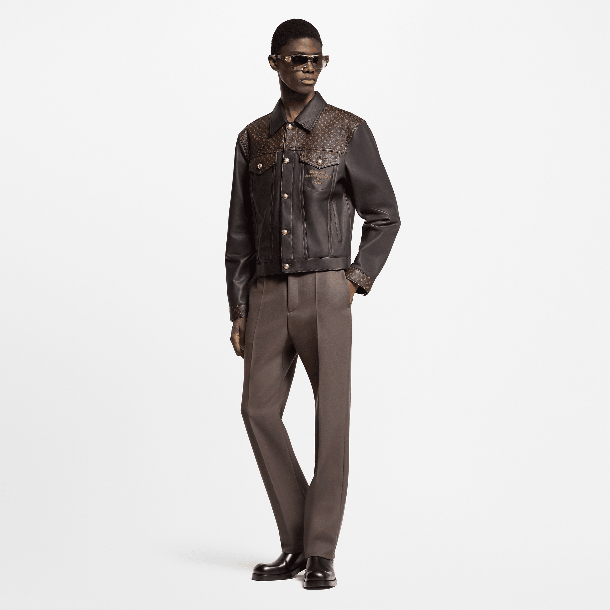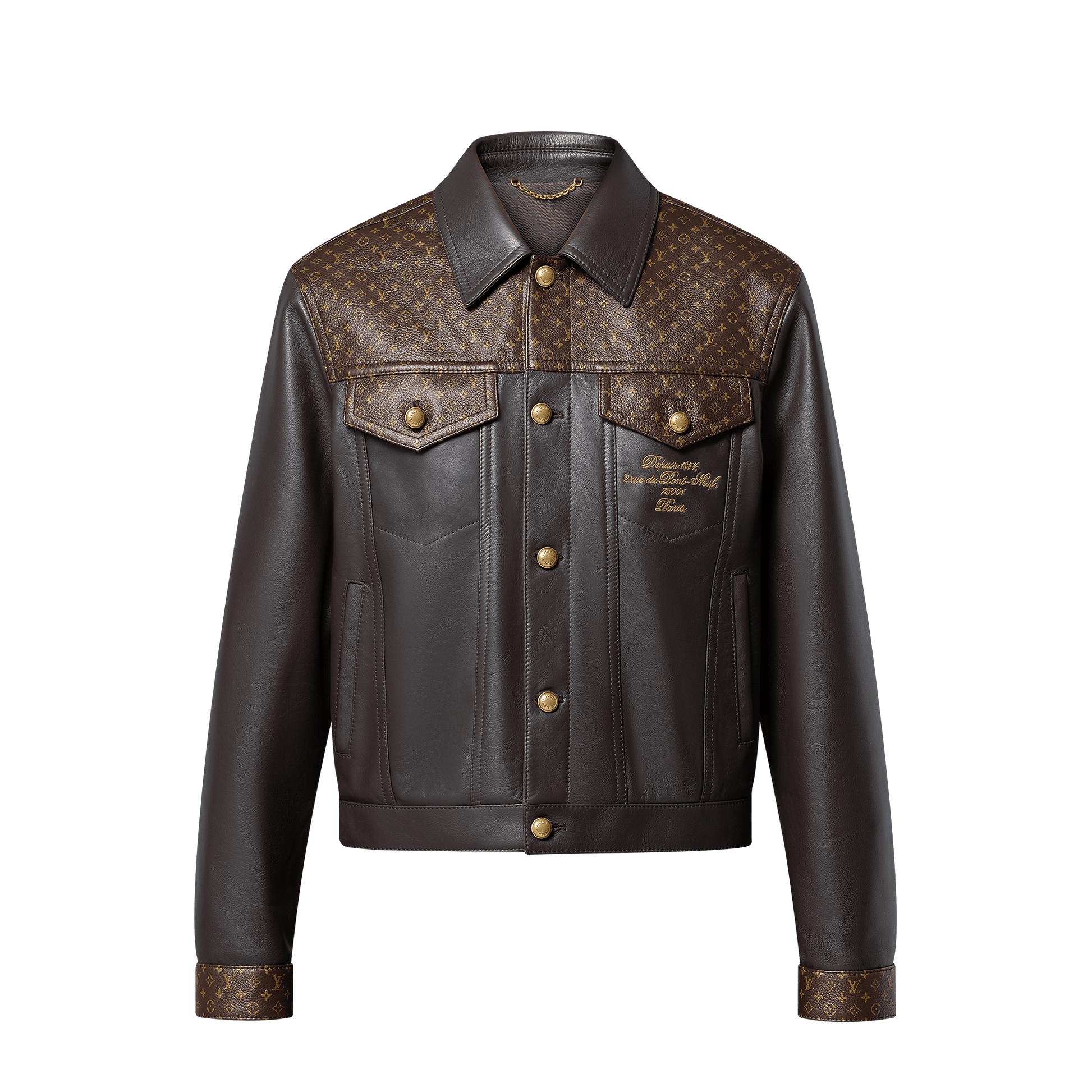This supple calfskin jacket elevates a classic trucker silhouette with Louis Vuitton savoir-faire. Creative details include tonal leather signature patches embellished with studs and crystals, a Micro Monogram motif on the yoke and cuffs and contrasting signature embroidery on the left chest pocket. Crafted in this season’s elegant dark brown tones, it brings an iconic accent to everyday looks.