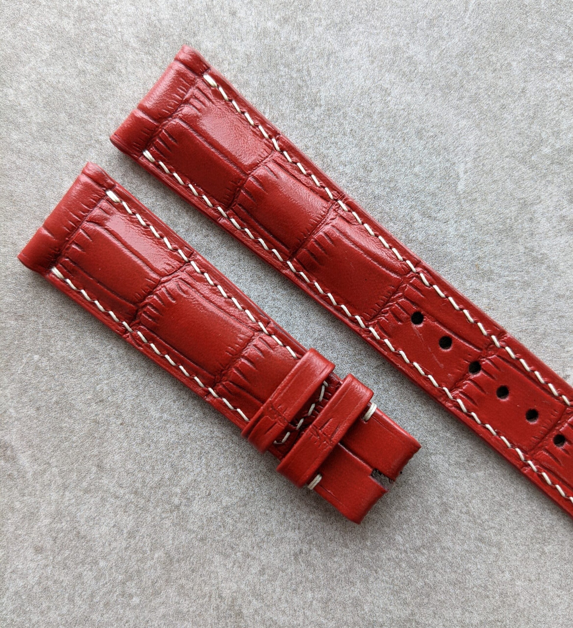 Embossed Crocodile Watch Strap - Red W/Cream Stitching