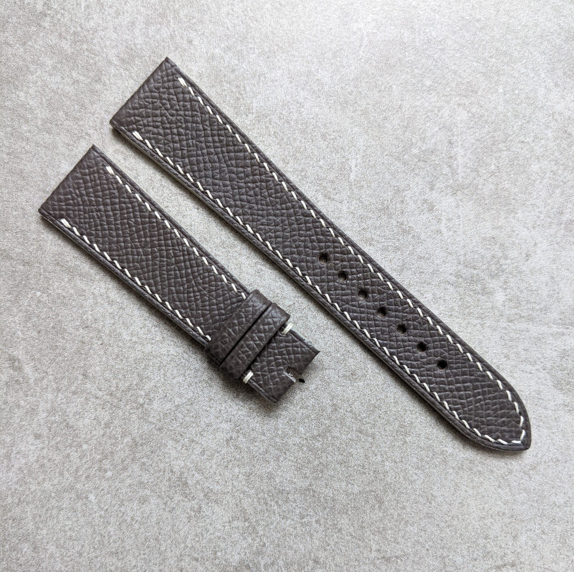 Epsom Calfskin Watch Strap - Dark Grey W/White stitching & Edges