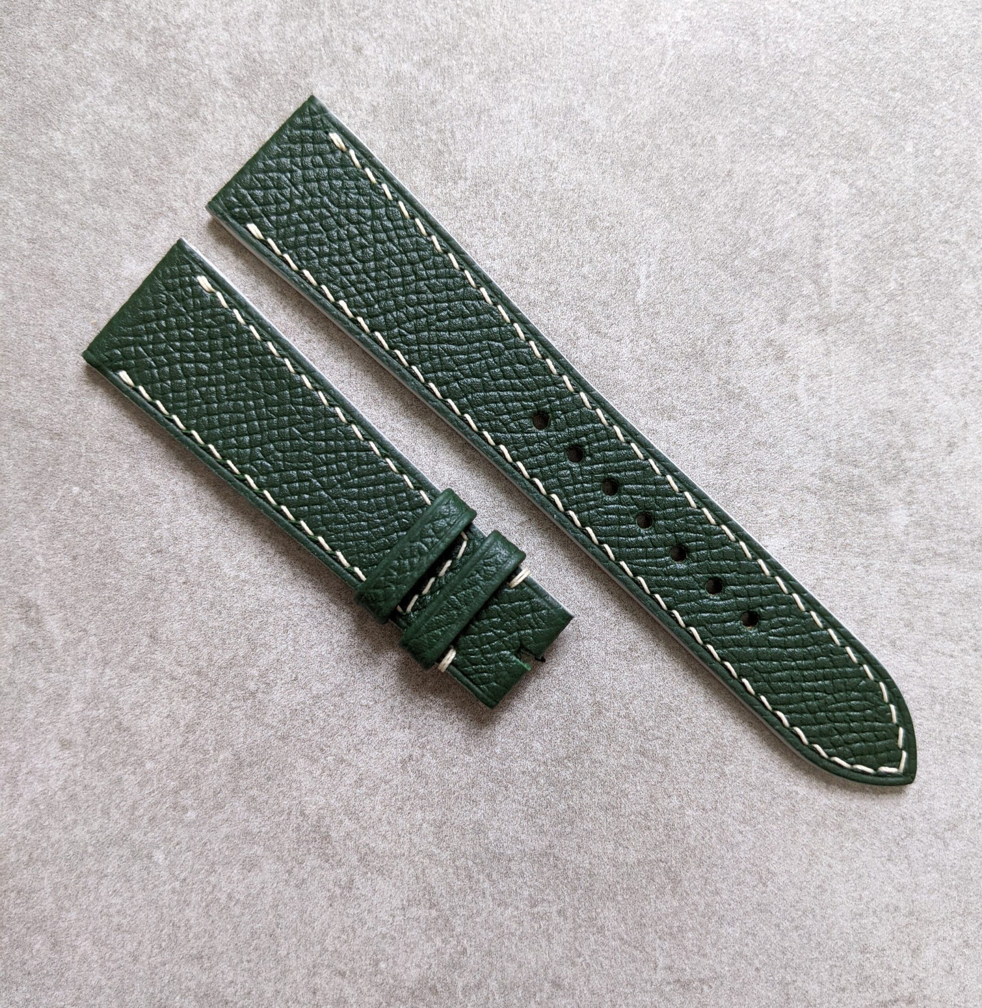 Epsom Calfskin Watch Strap - Forest Green & Cream