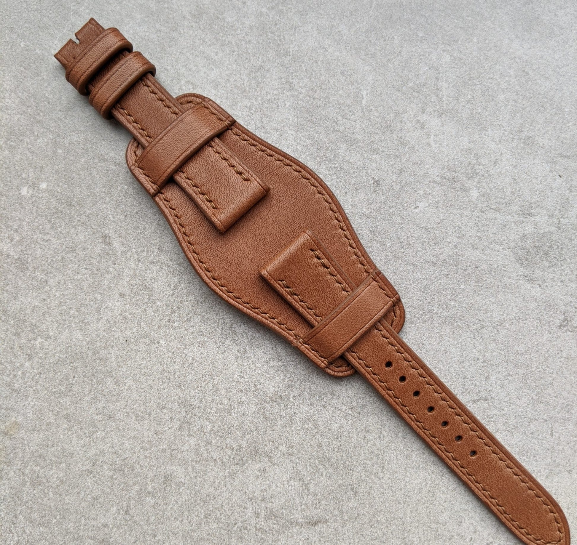 French Calfskin Leather Bund Watch Strap - Chesnut Brown