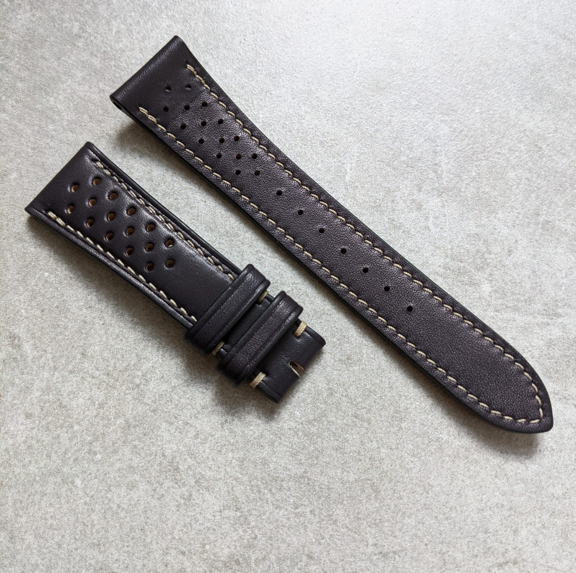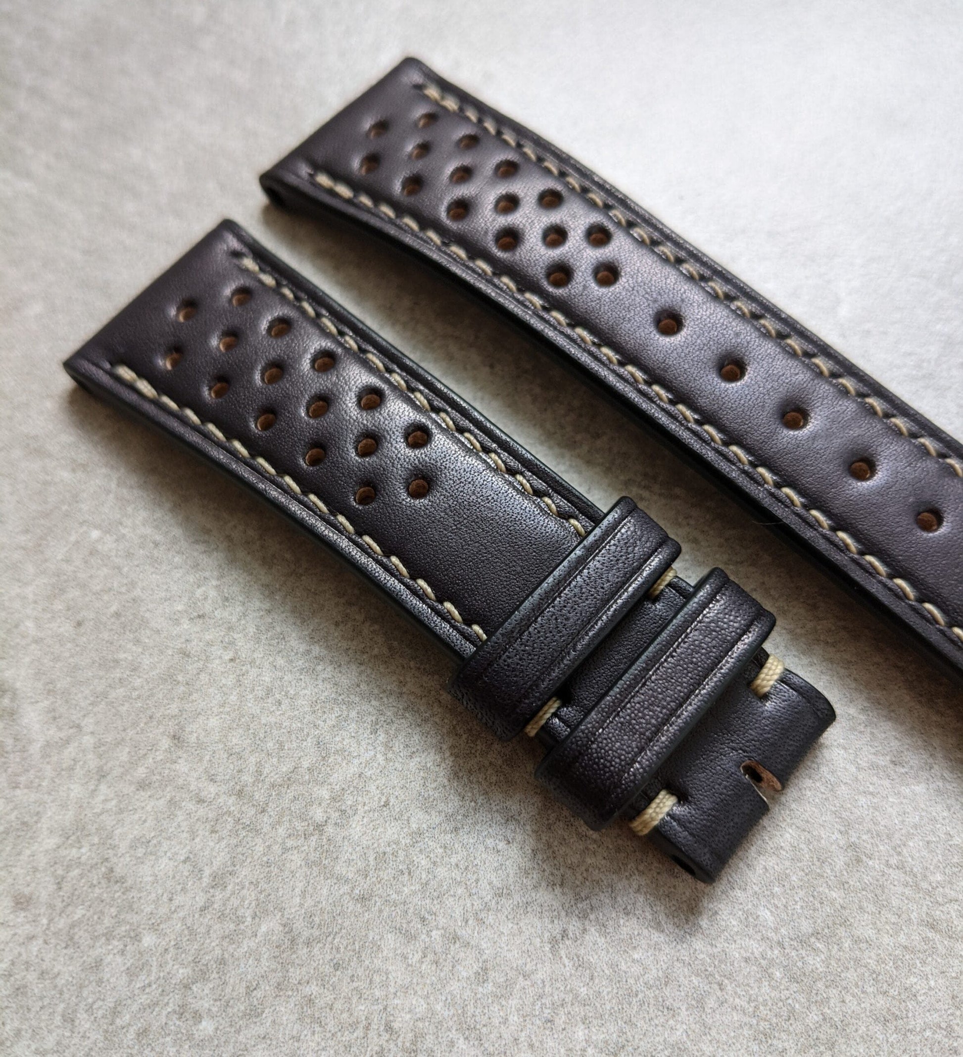 French Calfskin Rally Watch Strap - Black W/Sandstone Stitching