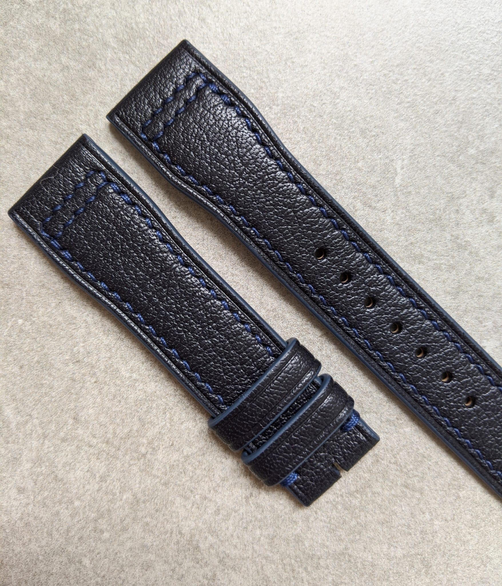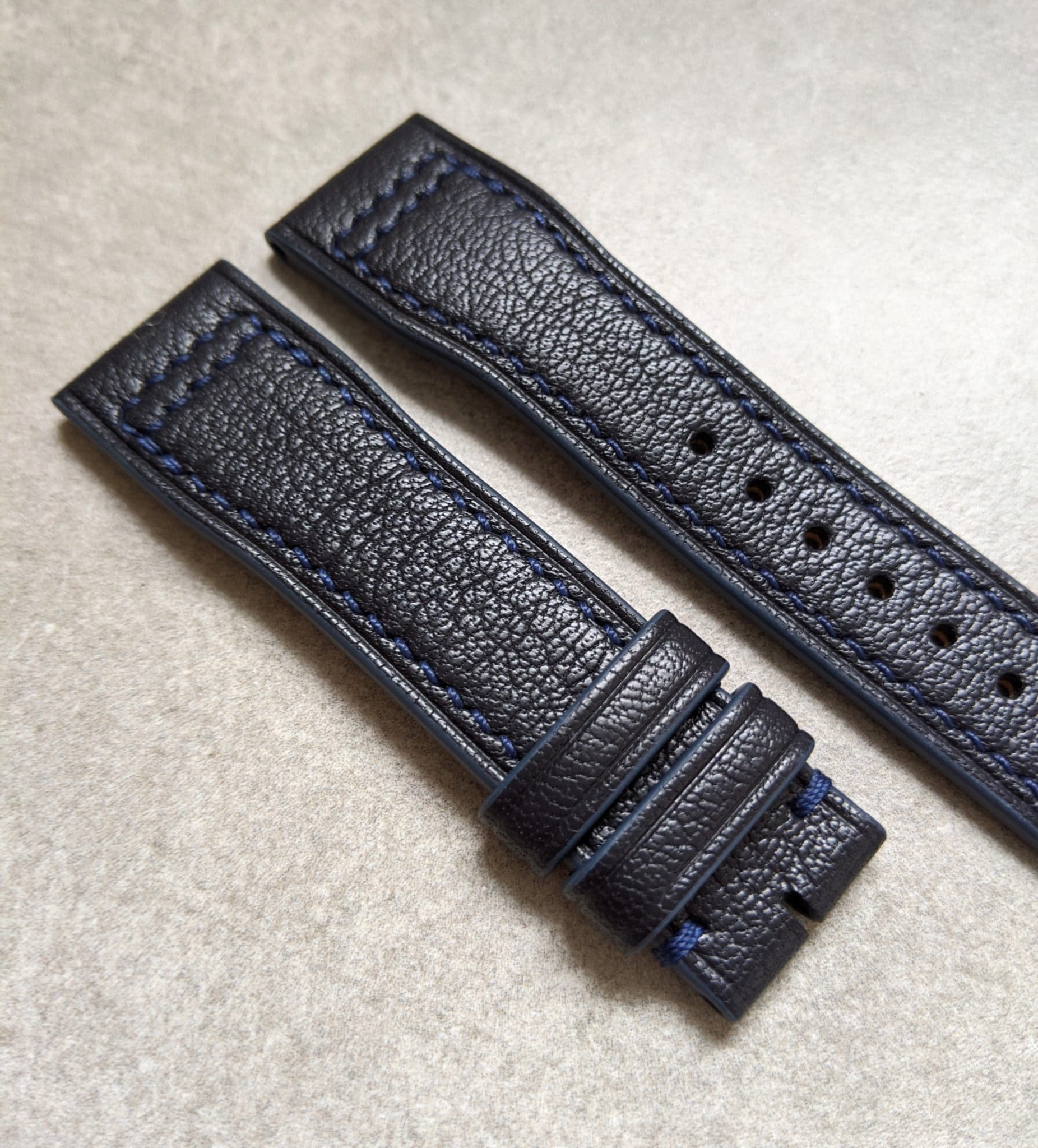 Chevre goatskin leather is a wonderful and buttery soft finish that is a joy to wear on the wrist. Immediately comfortable on the wrist and it possesses a texture that exudes quality. Chevre is equally at home on a luxury timepiece as it is on a vintage 50's watch - super versatile