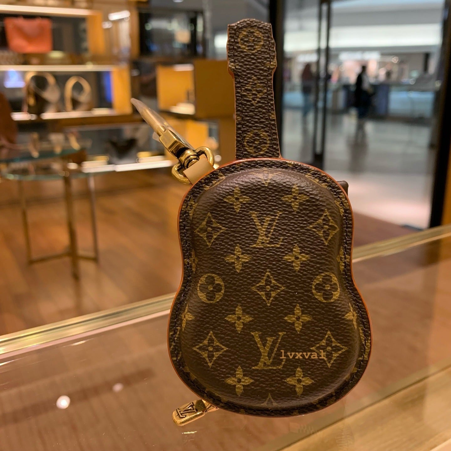 Celebrate the Maison’s playful spirit with the Guitar Bag Charm & Key Holder. Crafted in Monogram-embossed leather, this creative design takes the form of a miniature guitar, blending music and fashion in perfect harmony. Finished with a polished gold-tone clasp engraved with Louis Vuitton signature, it can be used both as a decorative charm on a bag or a refined key holder. A collector’s piece that strikes a stylish chord.