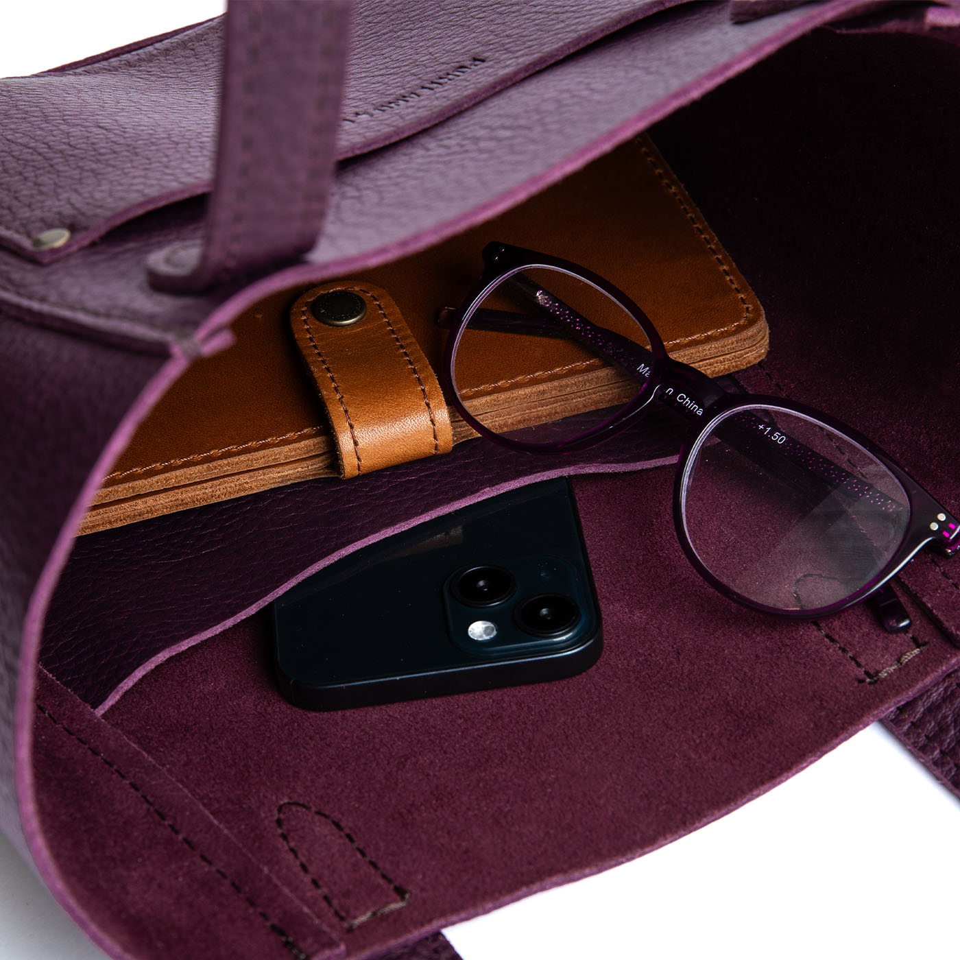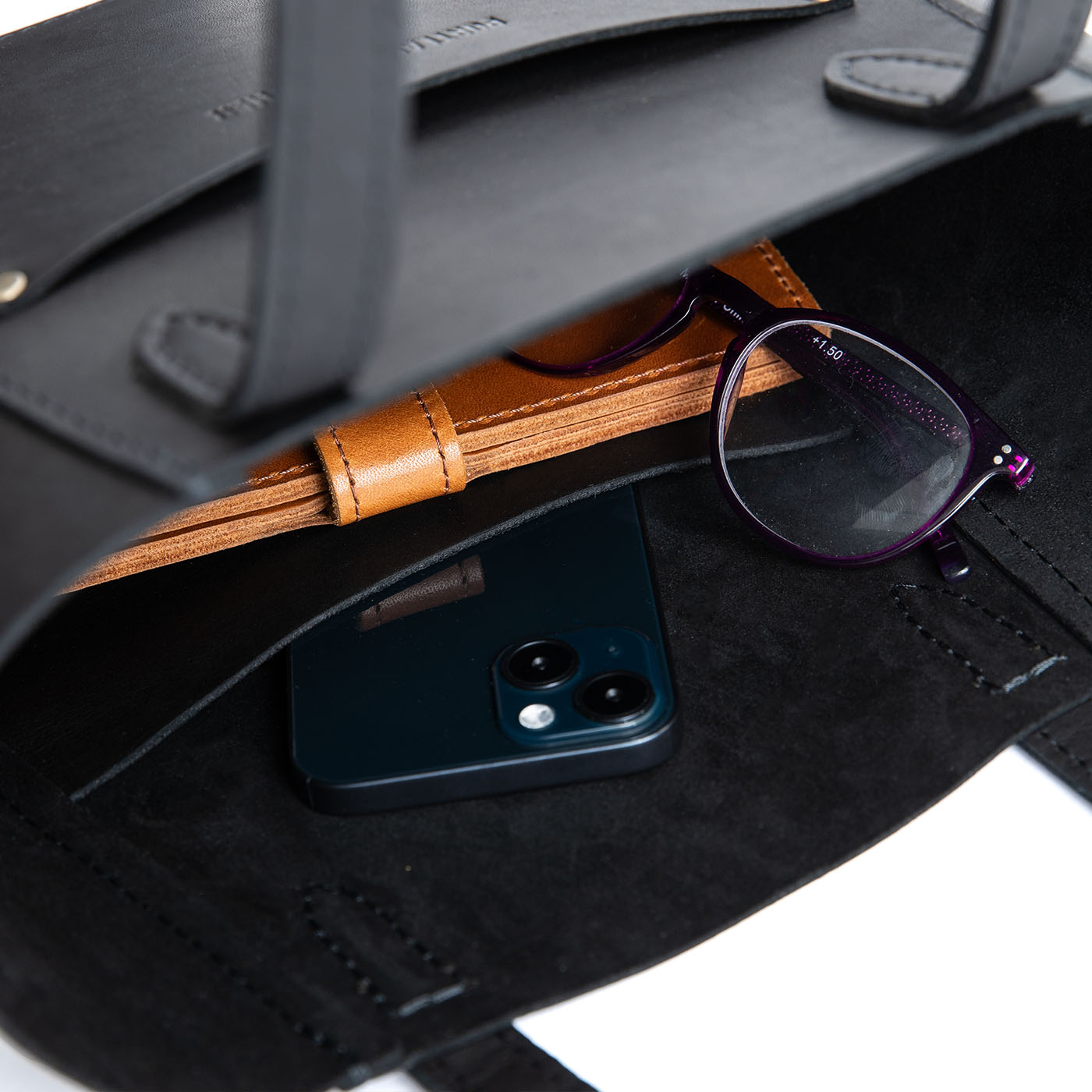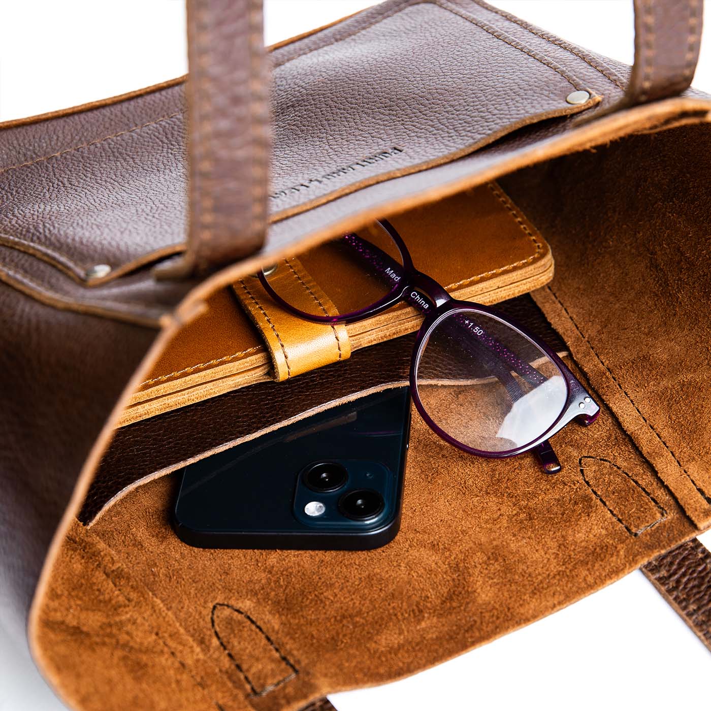 Our durable leather goods are unlined, featuring the natural suede side of the hide. Since fabric-lined bags inevitably discolor and tear with use, we chose to showcase the soft sueded underside of our hides, ensuring that your bag lasts a lifetime.