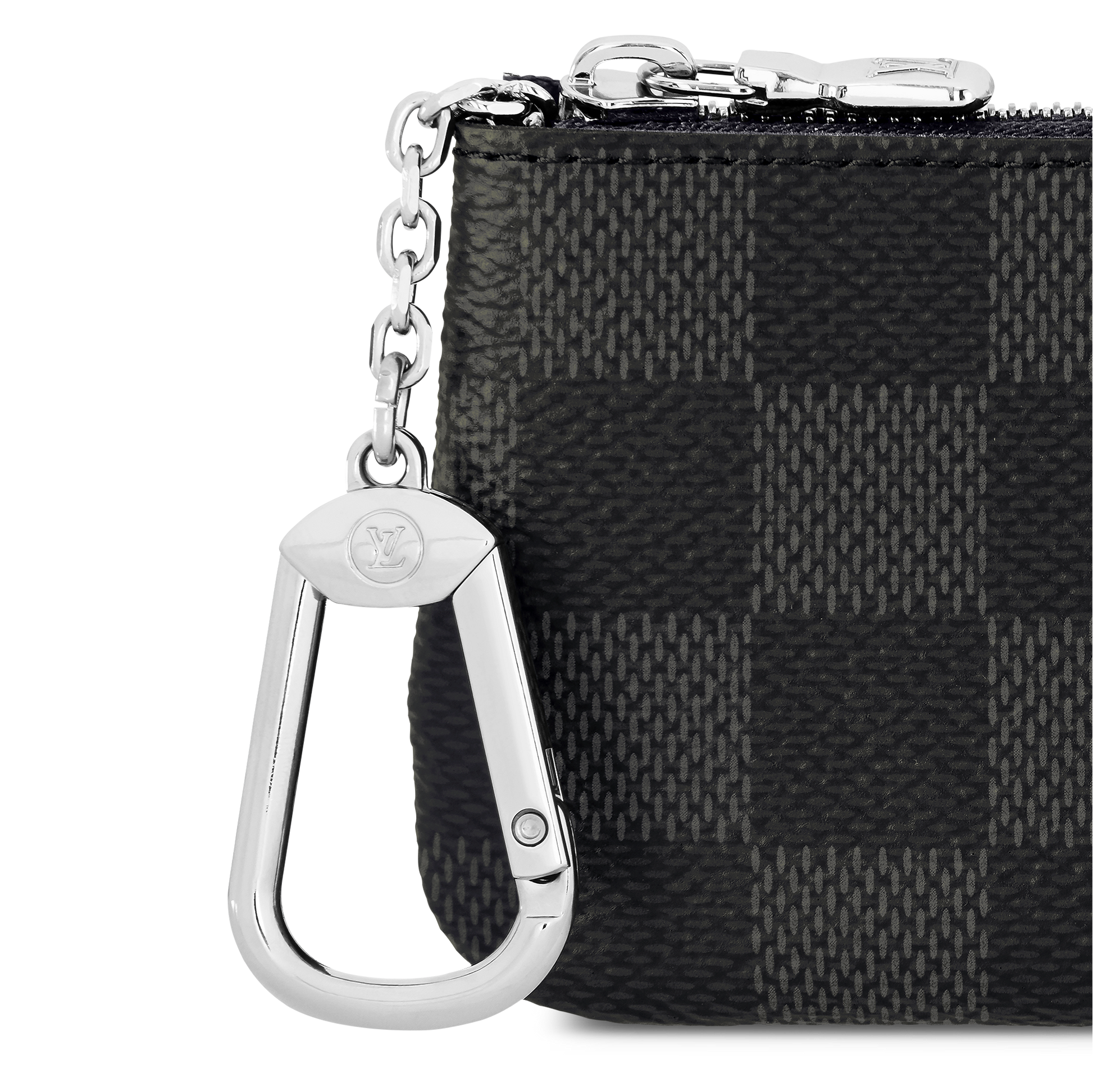 Crafted from historic Damier Ebene canvas, the Key Pouch is a simple design elevated by refined details, such as an LV-engraved zip and grained-leather lining. Playful and practical, it can be carried in different ways and will hold cash, cards and other small items as well as keys.