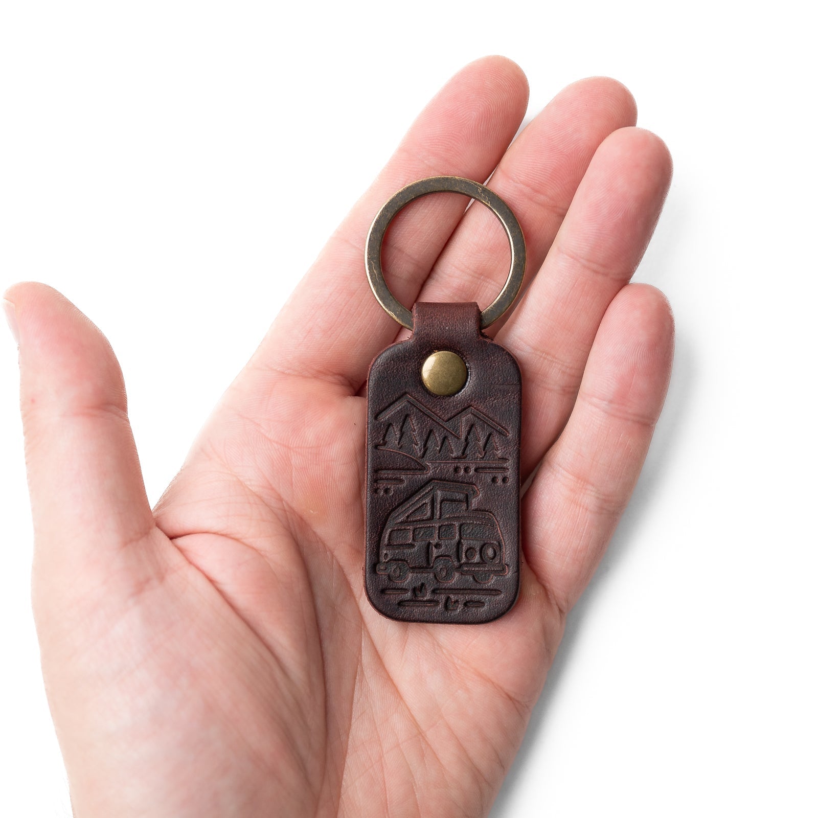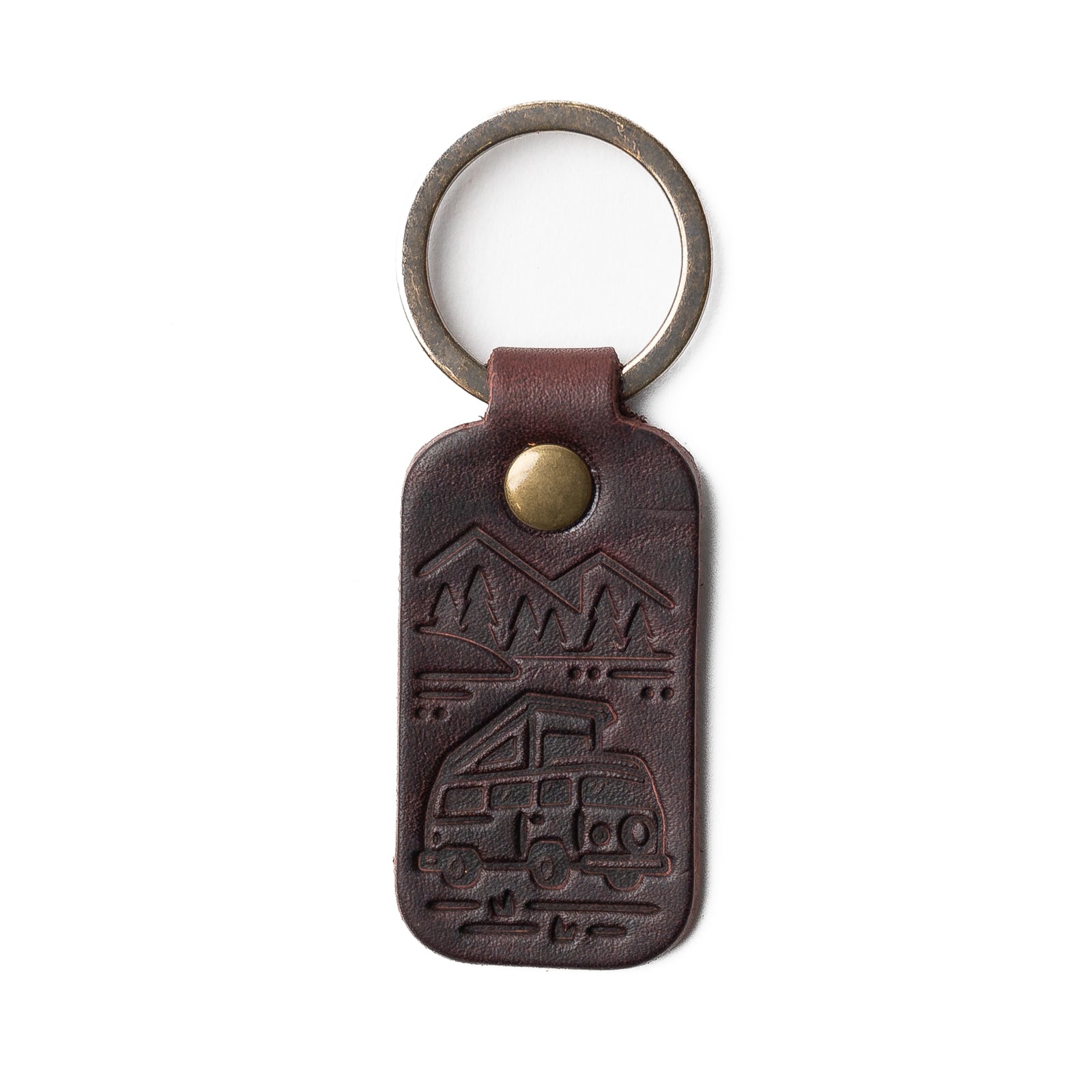 This leather keychain, cut and stamped from our thickest belt leather, is about as rugged as a real camper van should be.
