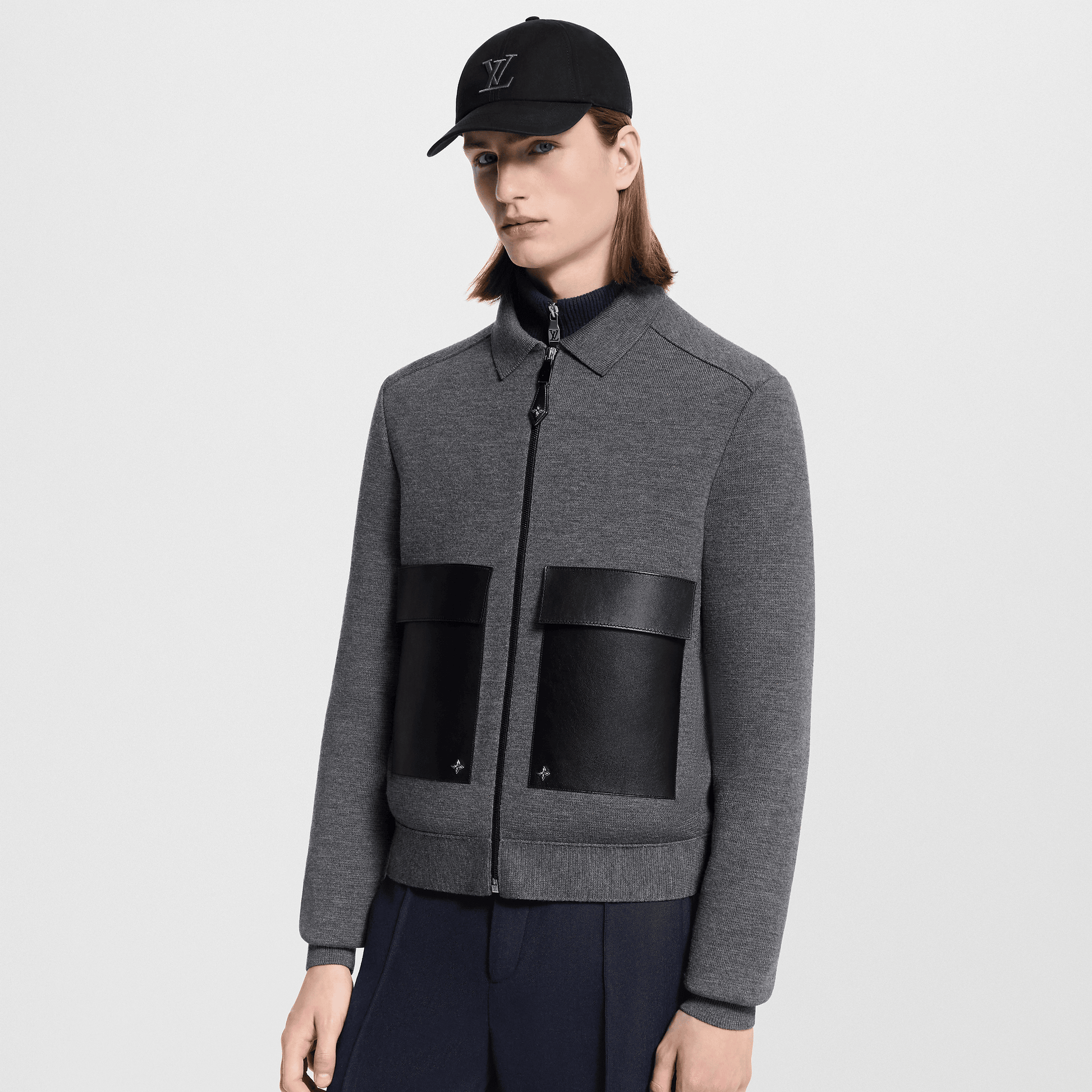 This wool-knit blouson draws on workwear inspiration to bring a contemporary twist to formal attire. It has large leather flap pockets and a sporty zipper fastening, both of which are adorned with metal Monogram Flower rivets. Elegant and timeless in dark gray, this versatile piece can be styled under a jacket or coat or as a light outer layer.
