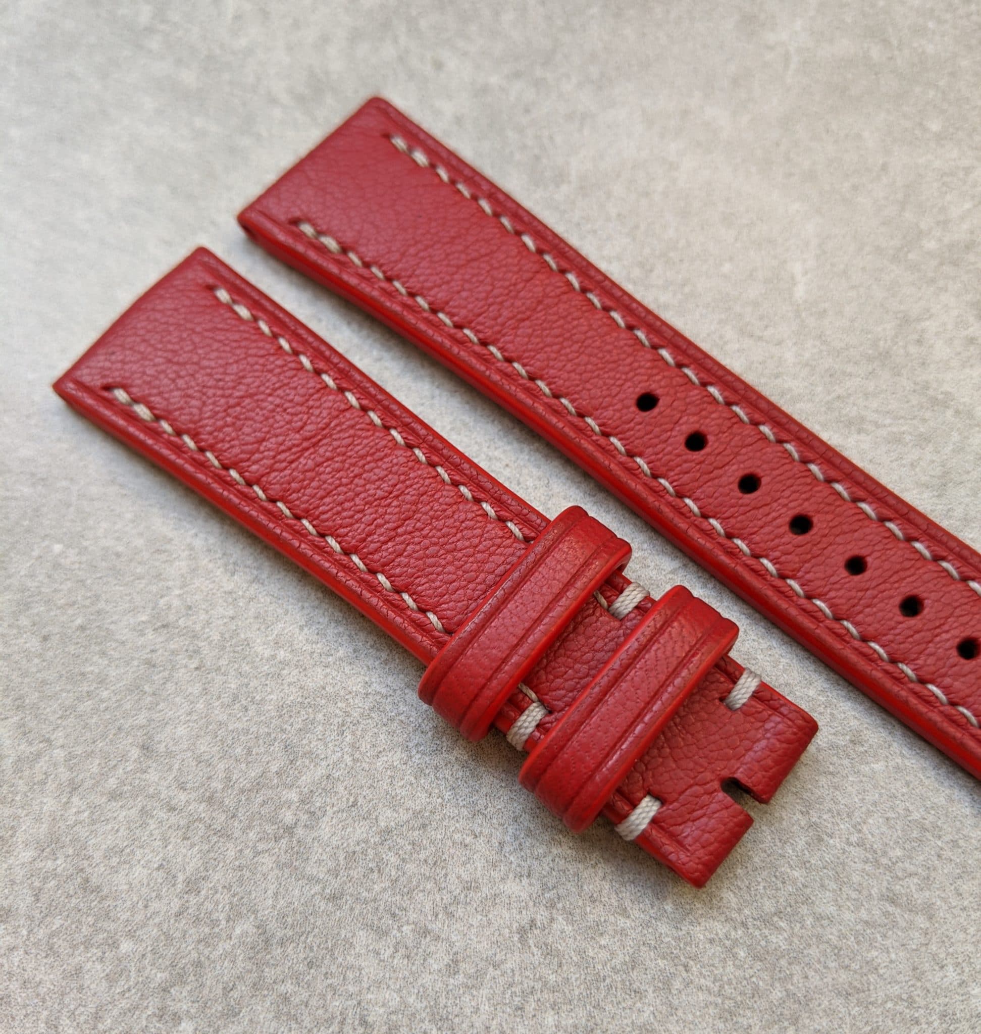 Chevre goatskin leather is a wonderful and buttery soft finish that is a joy to wear on the wrist. Immediately comfortable on the wrist and it possesses a texture that exudes quality. Chevre is equally at home on a luxury timepiece as it is on a vintage 50's watch - super versatile
