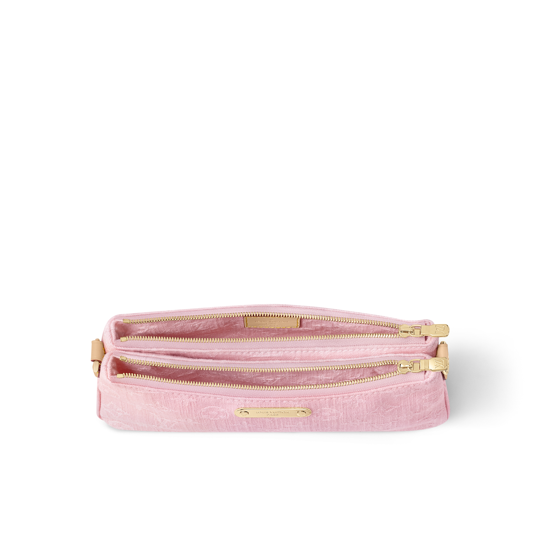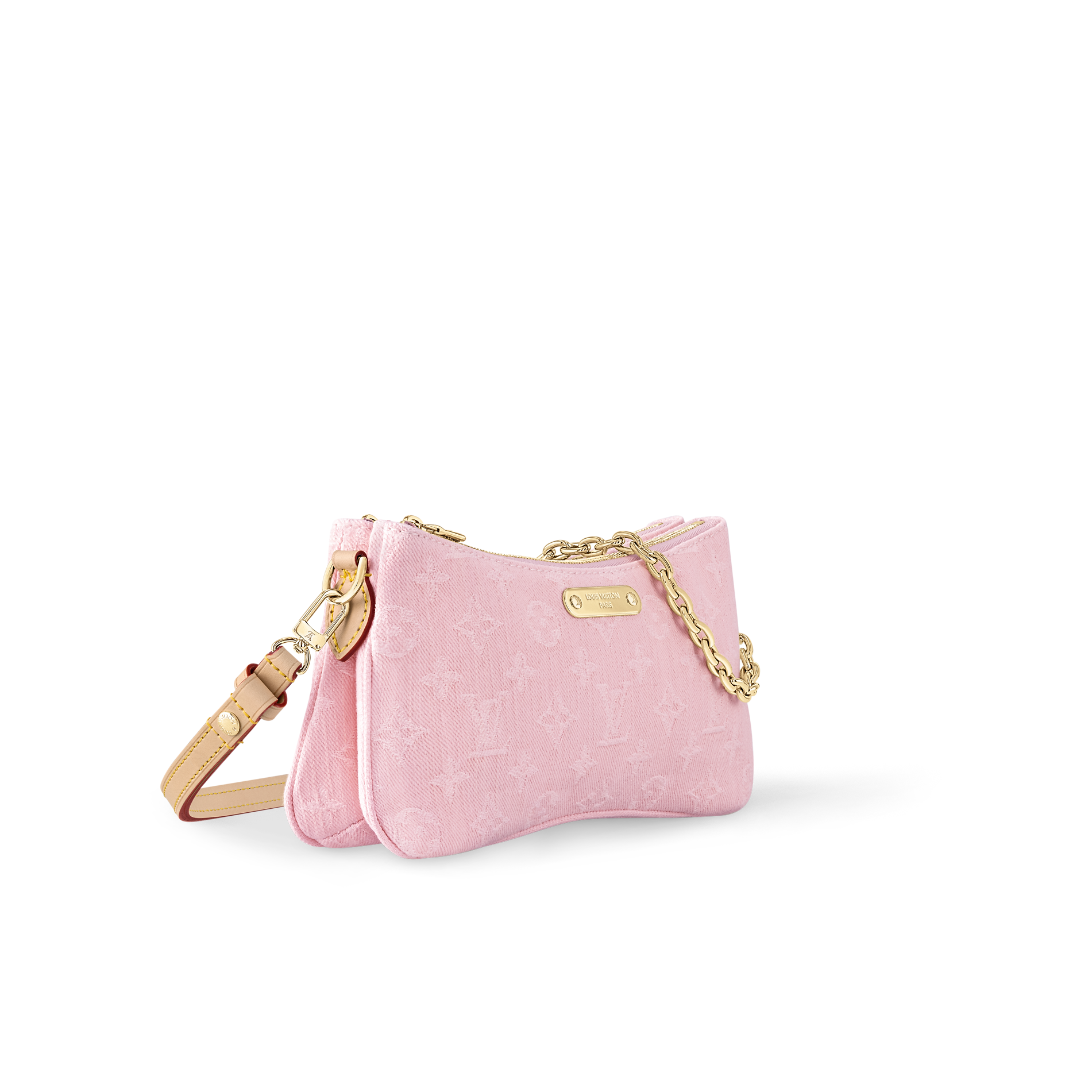 The Liv pochette is revisited in bleached and stonewashed Monogram denim for a vintage look and a summery feel. Designed to sit snugly under the arm, this small bag comes with a removable chain in gold-tone metal and a removable, adjustable strap in aged natural leather. It is signed with a Louis Vuitton-engraved plaque.