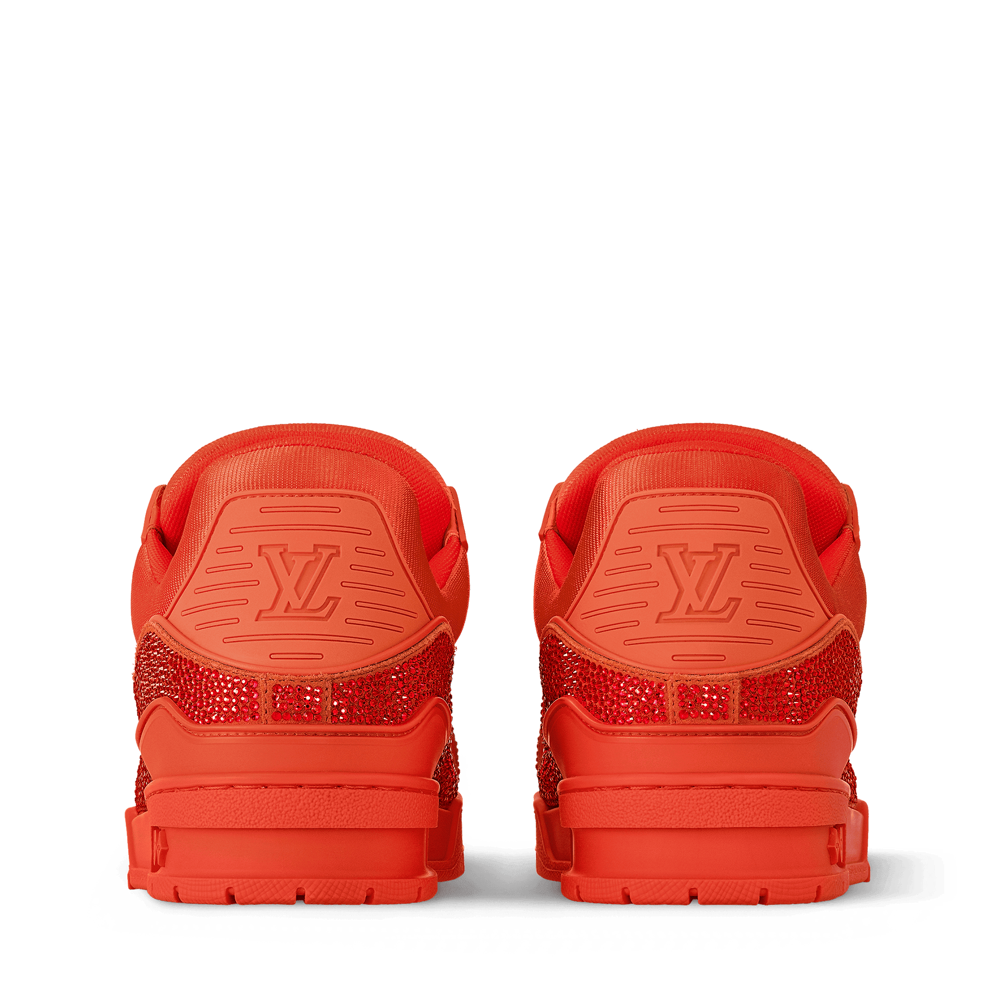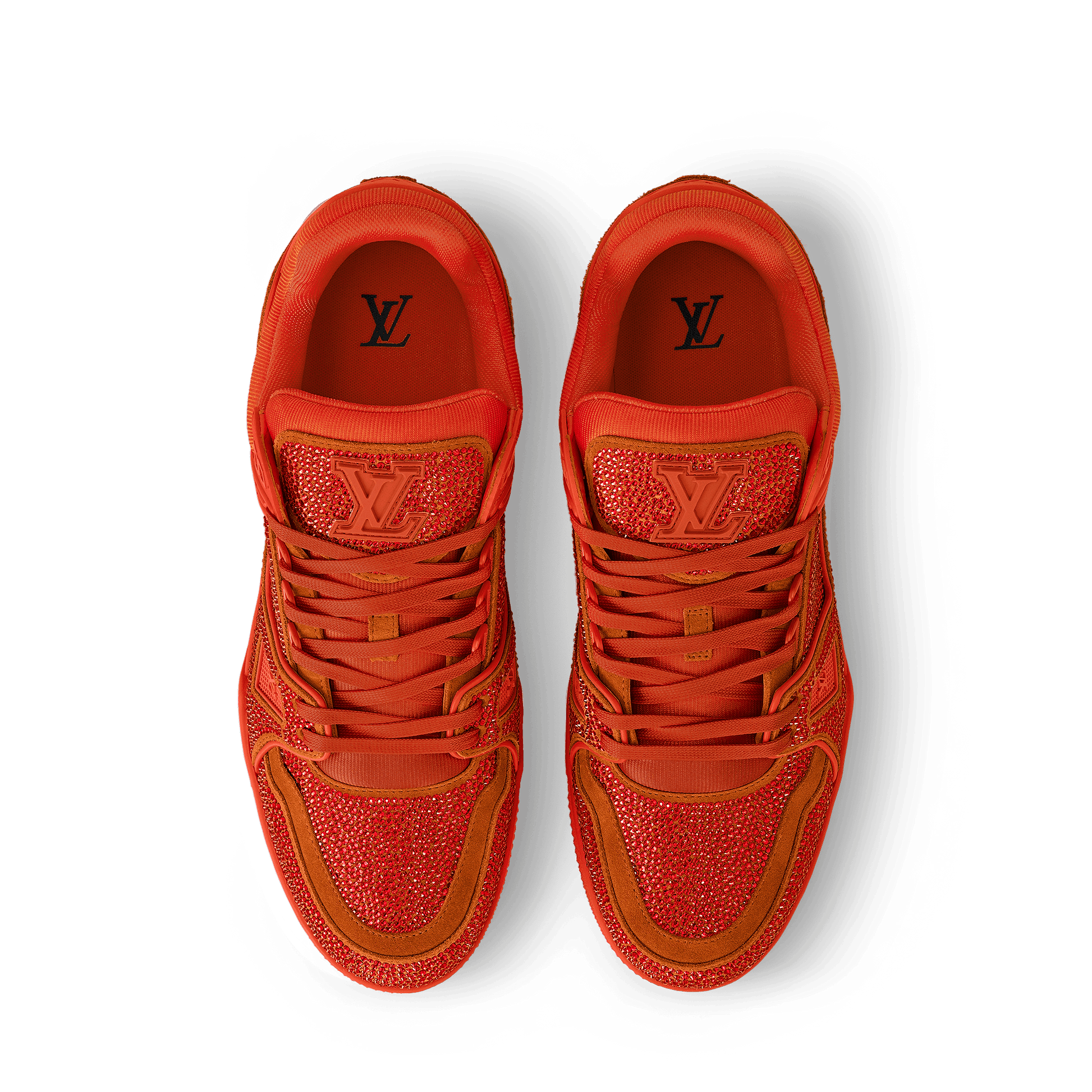 sneaker is covered in sparkling Swarovski™ crystals. An icon of the Louis Vuitton shoe collection, this model was originally designed by Virgil Abloh, who was inspired by vintage basketball sneakers. The design is complemented by rubber details, including the LV Initials and the Vuitton signature on the side.