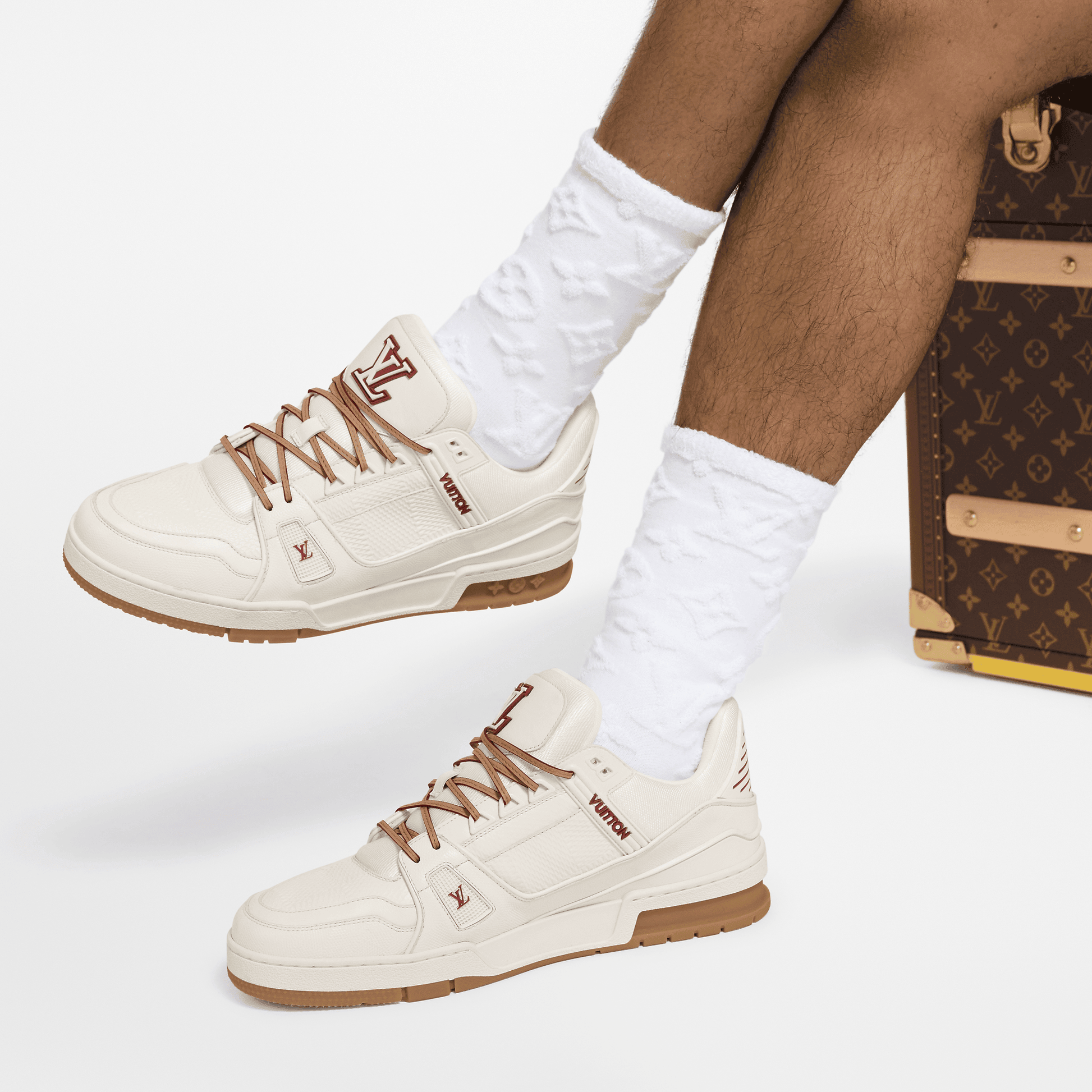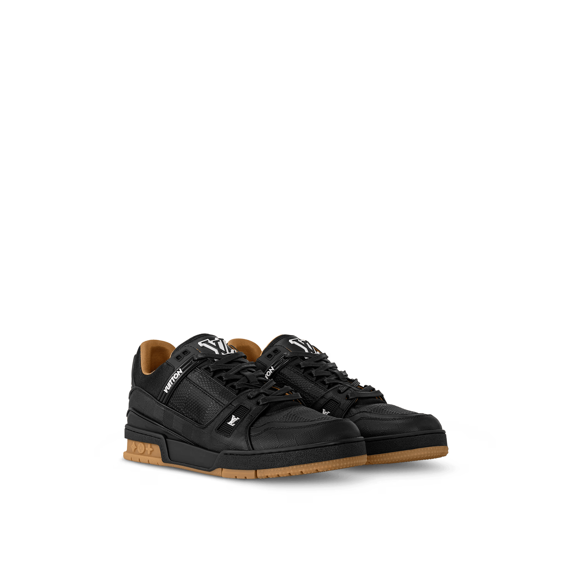 Phiên bản tinh tế này của giày thể thao LV Trainer mang tính biểu tượng được chế tác từ da bê mềm mại được in nổi họa tiết Damier lịch sử. Dây giày bằng da với đầu kim loại càng làm nổi bật mẫu giày này, đồng thời cũng có chữ viết tắt LV tương phản và chữ ký của Vuitton. Đế ngoài bằng cao su kỹ thuật được trang trí bằng ba bông hoa Monogram.