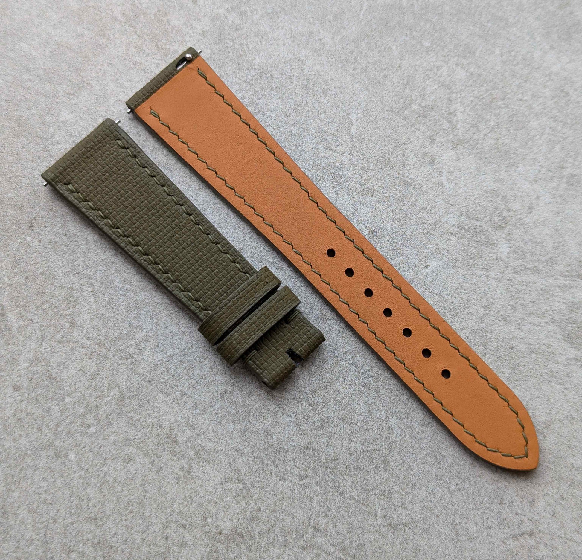 Why? Firstly the colour, I adore a military colour strap, they just sing to me. This leather was originally commissioned for a high end shoe maker but was never used...their loss our gain