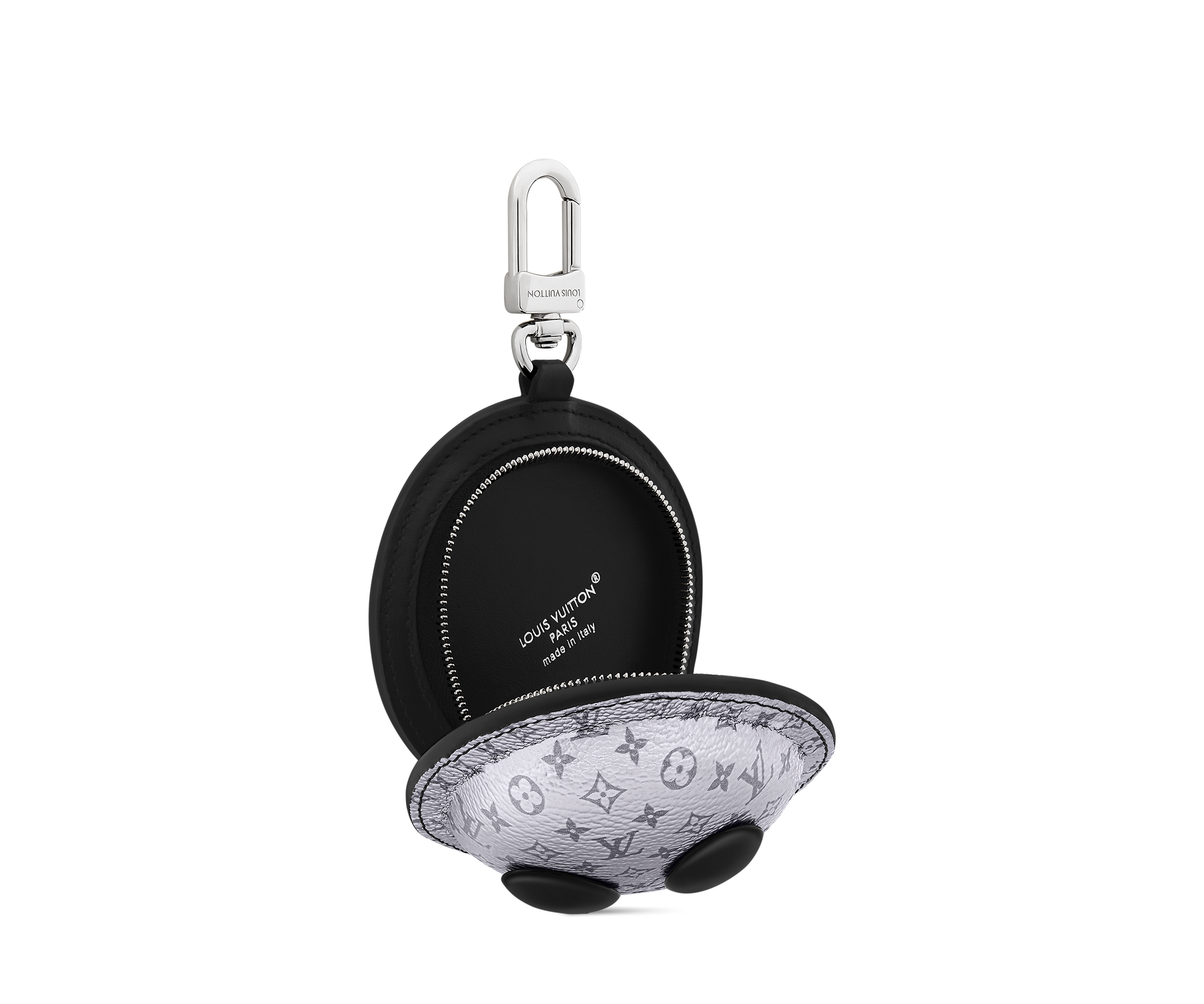Designed in the playful shape of an alien, this eye-catching bag charm is crafted from Monogram canvas with leather accents. Monogram Flower eyes and a gold-tone LV hook complete the look. A fun and collectible piece to personalize bags or keys.