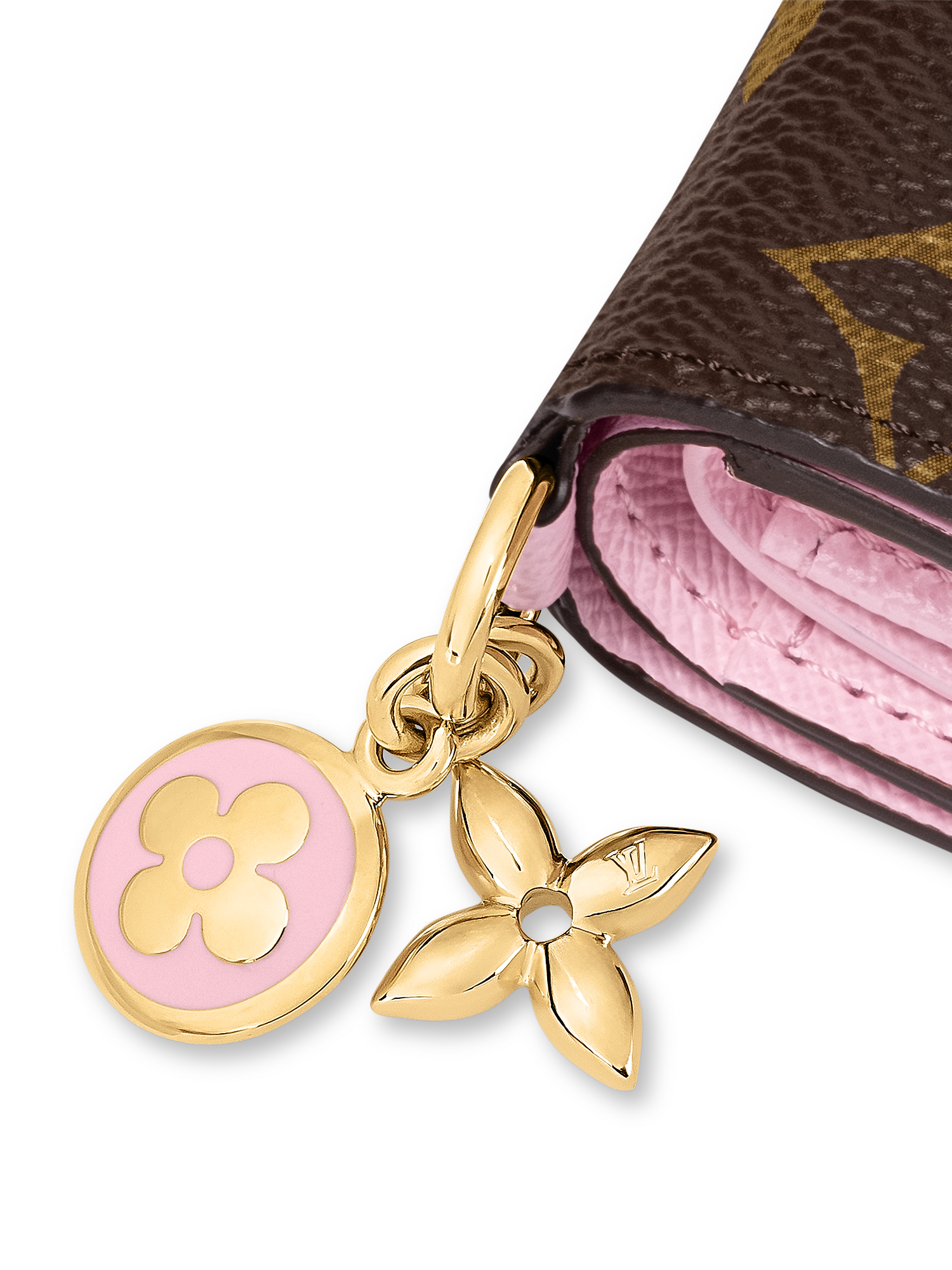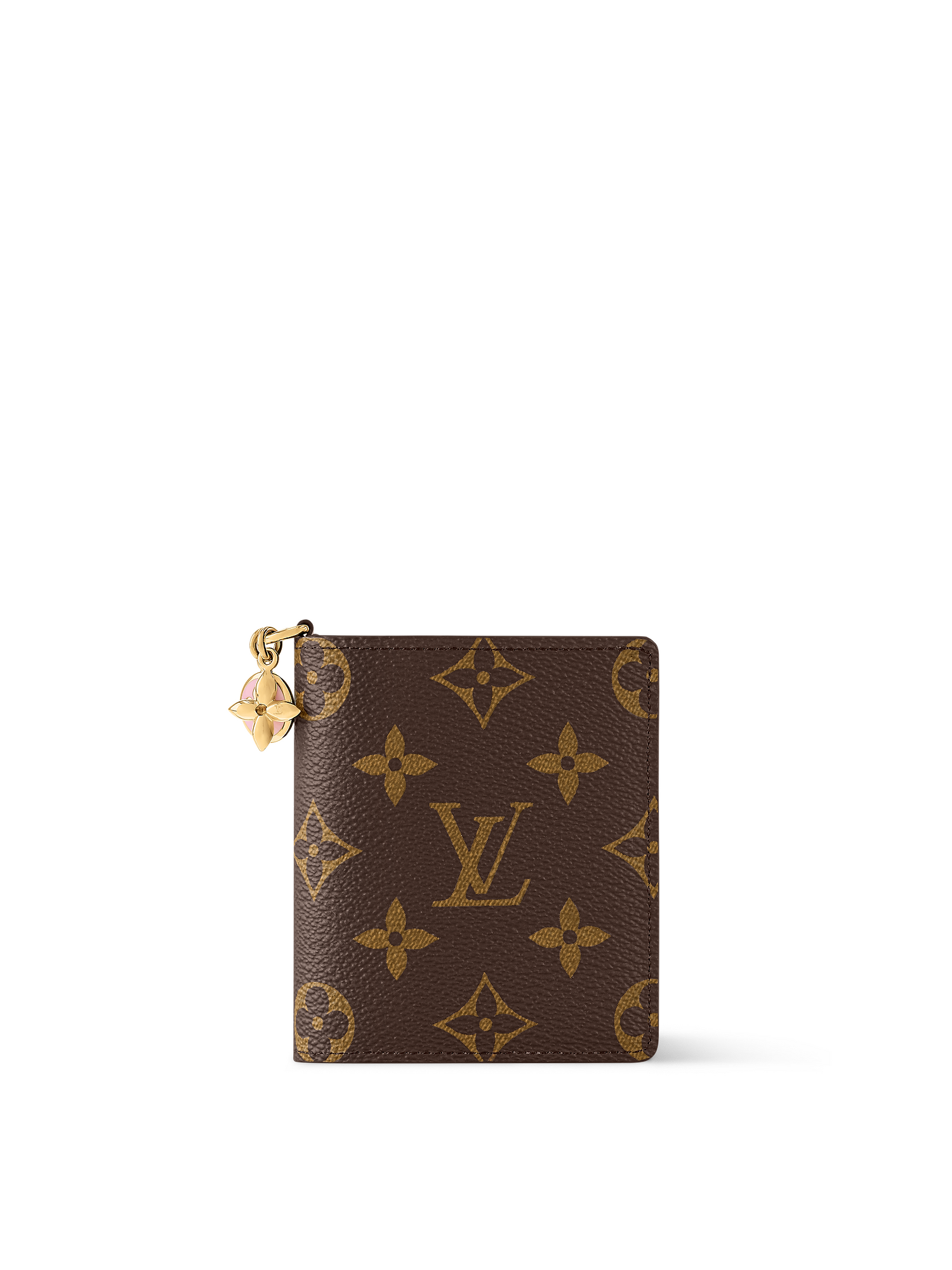 Introducing the LV Charms Pocket Wallet, a compact accessory that strikes the balance of classic and contemporary. Crafted from signature Monogram canvas, it opens to reveal a contrasting leather lining in a vibrant color palette. This functional yet playful design is adorned with one enameled and one metallic charm, both of which feature the House's iconic Monogram Flower. Use it to store bills, coins, and three cards.