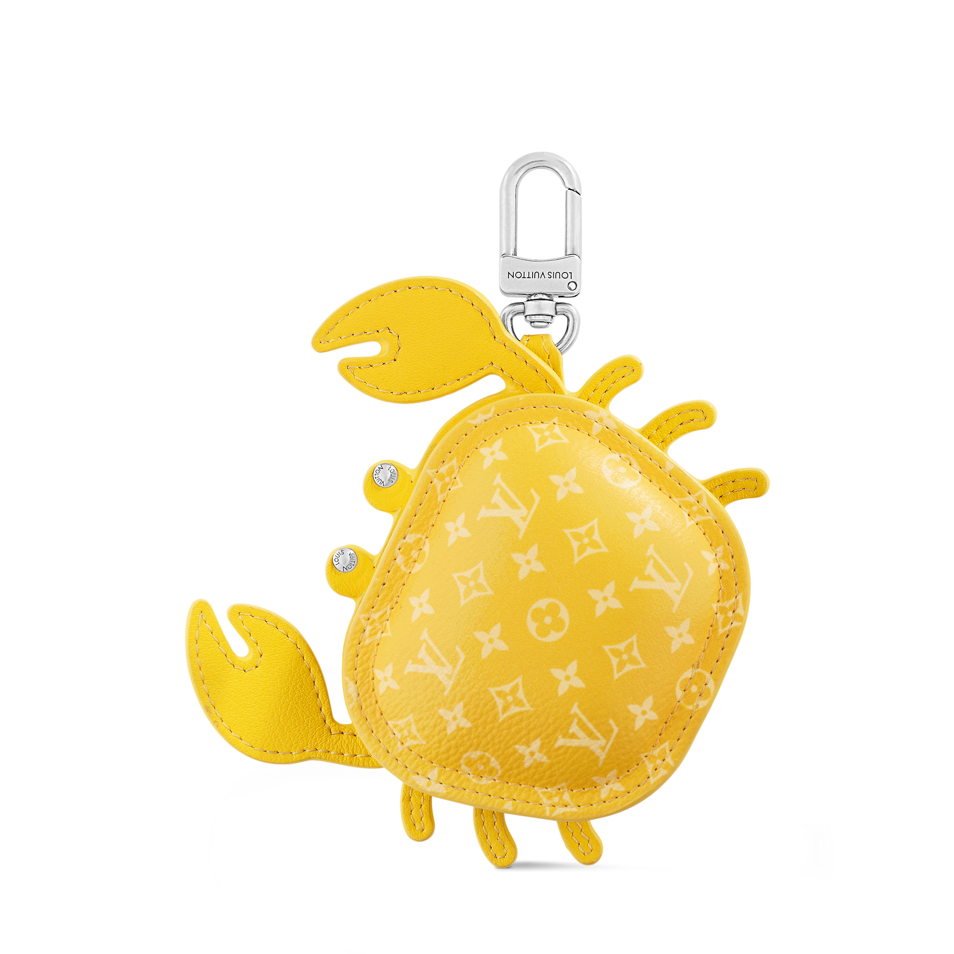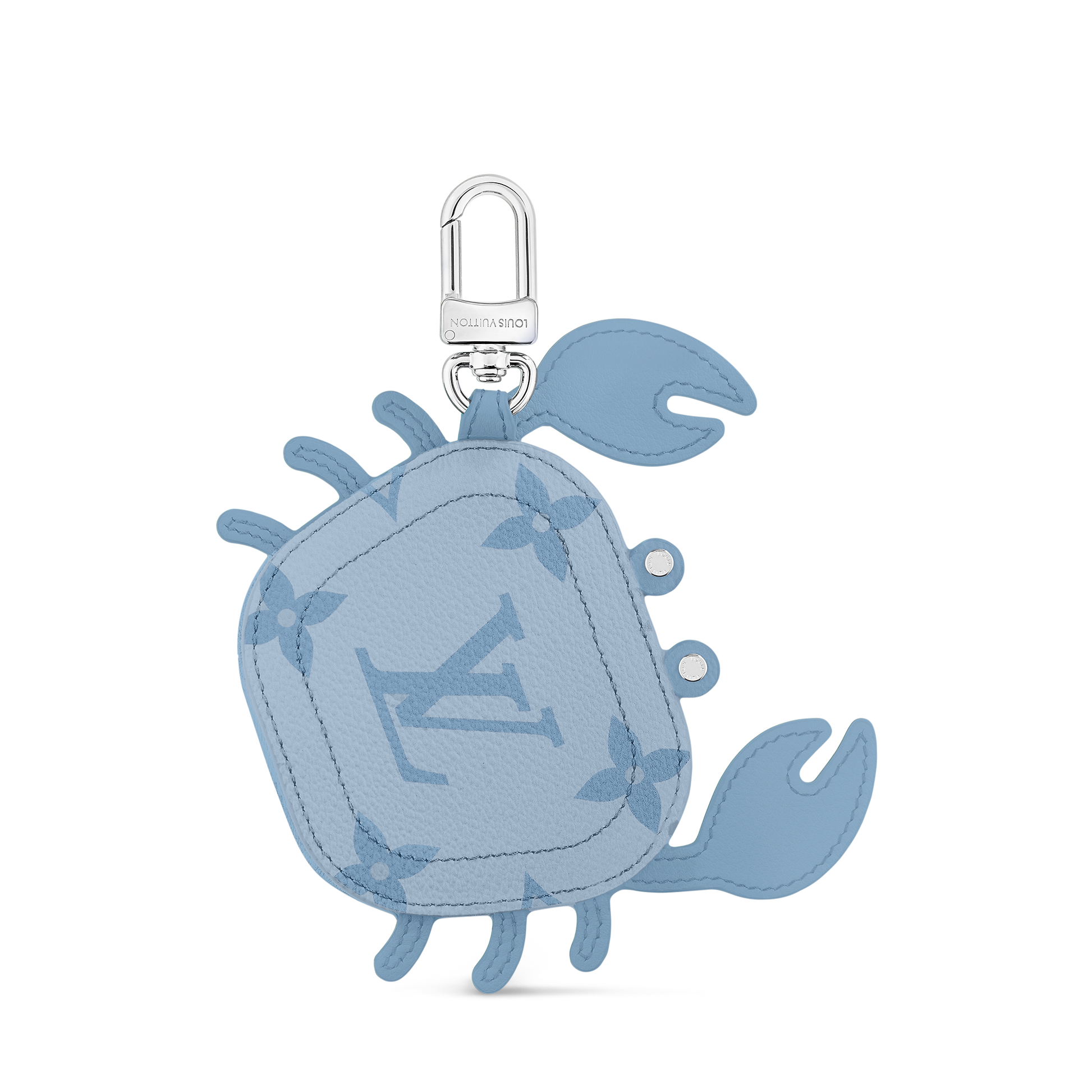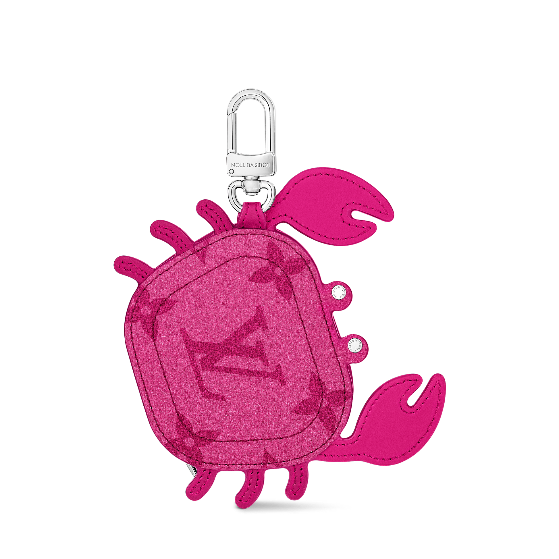The LV Crab bag charm is a delightful gift that also doubles as an earphones case. Covered in a lighter-toned Monogram canvas, the accessory features leather claws and silver-toned studded eyes. As functional as it is charming, it clasps on to any bag strap, belt loop, or keychain.