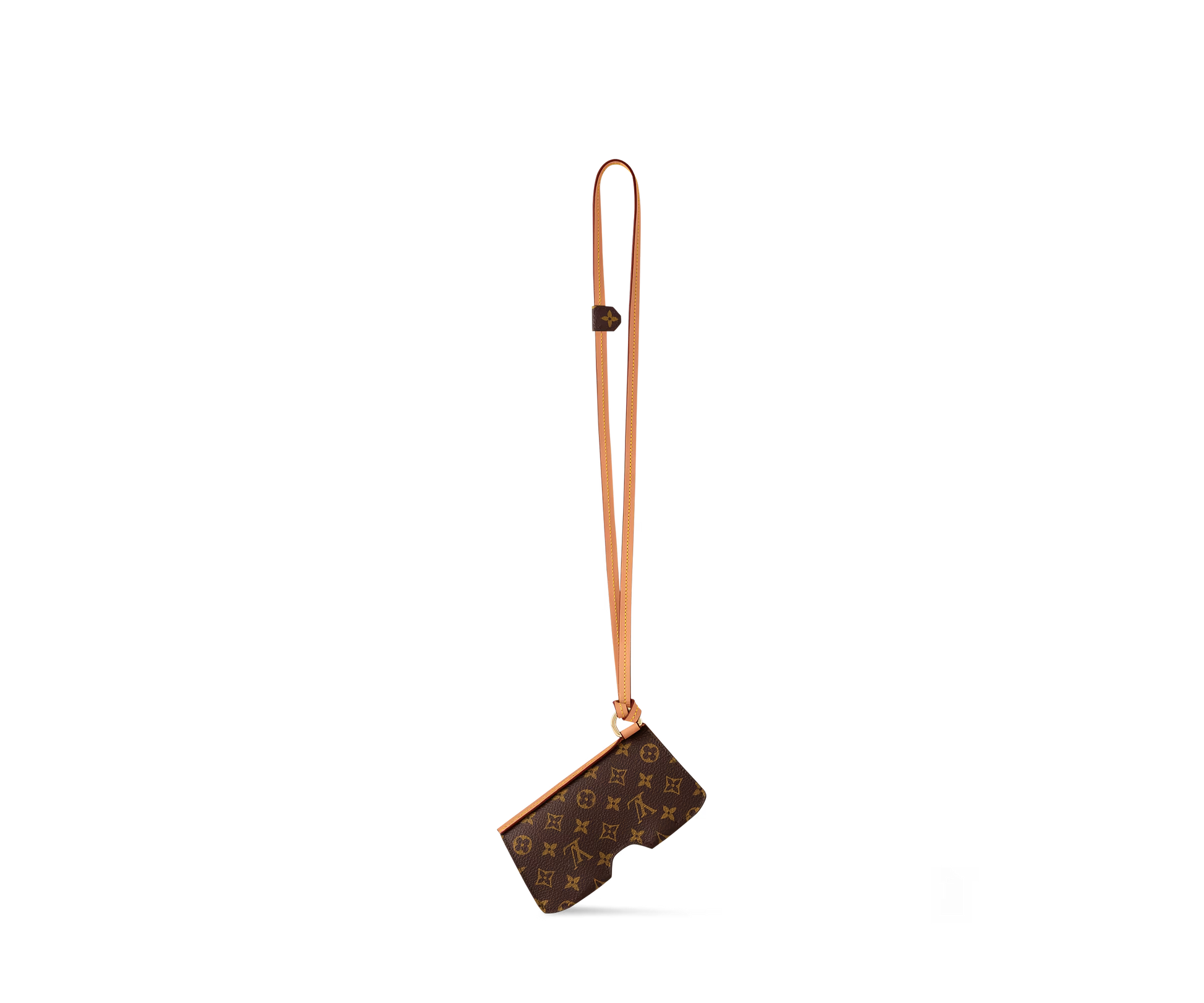 Crafted from Monogram canvas with leather detailing, the LV Glasses Holder offers a stylish and practical way to carry your eyewear. Featuring Monogram Flower eyes and a secure zip closure, it attaches easily to bags with a gold-tone LV-engraved hook.