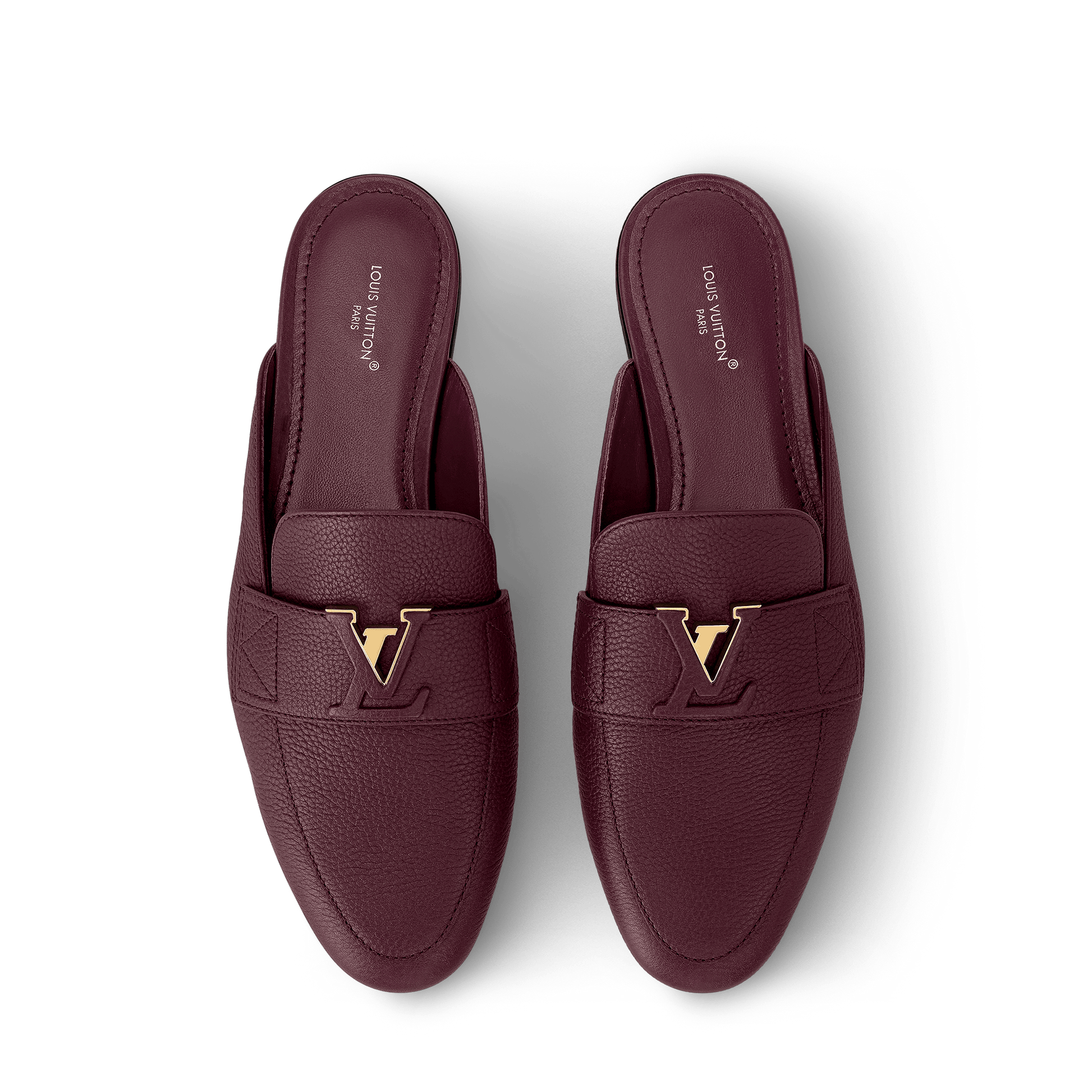 With its easy, slip-on fitting, the LV Mare open-back loafer brings a fashionable twist to a timeless style. It is crafted from supple, grained calf leather and signed with a partially leather-covered LV Initials accessory, inspired by the emblematic Capucines bag. A fine leather outsole completes this refined design.