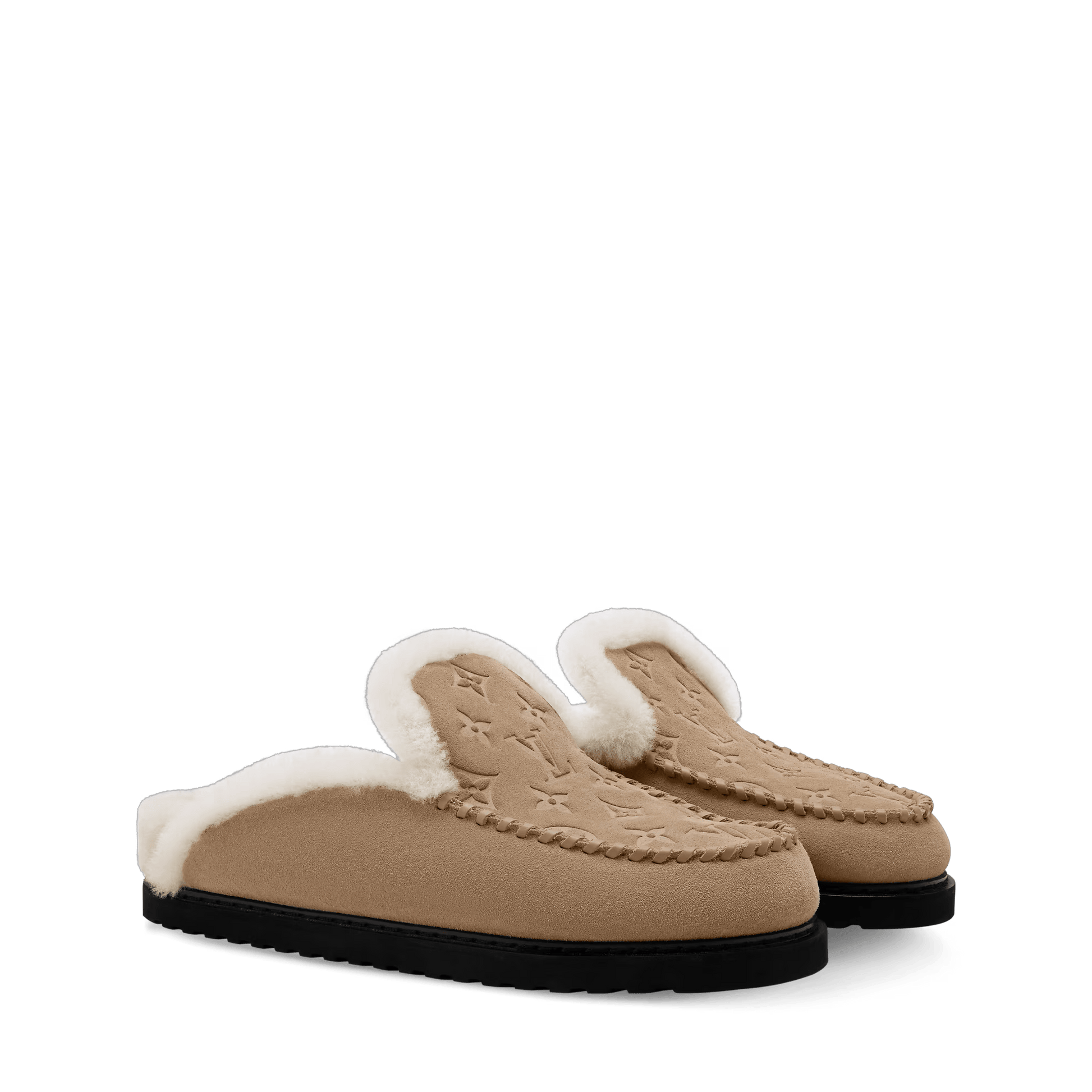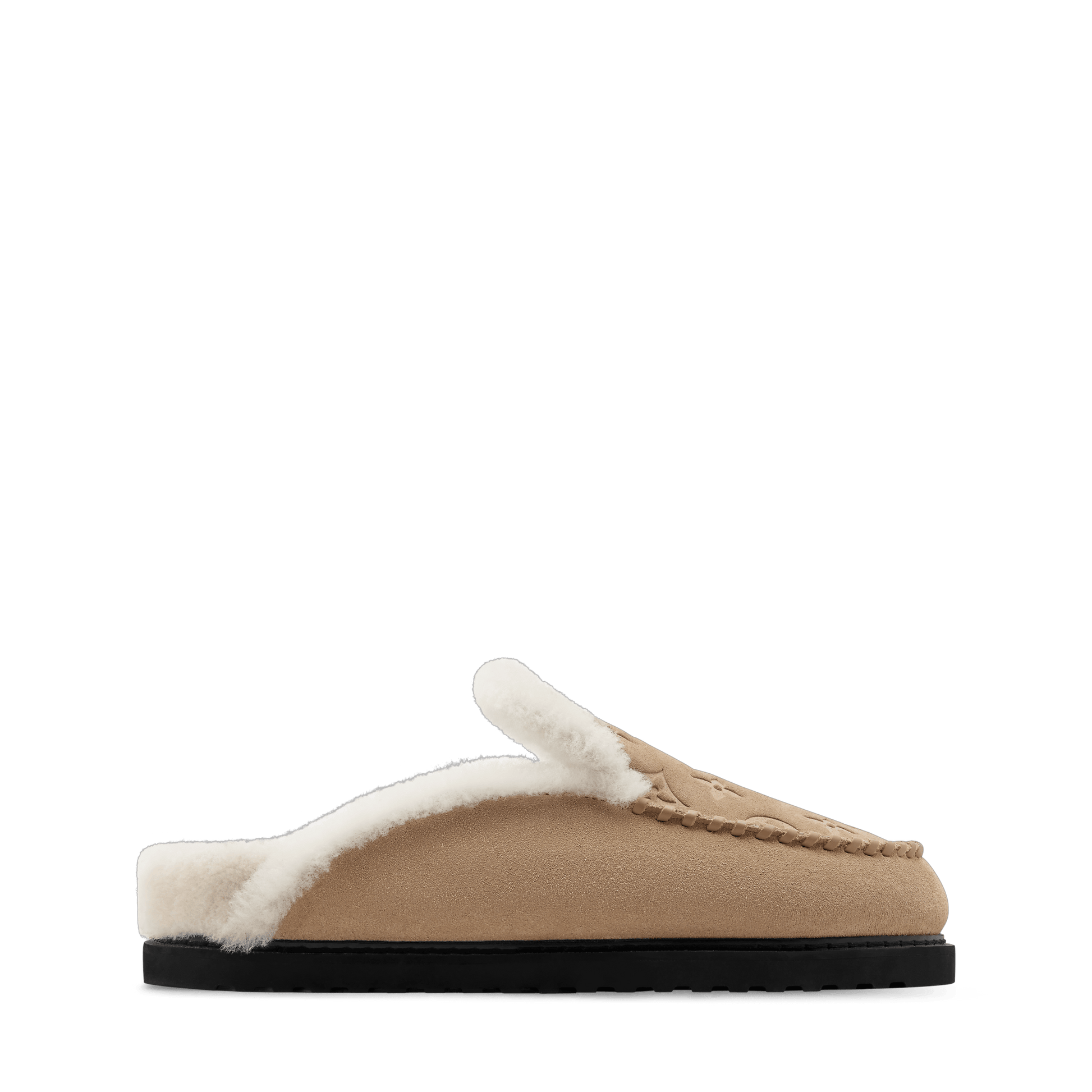 The Colorado closed mule comes in velvety suede calf leather with a warm and fluffy shearling lining. Key details of this model, which belongs to the LV Ski capsule, are the artisanal stitching and embossed Monogram pattern on the vamp. This effortless, slip-on style is finished with a rubber outsole.