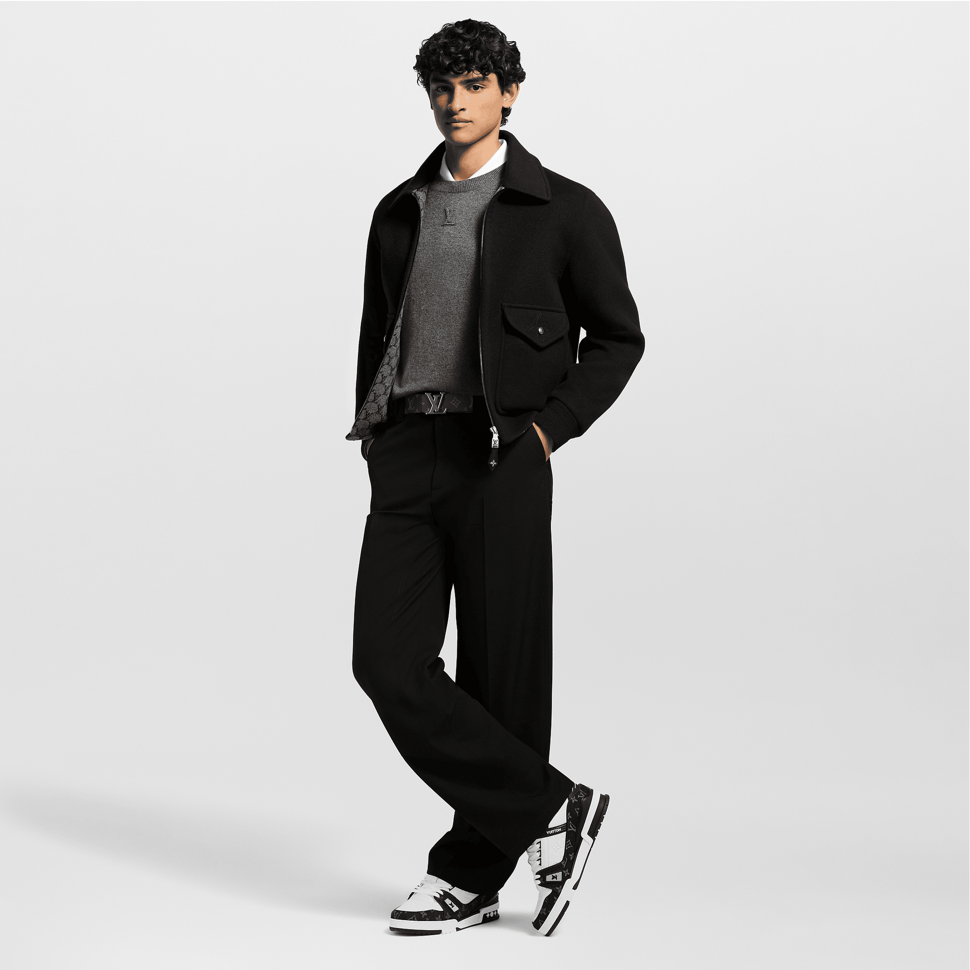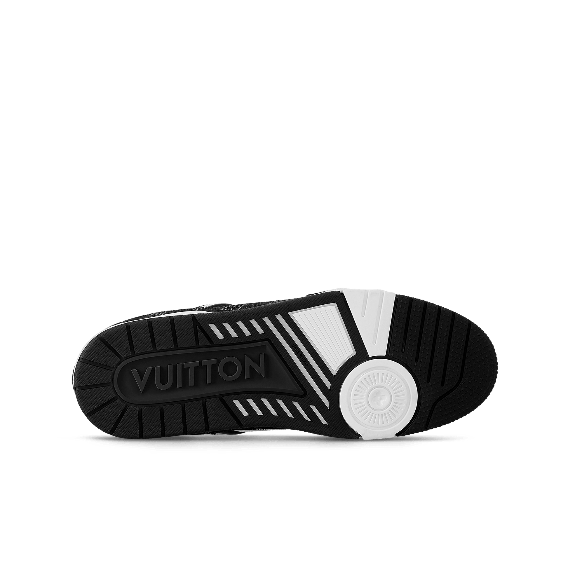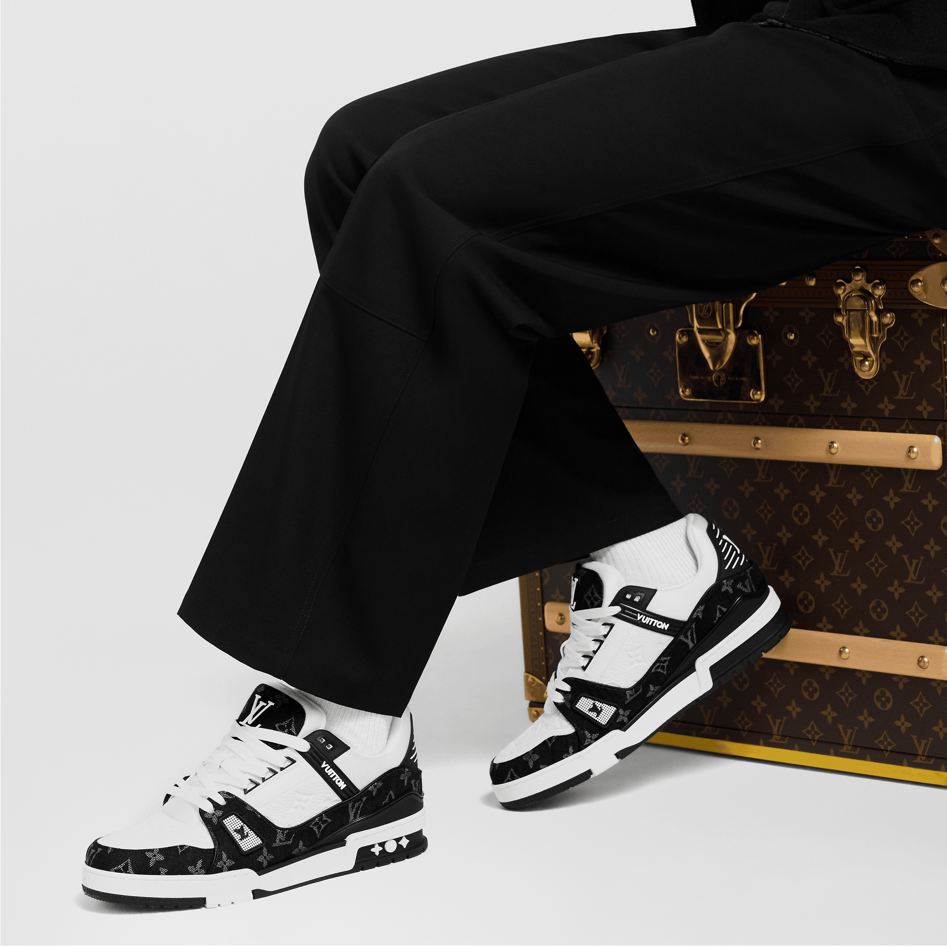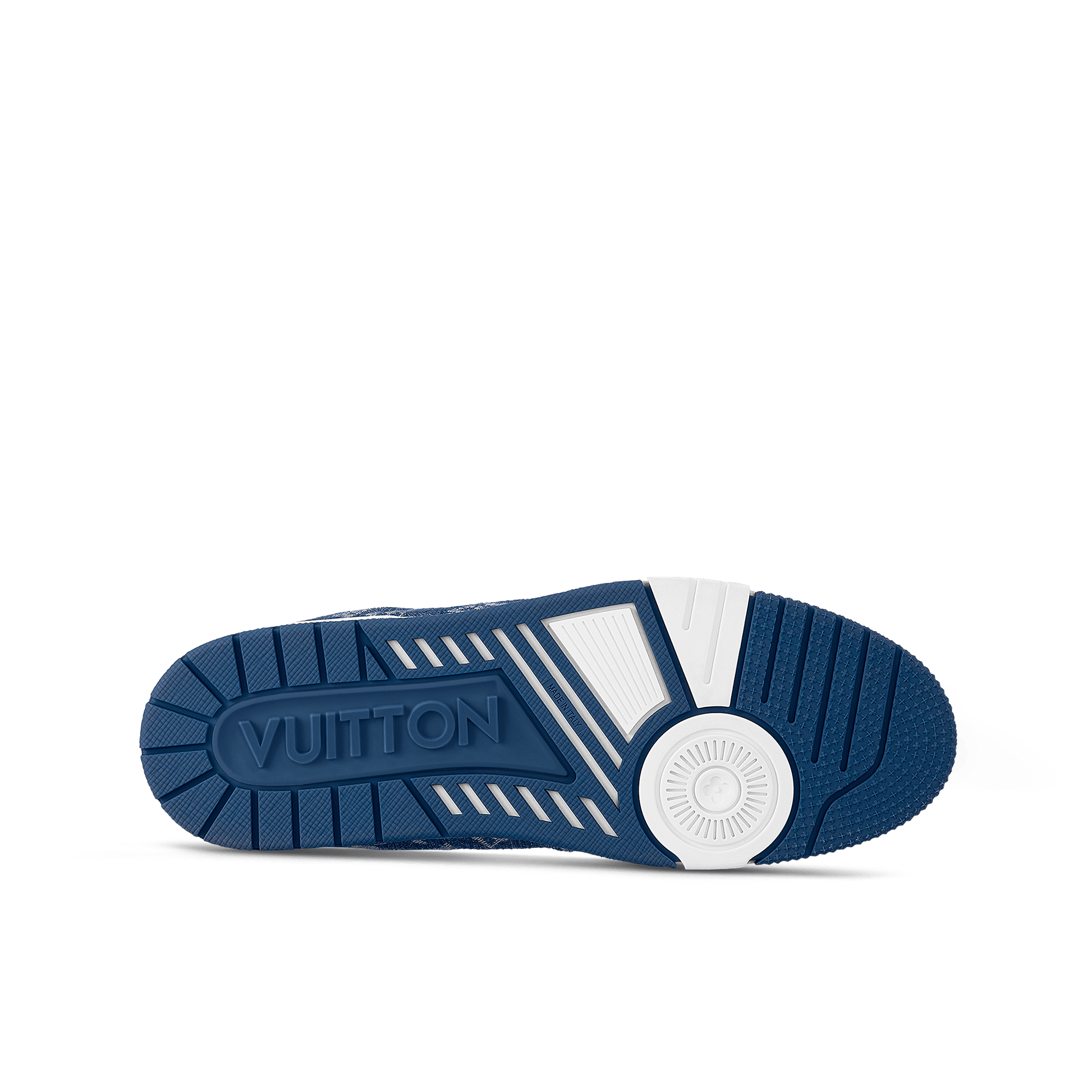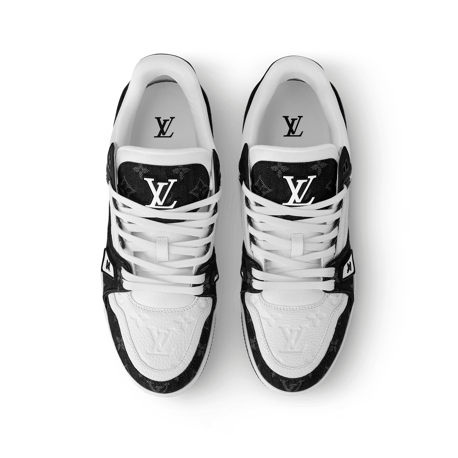 Designed by Louis Vuitton Artistic Director Virgil Abloh, the iconic LV Trainer sneaker is revisited this season in Monogram denim and Monogram-embossed grained calf leather. The contrasting colors and materials highlight the elaborate construction of this model, which was inspired by vintage basketball sneakers.