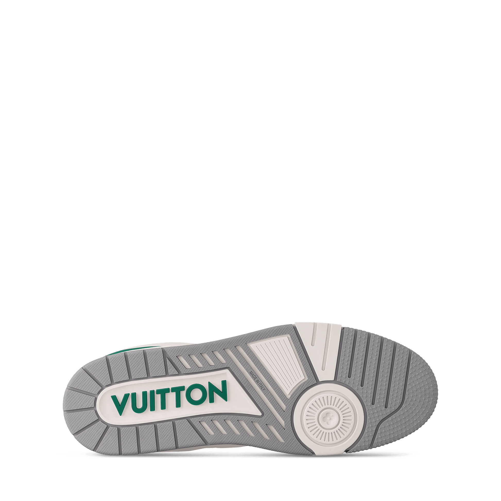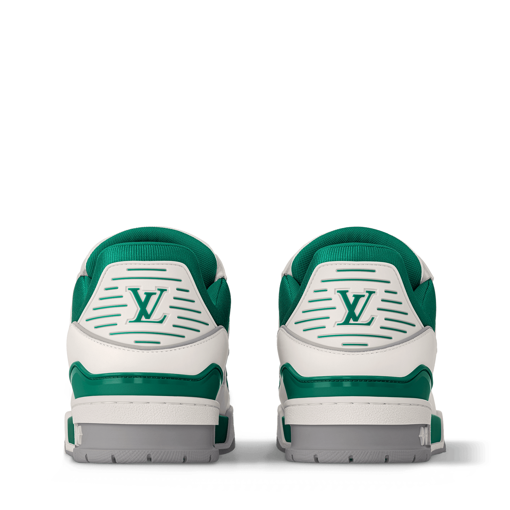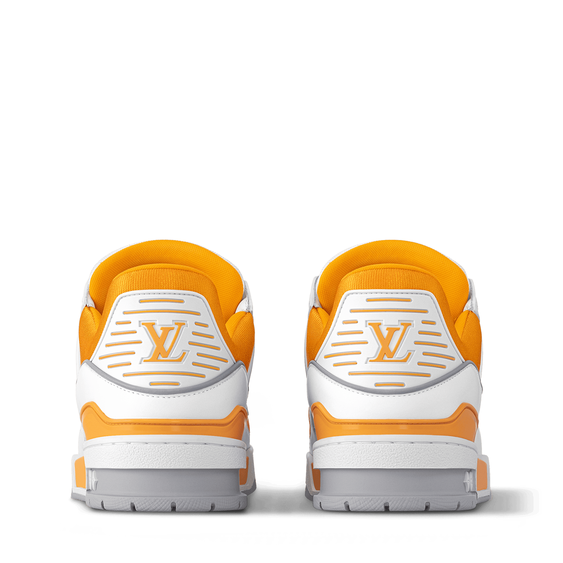 This colorful edition of the LV Trainer Sneaker in grained calf leather is part of the LV Colormania capsule collection. The vibrant palette highlights this model's elaborately constructed upper, which references vintage basketball sneakers. This cult design is complemented by rubber signatures, including the LV Initials on the upper and Monogram Flowers on the outsole.