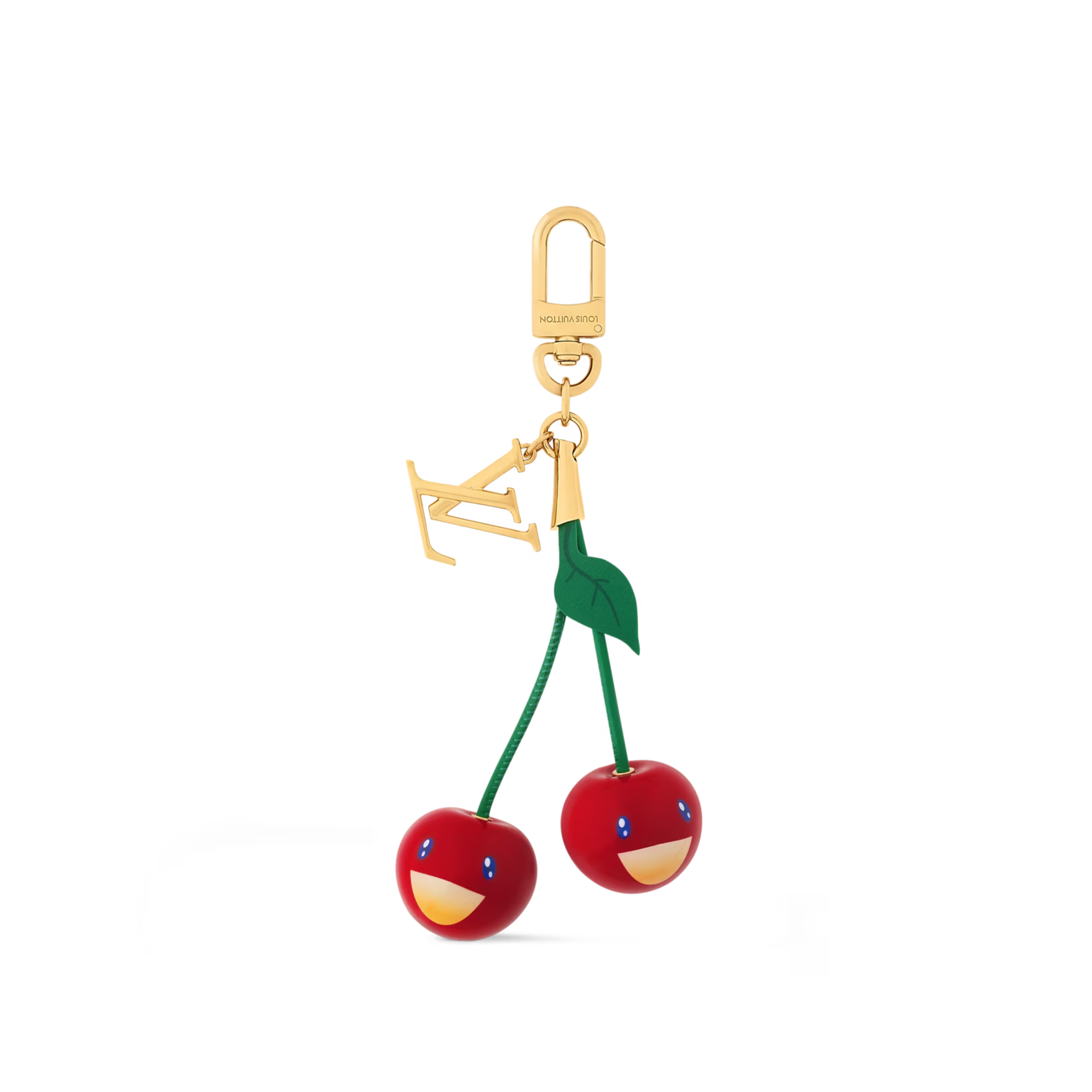 This playful bag charm features a cherry design inspired by Louis Vuitton's archives, reimagined in collaboration with Japanese artist Takashi Murakami. Detailed with Monogram Flower eyes and a gold-tone snap hook, it's a joyful finishing touch to any bag.