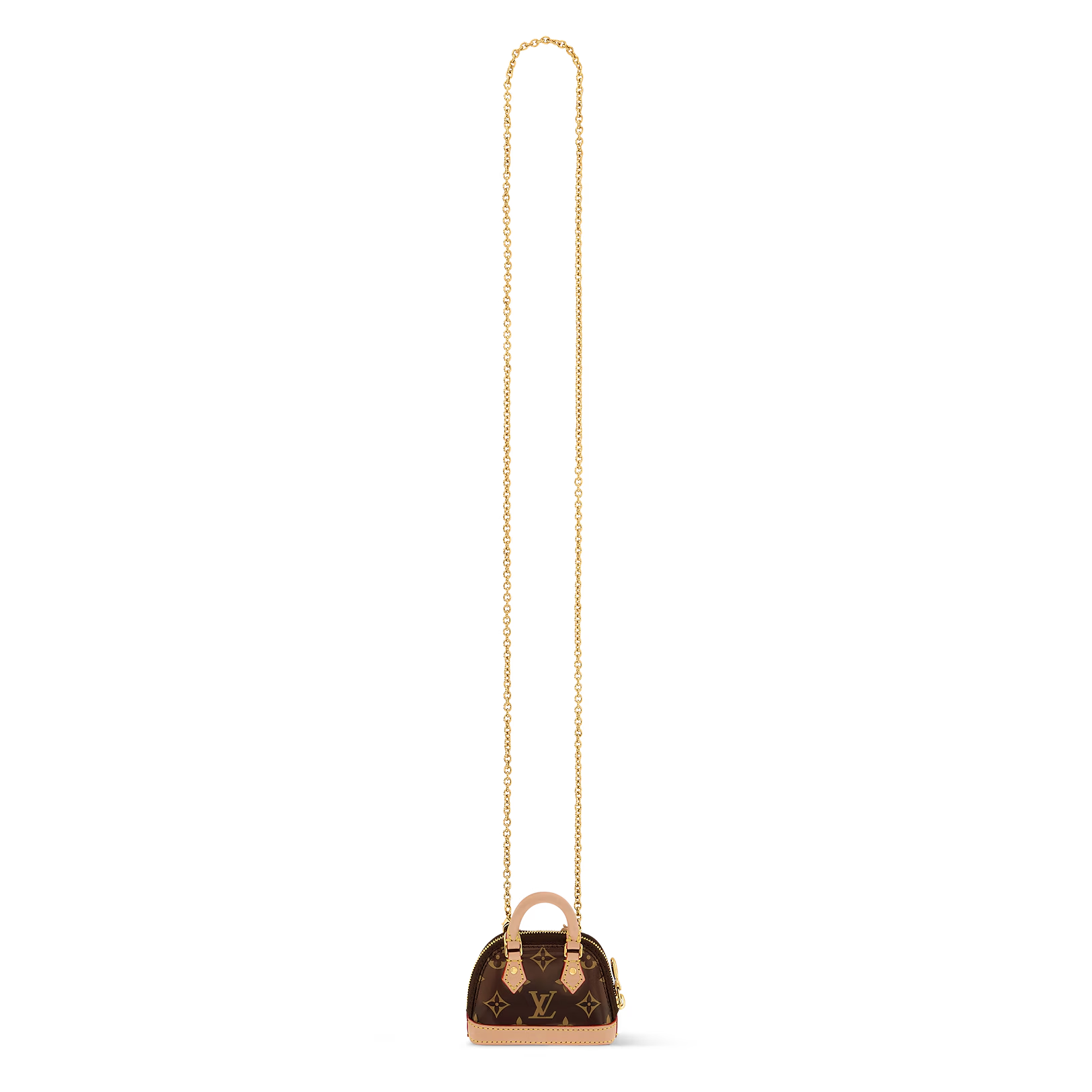 Modeled after a classic Louis Vuitton handbag, the enchanting Micro Alma bag charm reinterprets the iconic bag in a vintage yet playful spirit. With its fine-linked chain and snap hook, it can be worn on a bag handle or cross-body as an on-trend mini. A fun, functional accessory, perfect for carrying earbuds or other small items.