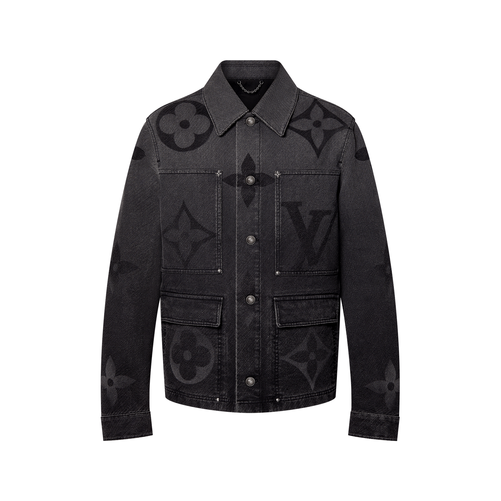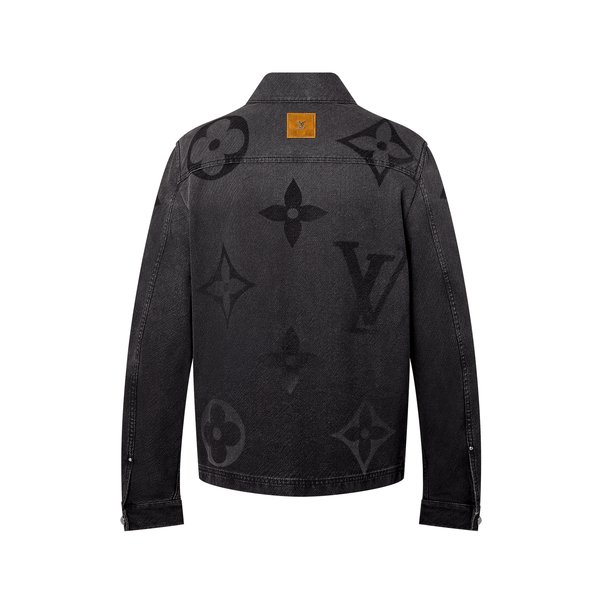 This washed black denim blouson showcases the House’s savoir-faire with a workwear-inspired silhouette that sets off this collection’s layered signatures. The denim is woven in a diagonal Epi jacquard, which is overprinted with a graphic Monogram Macro motif in a dark-to-light gradient effect. Monogram Flower rivets further embellish this sophisticated piece, which has matching pants.