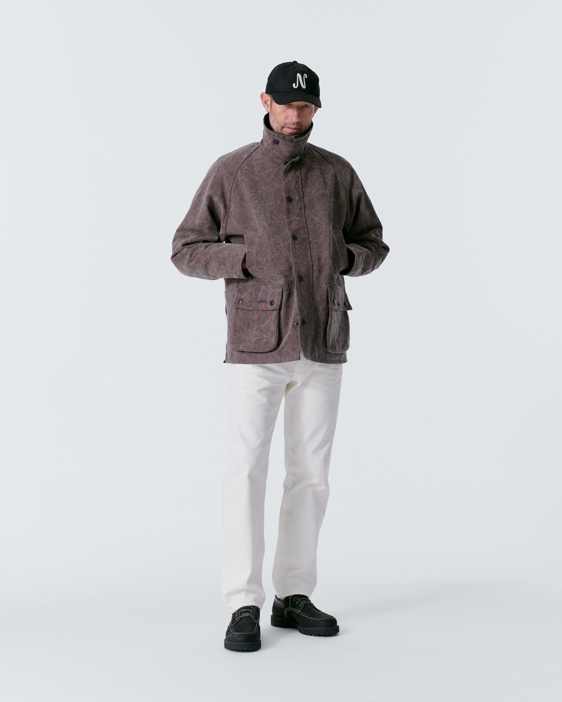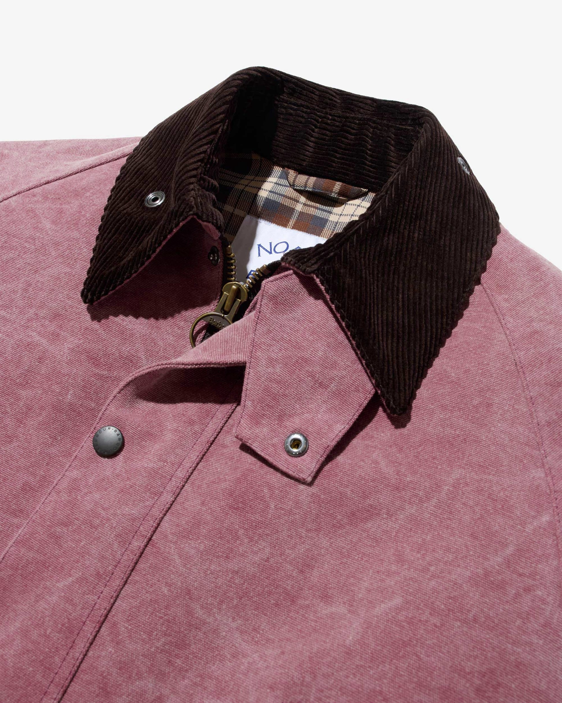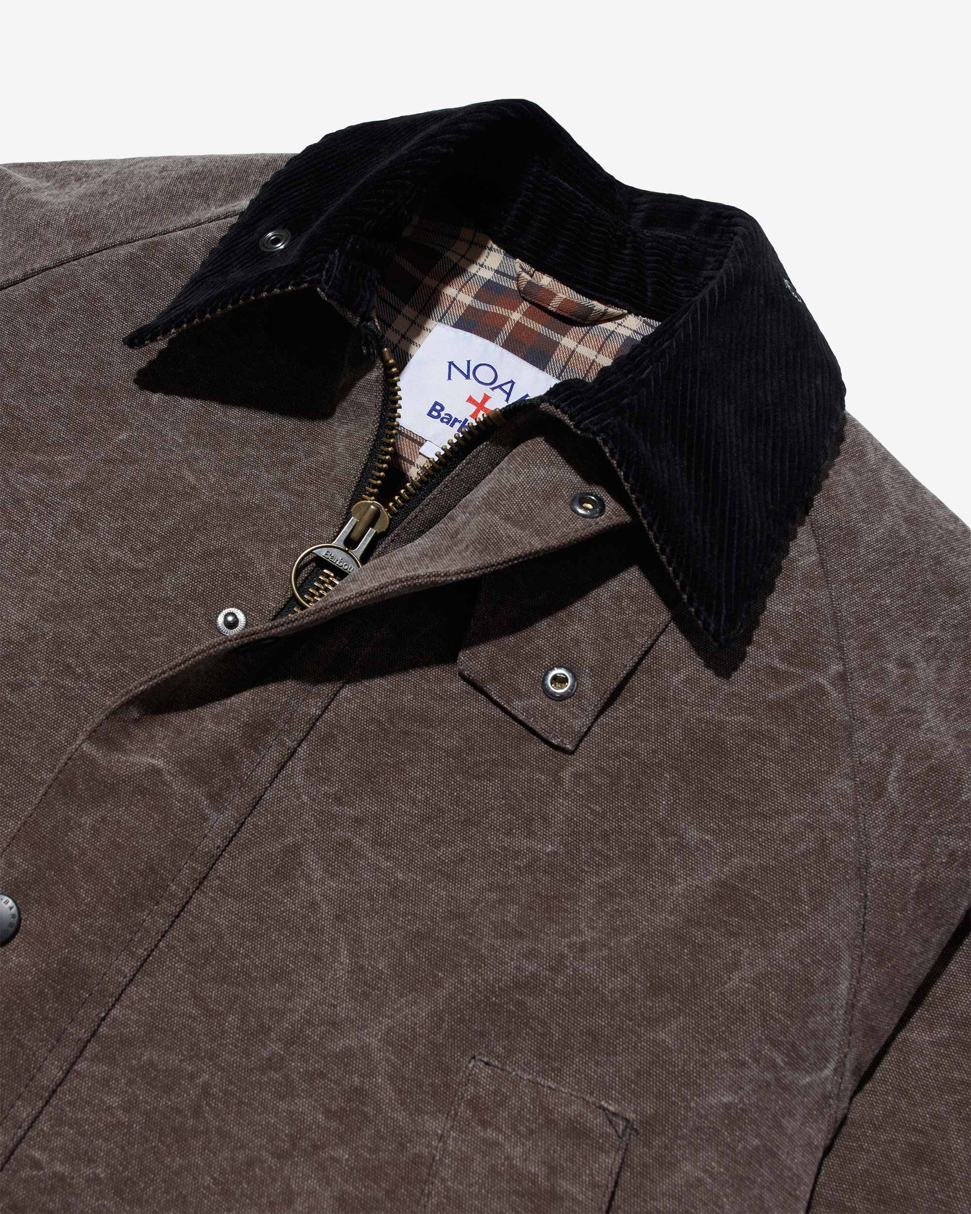 Made exclusively for Noah by Barbour. 100% Cotton shell. Cotton tartan lining and corduroy collar. Appearance may vary due to dying process. Heavy-duty two-way metal zip. Snap storm flap and storm collar. Rib knit storm cuffs. Bellowed front pockets with snap flaps, drain vents. Moleskin-lined handwarmer storm pockets at waist. Double-vented back with snap closures. Interior pocket with velcro closure. Embroidered logos on back lining and front pocket flaps. Neil is 6'1 and wearing size M. Cushla is 5'11 and wearing size M