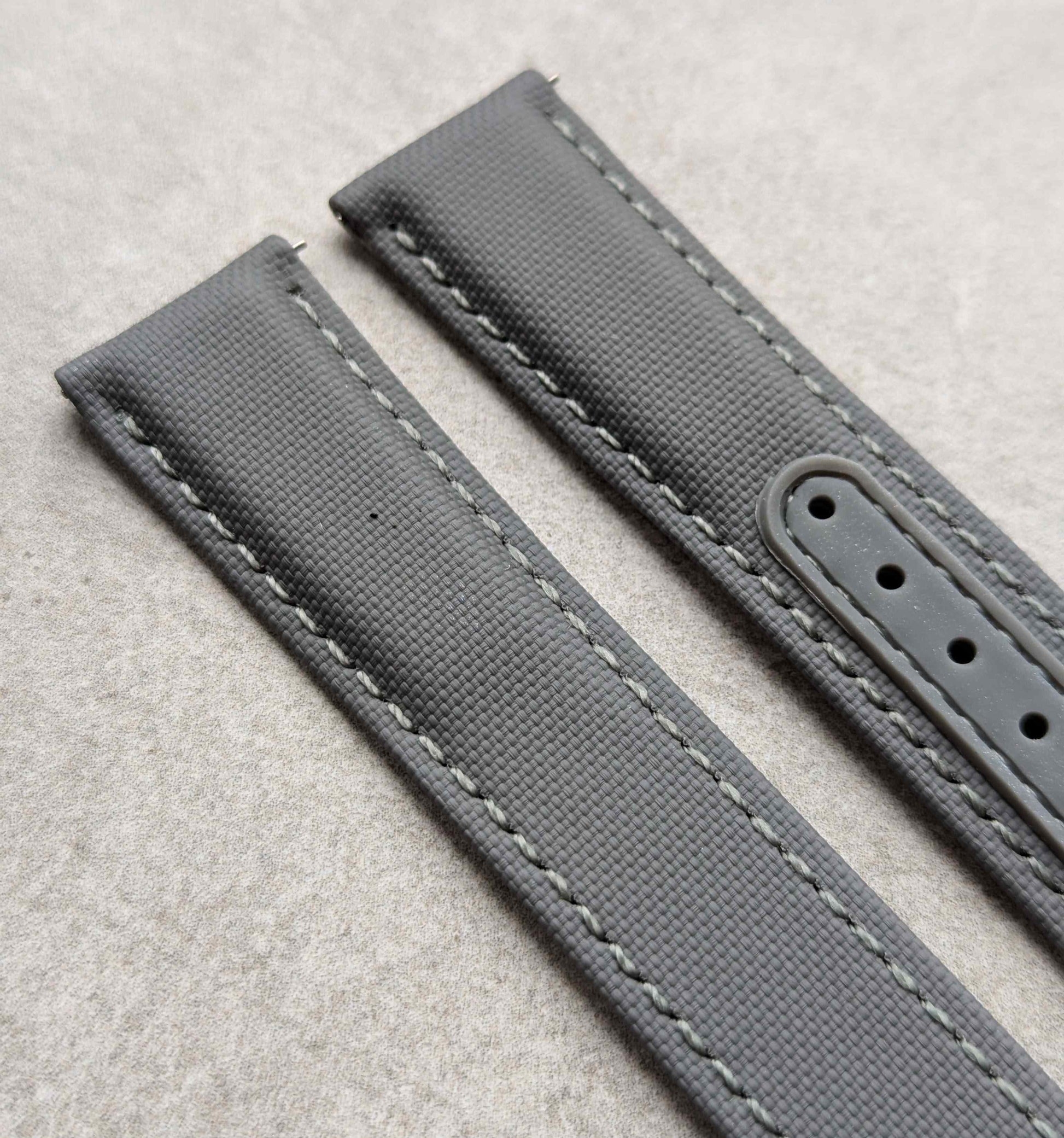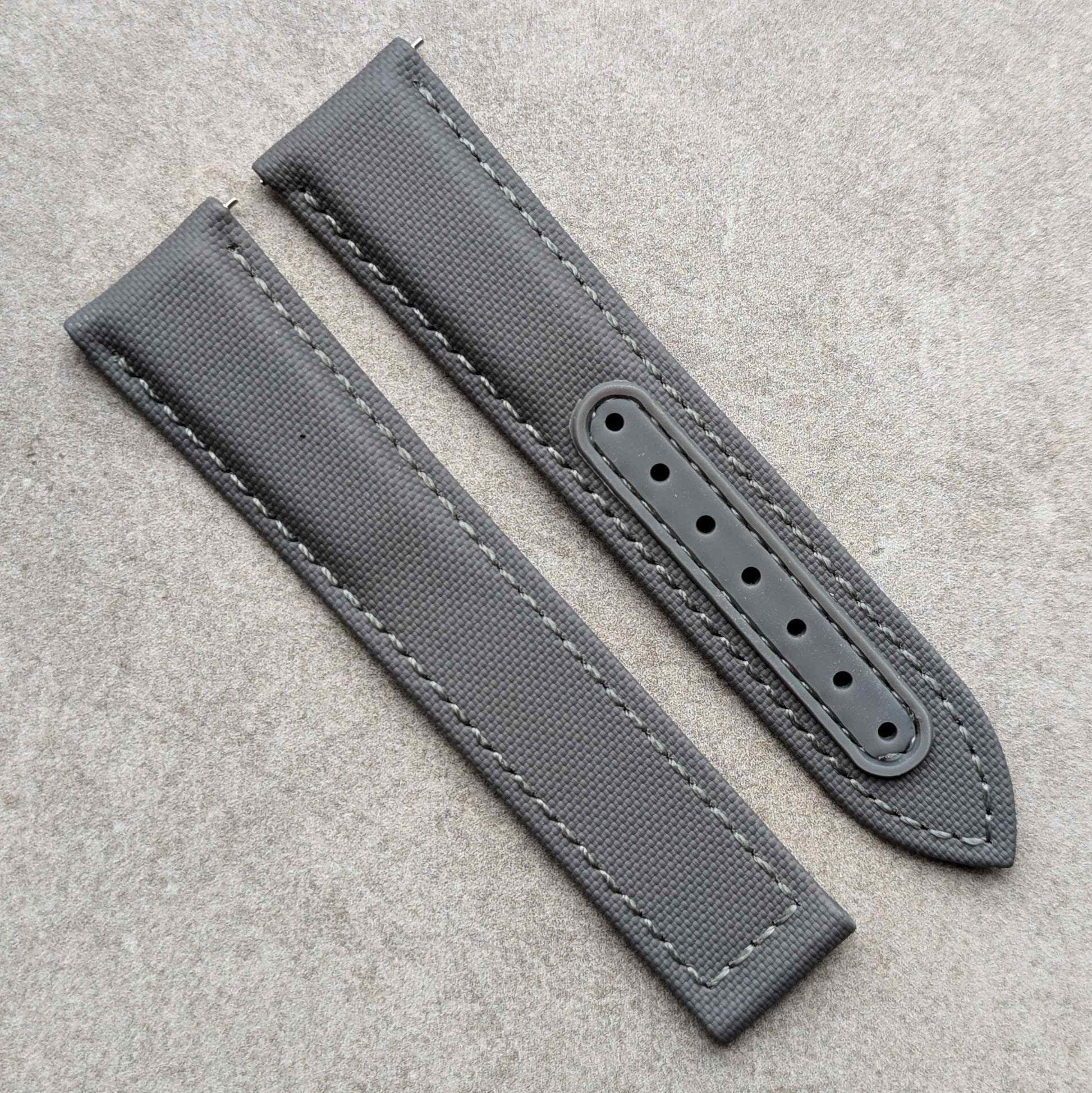 Omega-Style Deployant Sailcloth Watch Strap - Grey