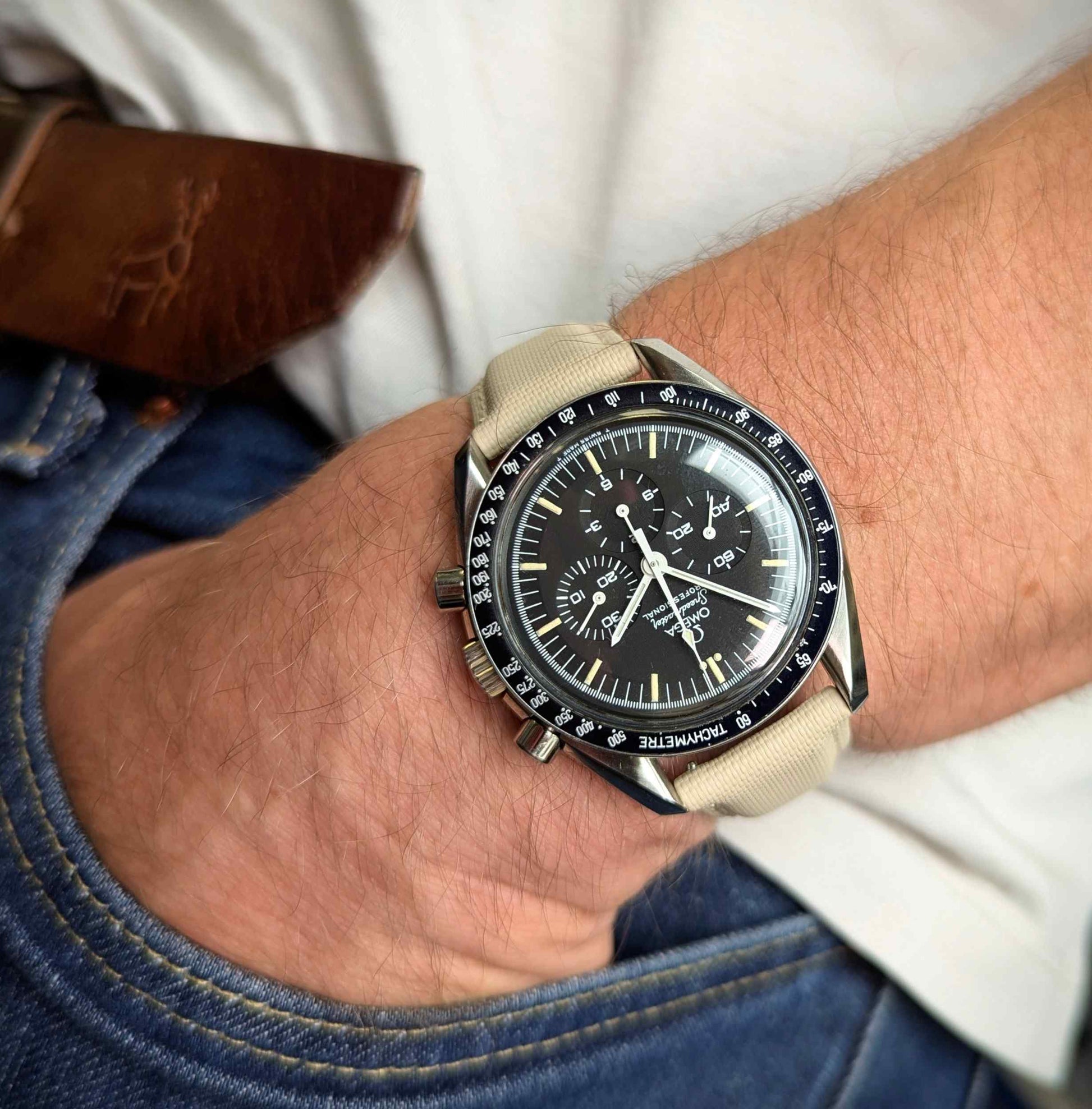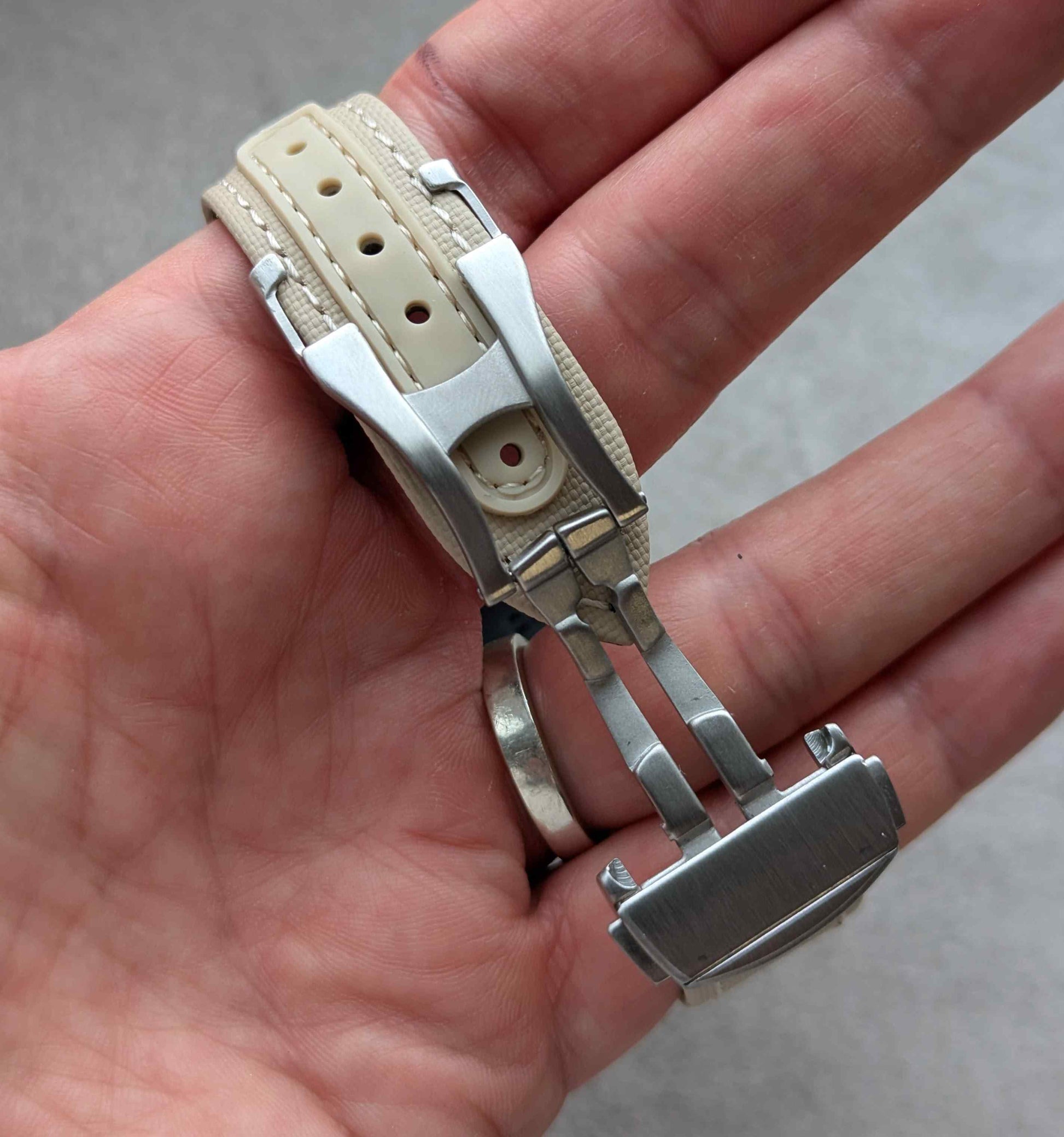 Omega-Style Deployant Sailcloth Watch Strap - Sandstone