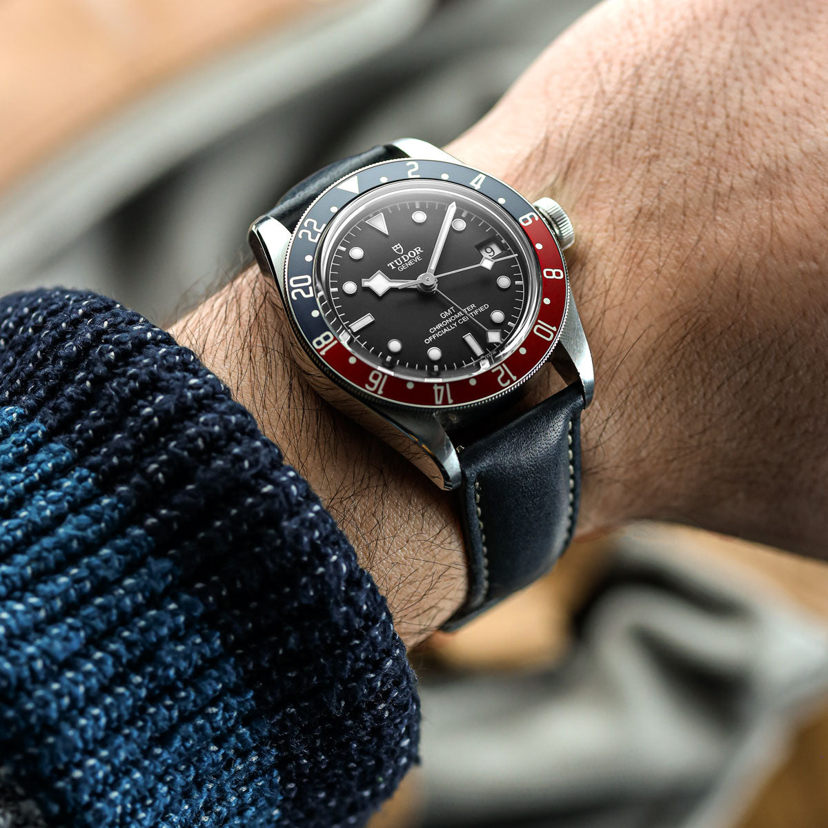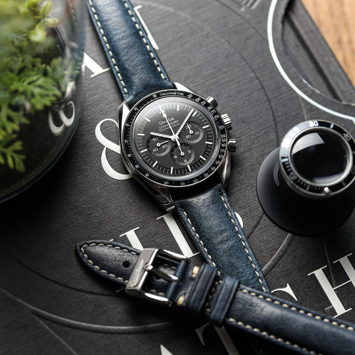 This is a generous strap in every way. It’s thickly padded (6mm thick at the lug end) and made from the very best Italian vegetable-tanned, full-grain leather. The supple pull-up leather is oiled and will age with grace, picking up patina as it’s worn.