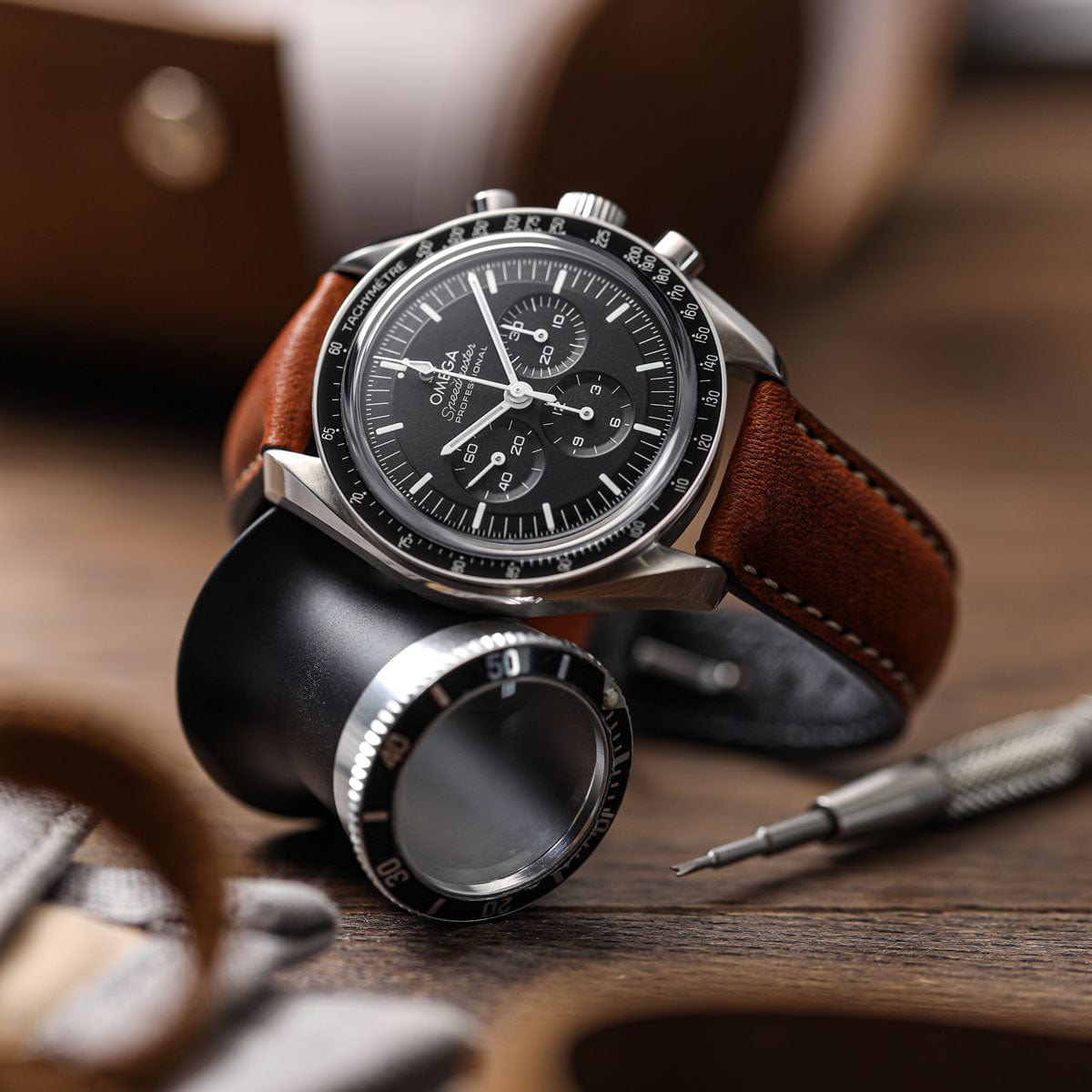 This is a generous strap in every way. It’s thickly padded (6mm thick at the lug end) and made from the very best Italian vegetable-tanned, full-grain leather. The supple pull-up leather is oiled and will age with grace, picking up patina as it’s worn.