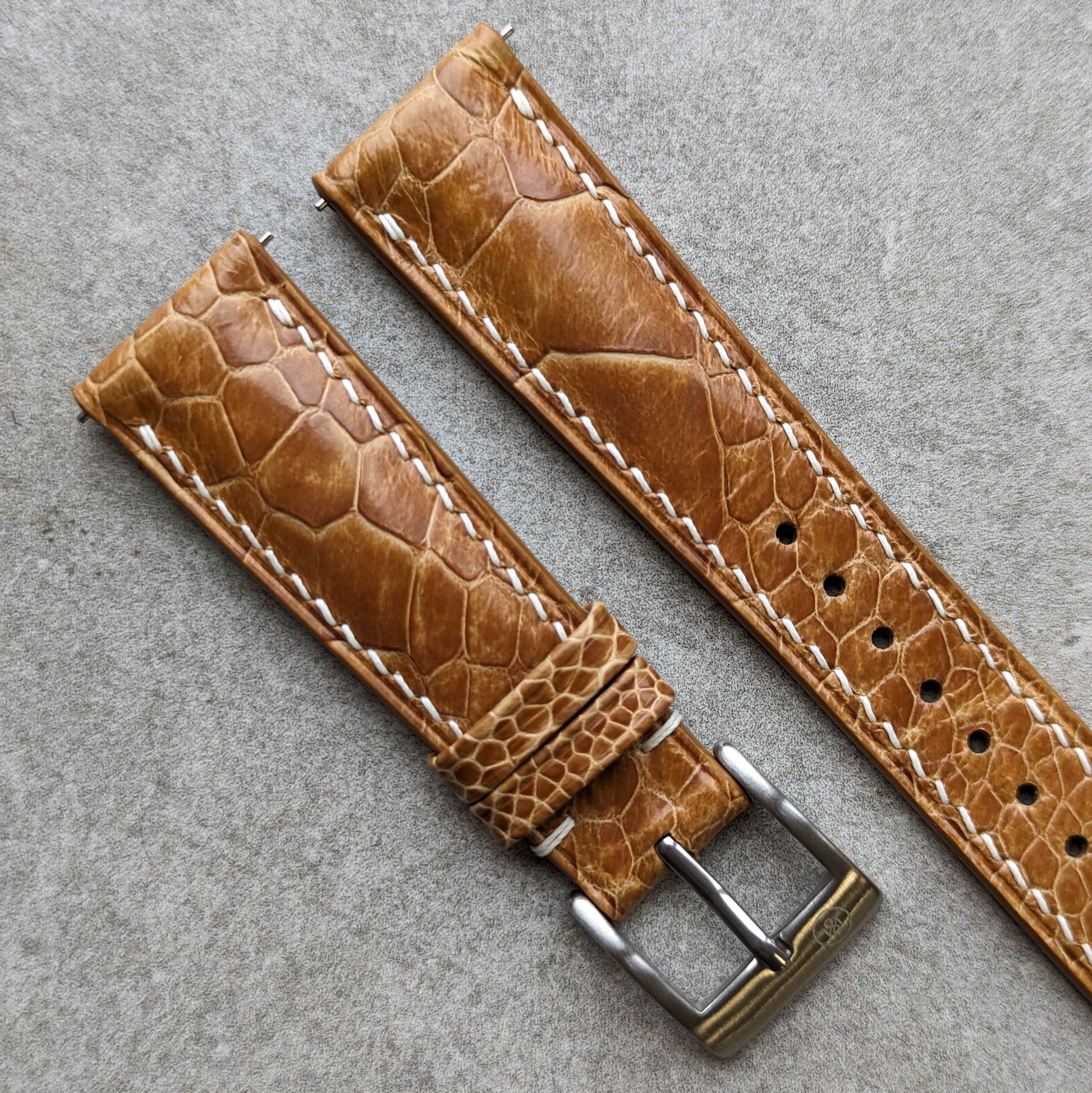 Ostrich Shin Watch Strap - Honey Brown - RTW