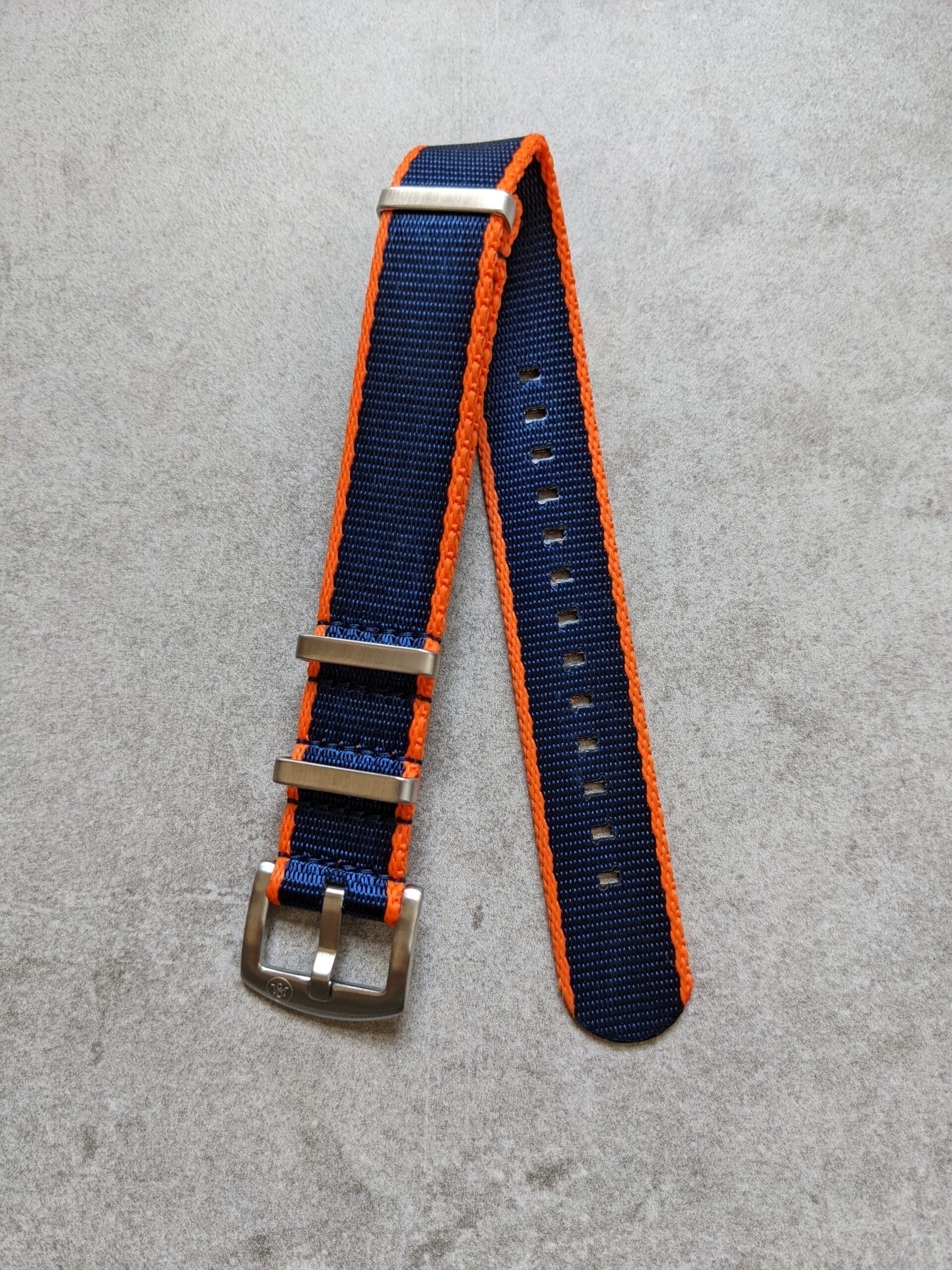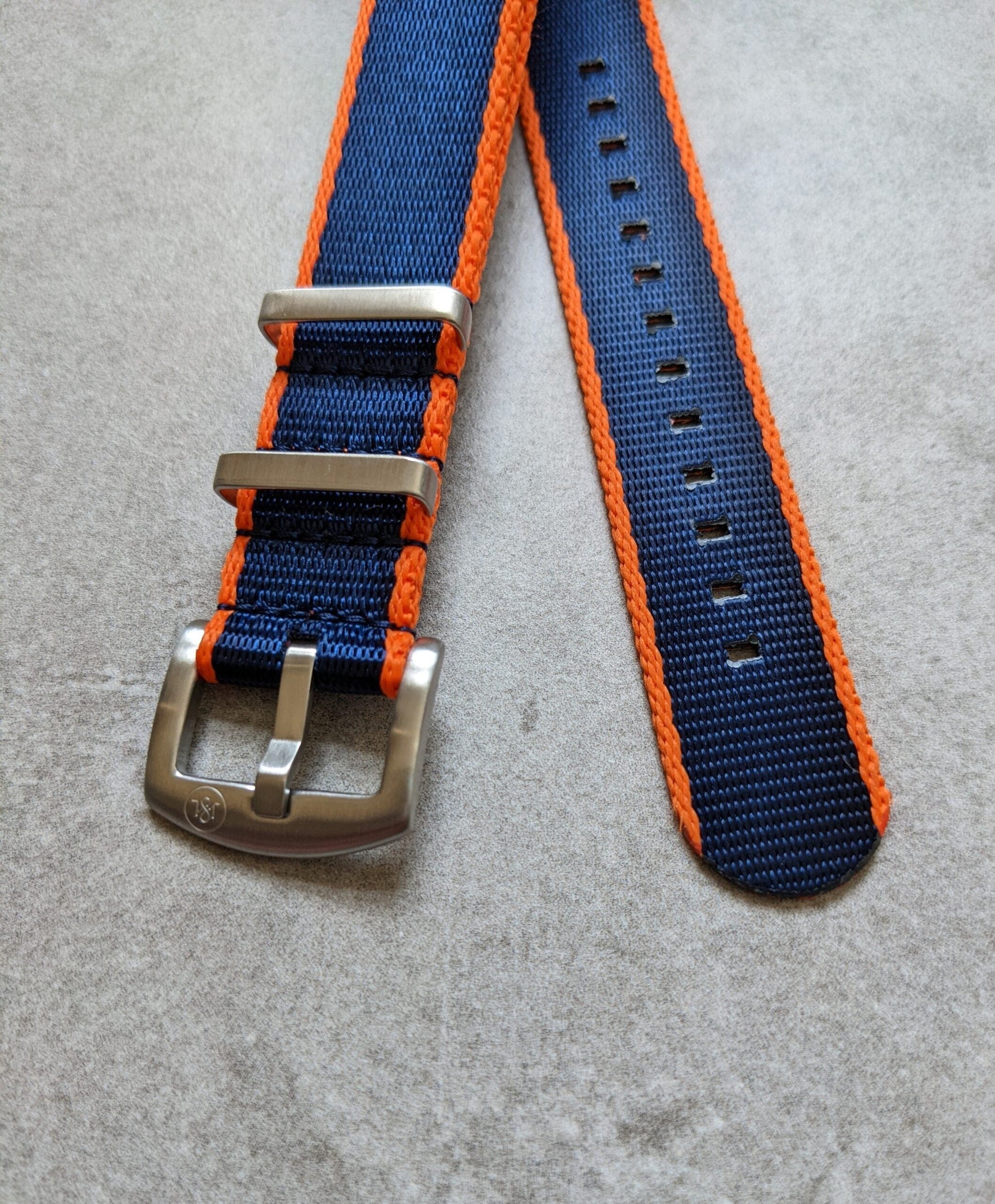 Premium Fabric Watch Strap - Navy Blue W/Orange Piping