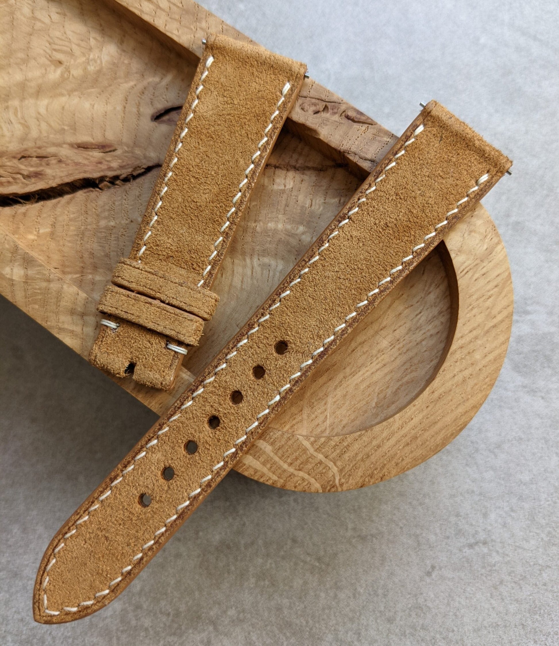 Please note that suede is less durable than calfskin. We recommend that suede straps are worn in rotation and not daily. They do not have the same durability as a calfskin does